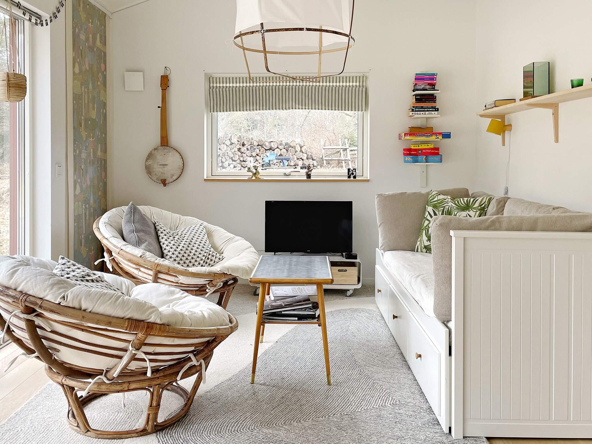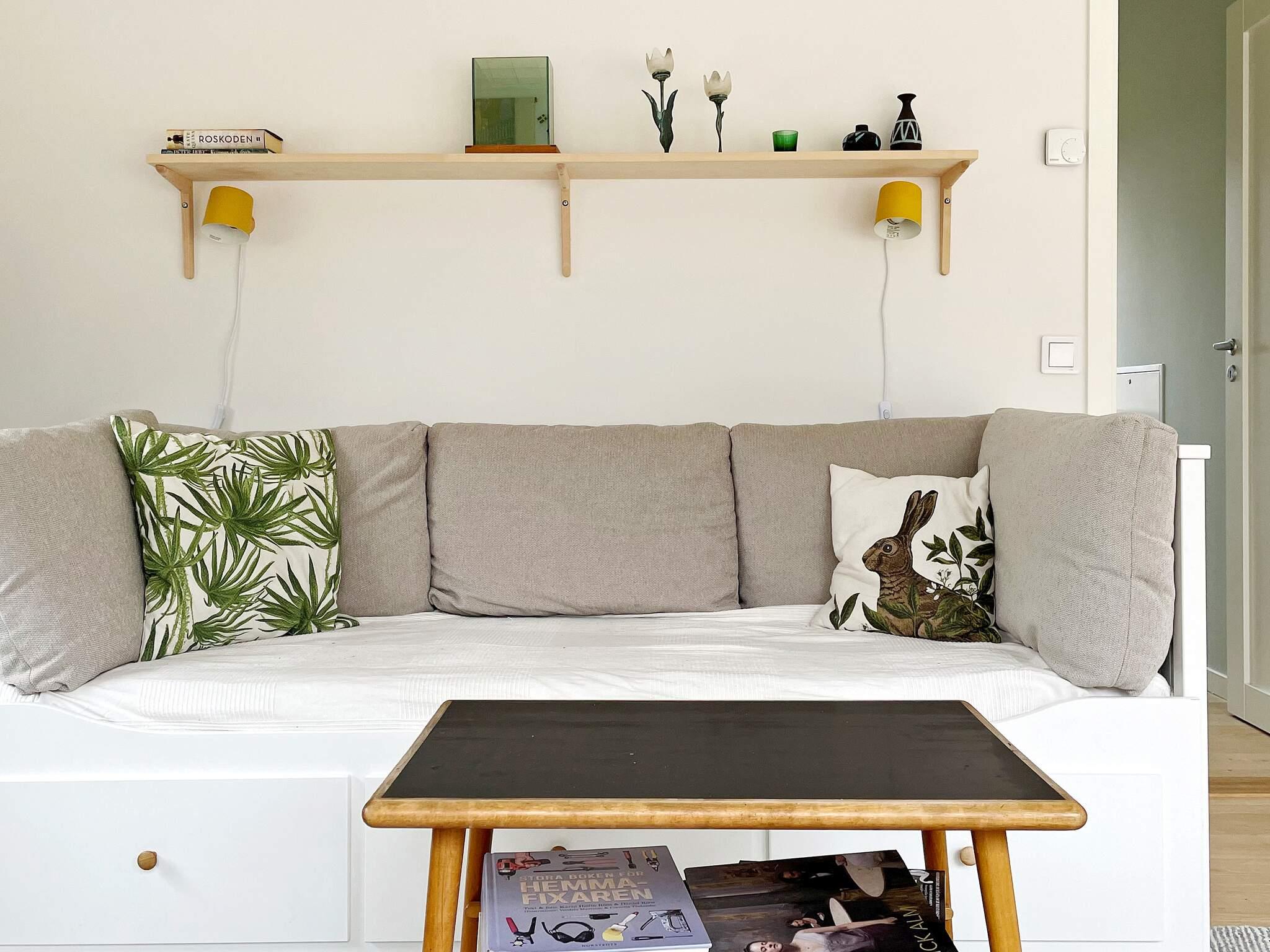 I huset finns två sovrum varav ett med dubbelsäng samt förvaringsmöjligheter i garderob. I det andra rummet finns en familjevåningssäng där underslafen är bredare (120 cm). I vardagsrum finns en bäddsoffa för två personer, här finns även en tv-skärm med möjlighet att streama från egen telefon. Stilfullt badrum med härlig takhöjd även här med wc, handfat, dusch och tvättmaskin. Om det är någon som önskar sova avskilt från de andra i sällskapet finns ett gästhus med två extra bäddar i bäddsoffa. I gäststugan finns ingen el och stugan är delvis isolerad, men ett alternativ på sovplats för den som önskar!