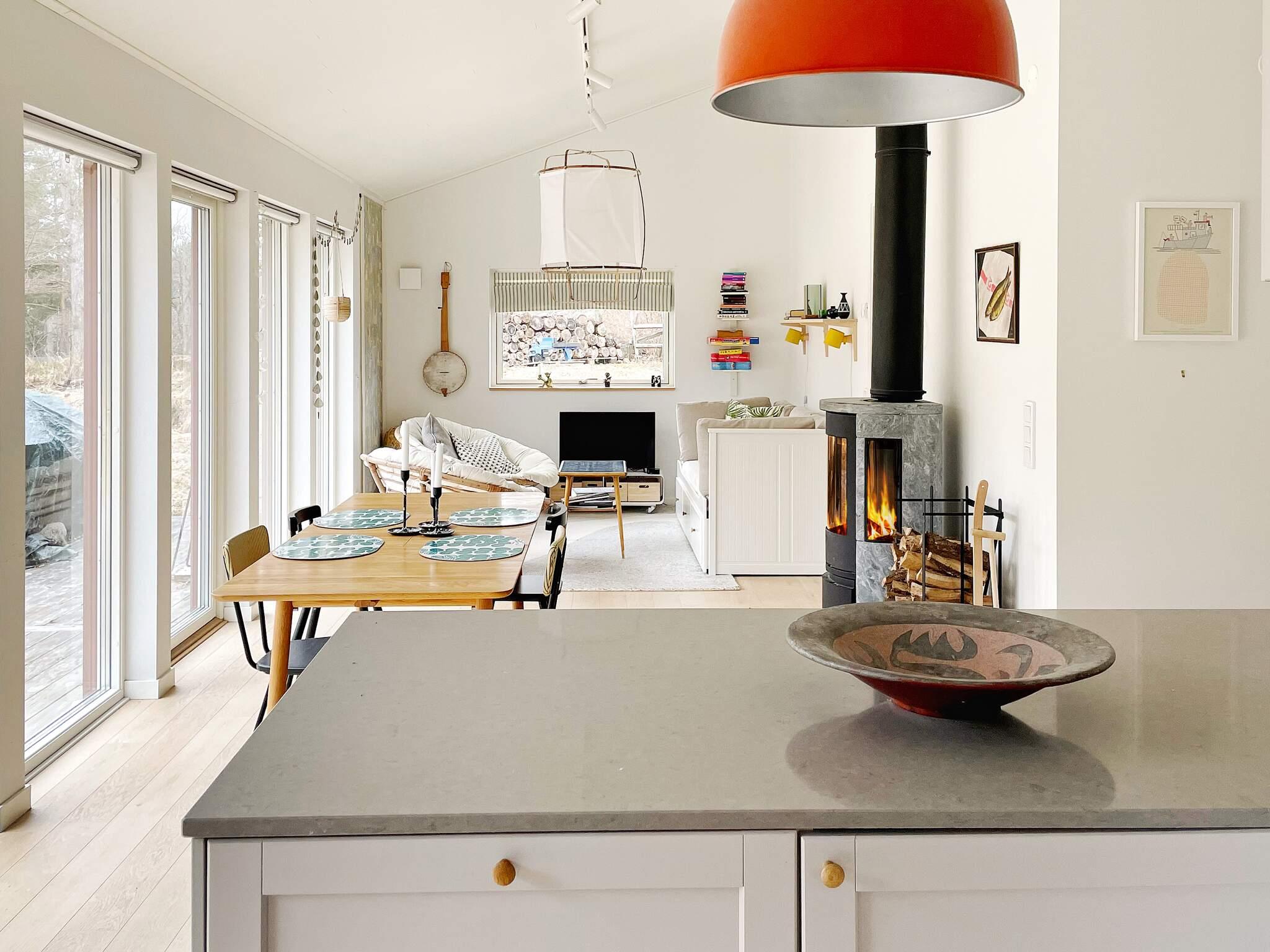 Ni bor här i ett hus byggt 2020 med generös takhöjd och stora fönsterpartier som ger en härlig känsla av rymd och närhet till utemiljön. Öppen social planlösning mellan kök och vardagsrum med matplats och härlig braskamin i rummets mitt. Utgång till stor uteplats där ni kan njuta av solen och svalka er i skuggan under markis. Här finns utemöbler och kolgrill, som gjort för att njuta av trevliga middagar blickandes över härlig naturtomt med gräsmatta och lekredskap som bjuder in till lek!