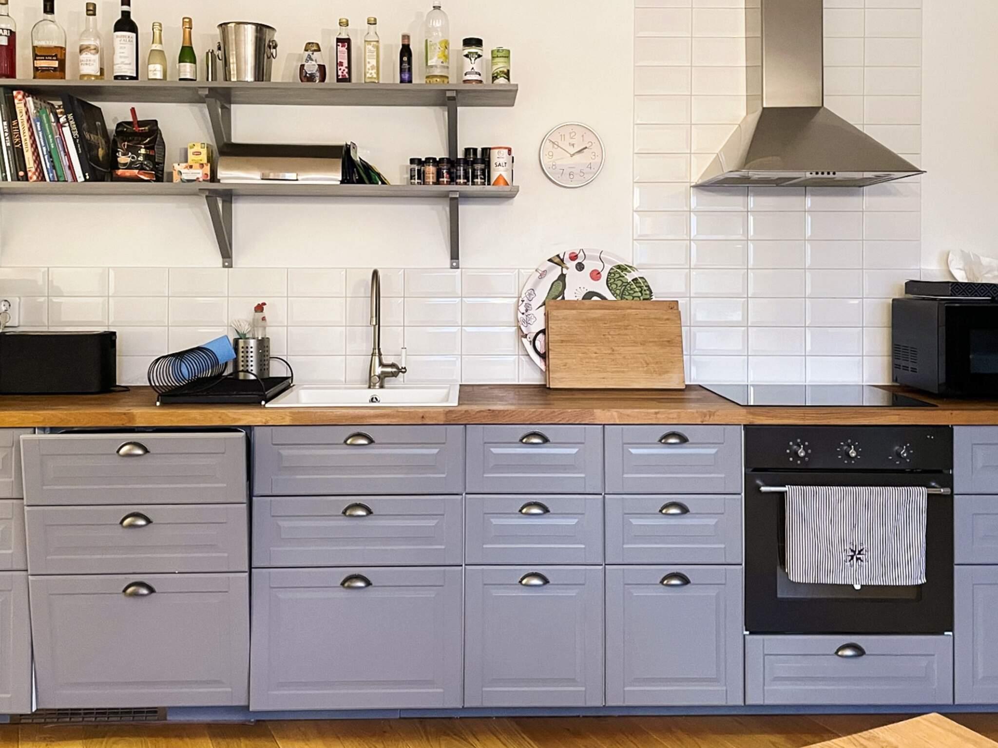 Køkken: Ovn, ovn, køleskab, køle-frys, køle-frys, mikroovn, mikroovn, induktionskomfur, induktionskomfur, kaffemaskine, opvaskemask., vand fra brønd