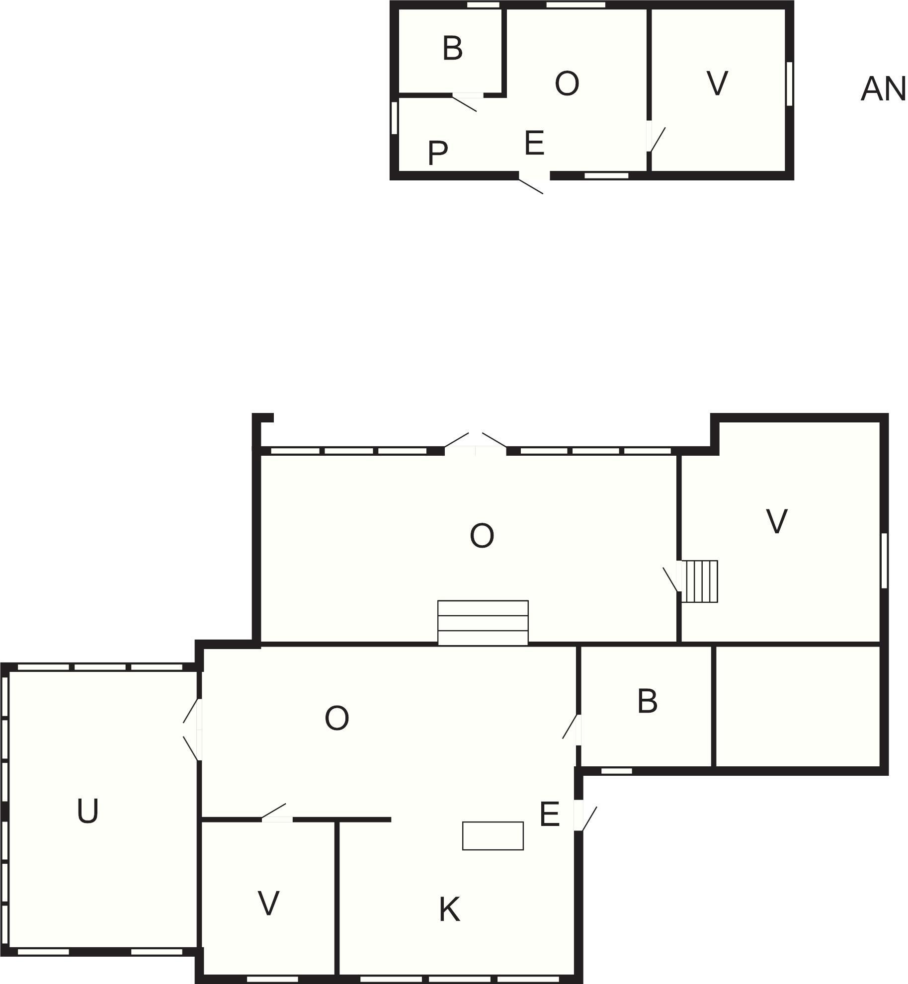 1 Anneks: (1DS+1DO), elkogepl., køleskab, mikroovn, kaffemaskine