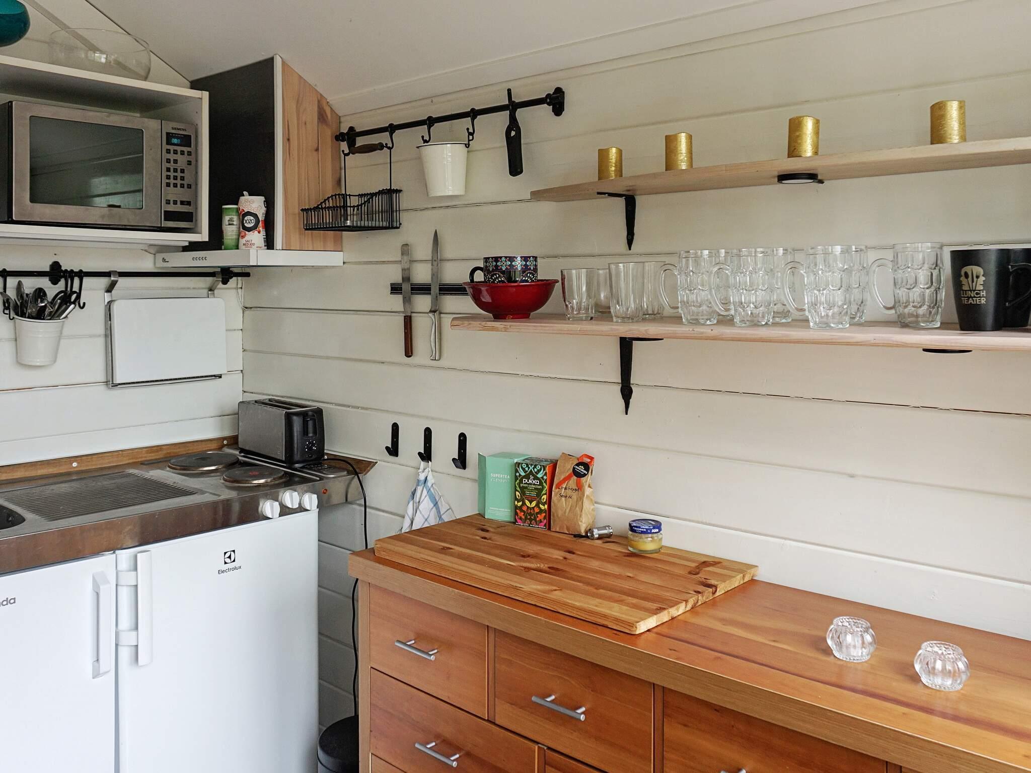 Pantry: El-komfur, køleskab m/frostboks, mikroovn, emhætte, vand fra brønd