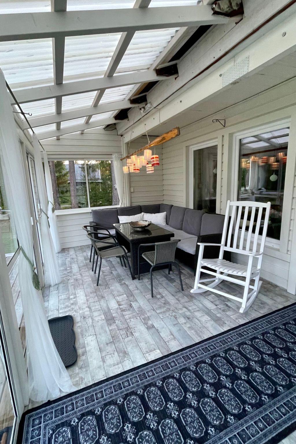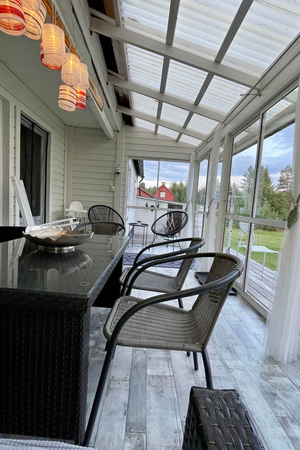 The villa's outdoor area is a paradise for young and old. The spacious garden invites you to linger and play. A separate play and activity house and a swing have been set up for younger guests. For the evenings, there is a cosy fire pit - the ideal place for stick bread, stories and, of course, waiting for the Northern Lights. Thanks to the lockable conservatory, you can enjoy the outdoors even in windy weather. Car parking is available directly at the house. Please note that access to the house is via 4-5 steps.