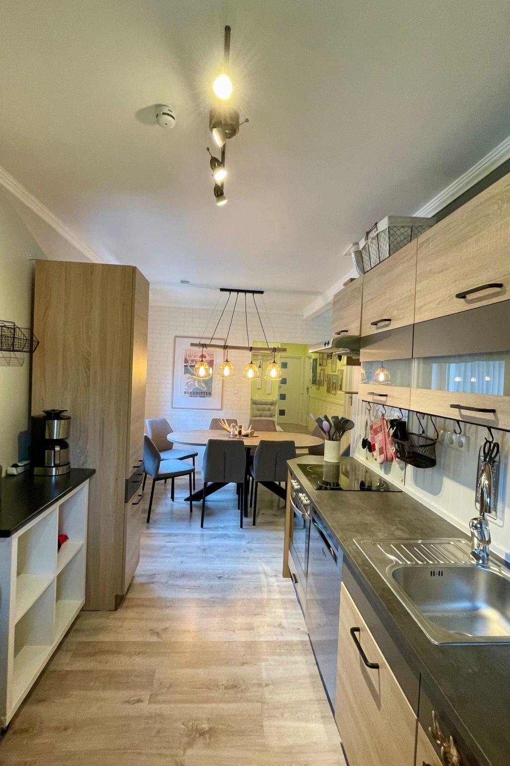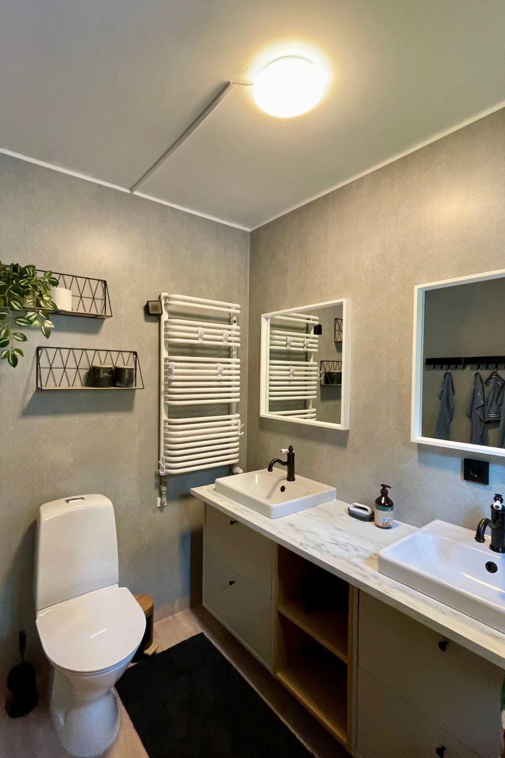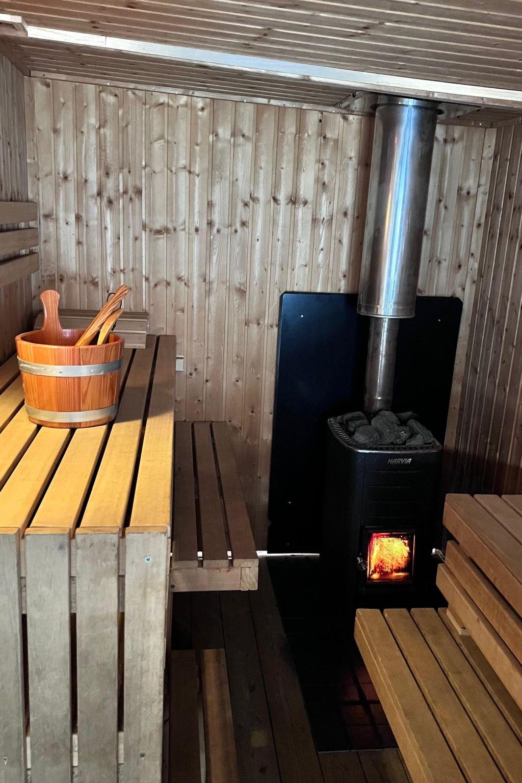Villa Davvi Dállu was created with comfort and wellness at its centre. The centrepiece is the sauna area with a traditional wood-heated sauna - the perfect Swedish ritual to recharge your batteries after a day in the wilderness. Afterwards, the modern bathroom (with two washbasins!) invites you to relax. In the three quiet bedrooms with high-quality beds, you will find deep, restful sleep. The open, fully equipped kitchen and large dining table are ideal for cooking evenings and socialising. The efficient heat pump ensures a perfect feel-good climate all year round.