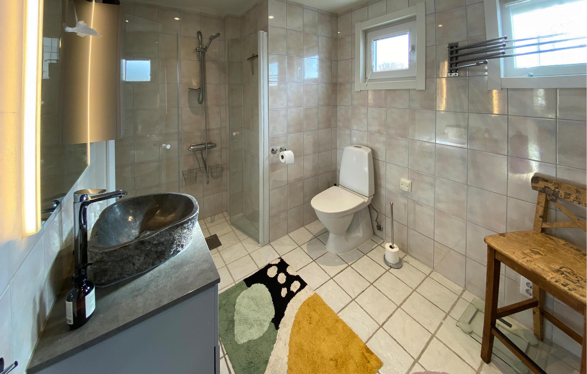 Nyd en afslappende pause i dette velholdte feriehus med en rolig beliggenhed i udkanten af ??den verdensberømte svenske forfatter Astrid Lindgrens fødeby. Find jer godt til rette på de store sofaer i den hyggelige stue. Læs en bog eller se en film sammen. Lav mad i det moderne køkken med udstyr af høj kvalitet, to spisepladser og gennemtænkt design. Spis morgenmad med udsigt over haven, lav et festmåltid eller tilbring afslappede aftener med at lege og snakke. Den smagfulde indretning skaber en behagelig atmosfære, hvor I straks føler jer hjemme.