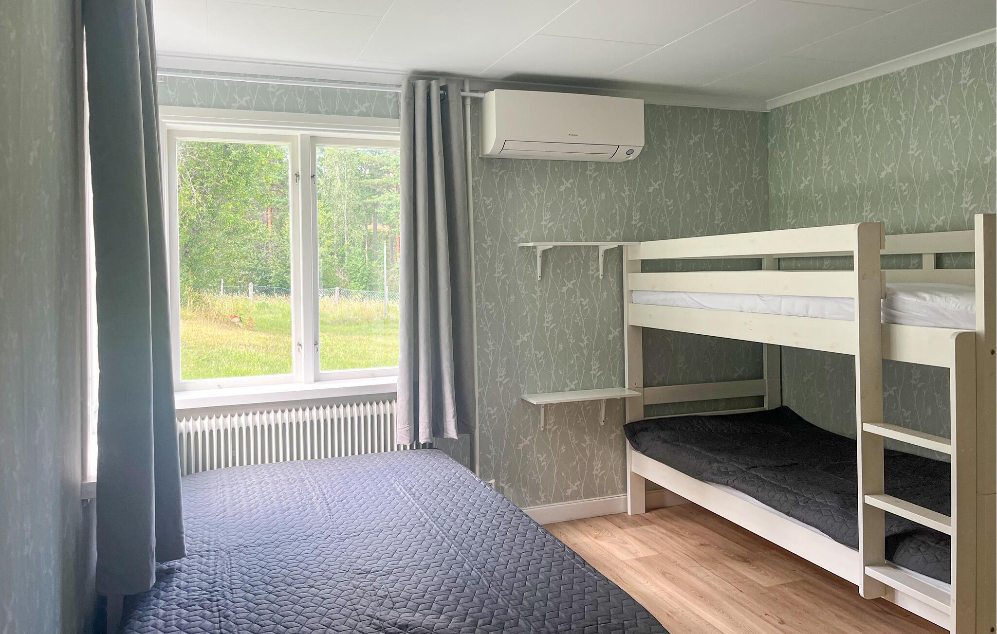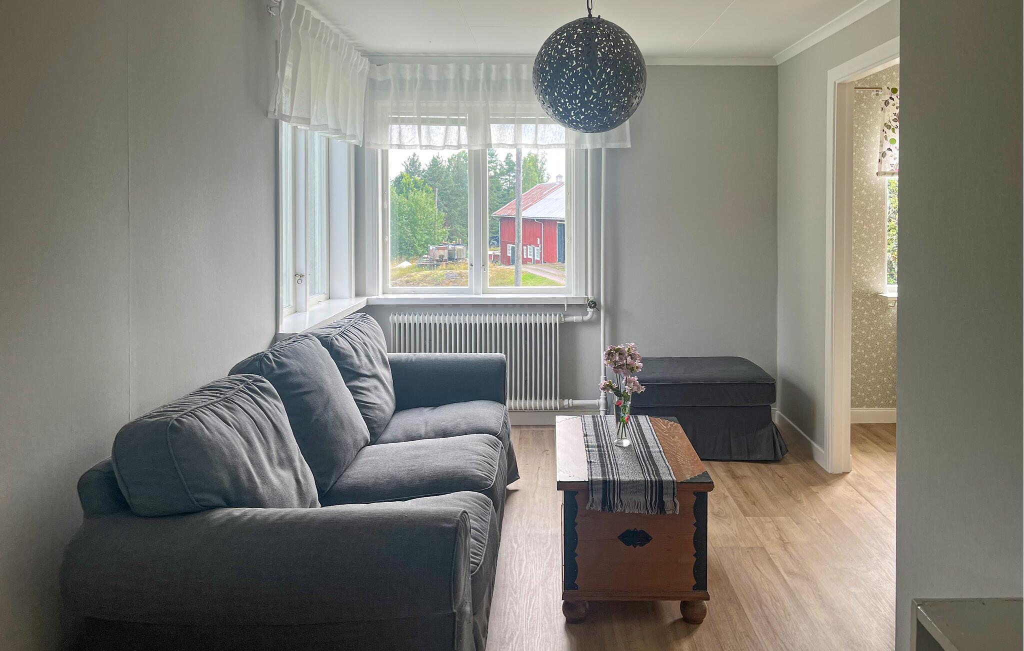 Oplev en afslappende ferie i dette idyllisk beliggende feriehus. Dette smukke feriehus er perfekt til en afslappende pause fra hverdagen. Indbydende værelser, et trælook og en komfortabel sofa skaber en atmosfære, hvor I hurtigt kan slappe af og genoplade. Skænk jer en kop kaffe, lyt til jeres yndlingsmusik, eller tilbered lækre måltider i det moderne køkken. I mildt vejr er den store, grønne have et dejligt sted at slappe af. Find en plads i solen, læs jeres yndlingsbog, eller nyd naturens ro. Om aftenen kan I tænde grillen og holde en grillfest med et glas vin. Oplev den idylliske natur omkring Ankarsrum på en vandretur gennem skove og langs klare søer. Nyd afslappende dage med fiskeri i et af de mange fiskerige vande i området. Tag på dagsture til Vimmerby, Astrid Lindgrens hjemby, eller udforsk den charmerende kystby Västervik og dens skærgårdsøer.