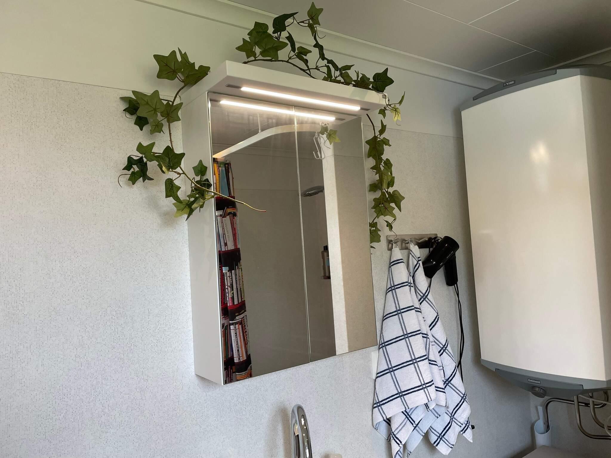 Ytterligare sovplatser har ni i alkoven där det finns två bäddar med sköna madrasser i en våningssäng. Från alkoven kommer du ut på terrassen där det finns trädgårdsmöbler och en grill, här sitter man gärna under kvällarna och njuter av härliga vyer. blir en skön säng. Stugans badrum är utrustat med dusch, handfat och en förbränningstoalett.