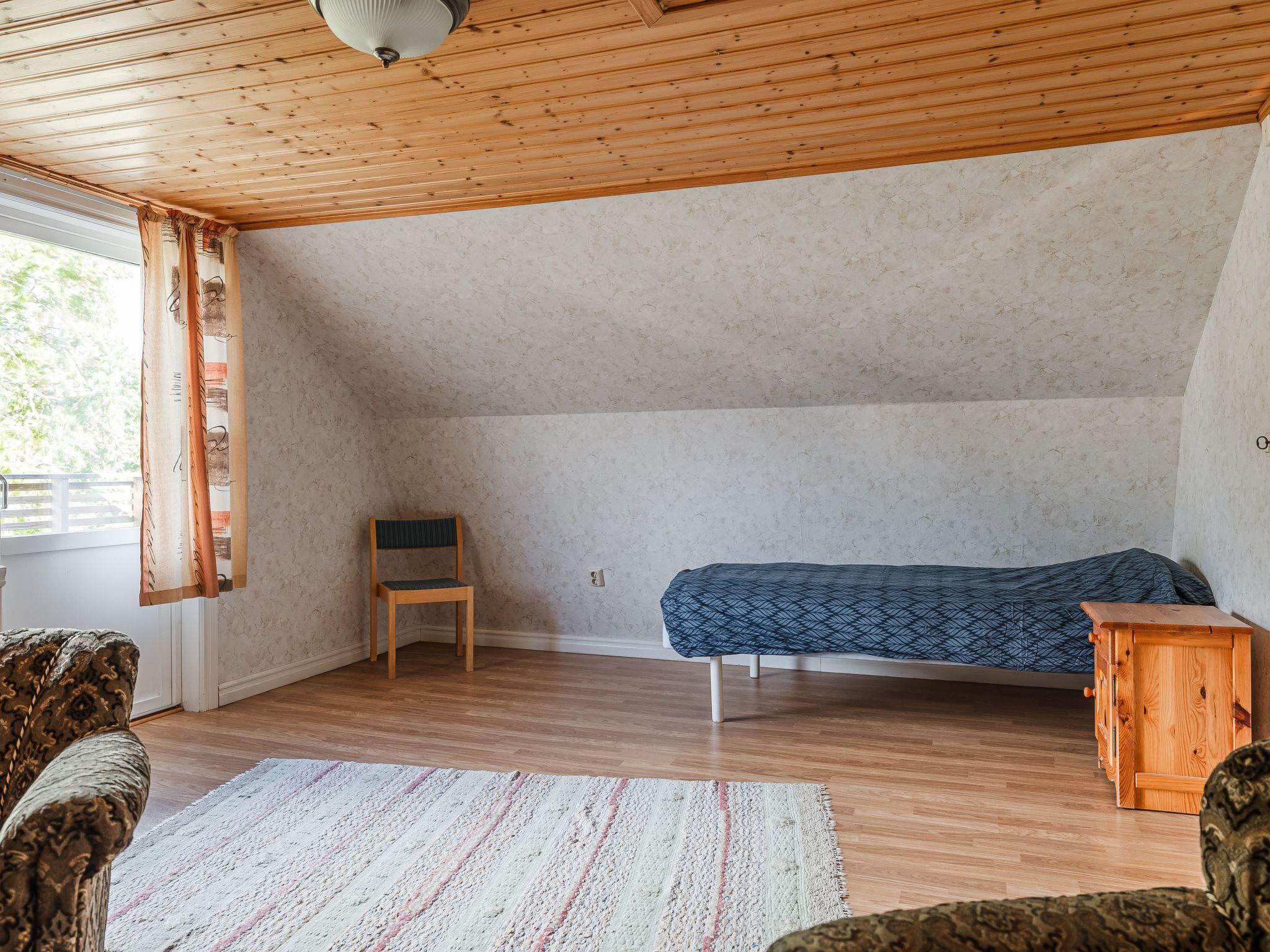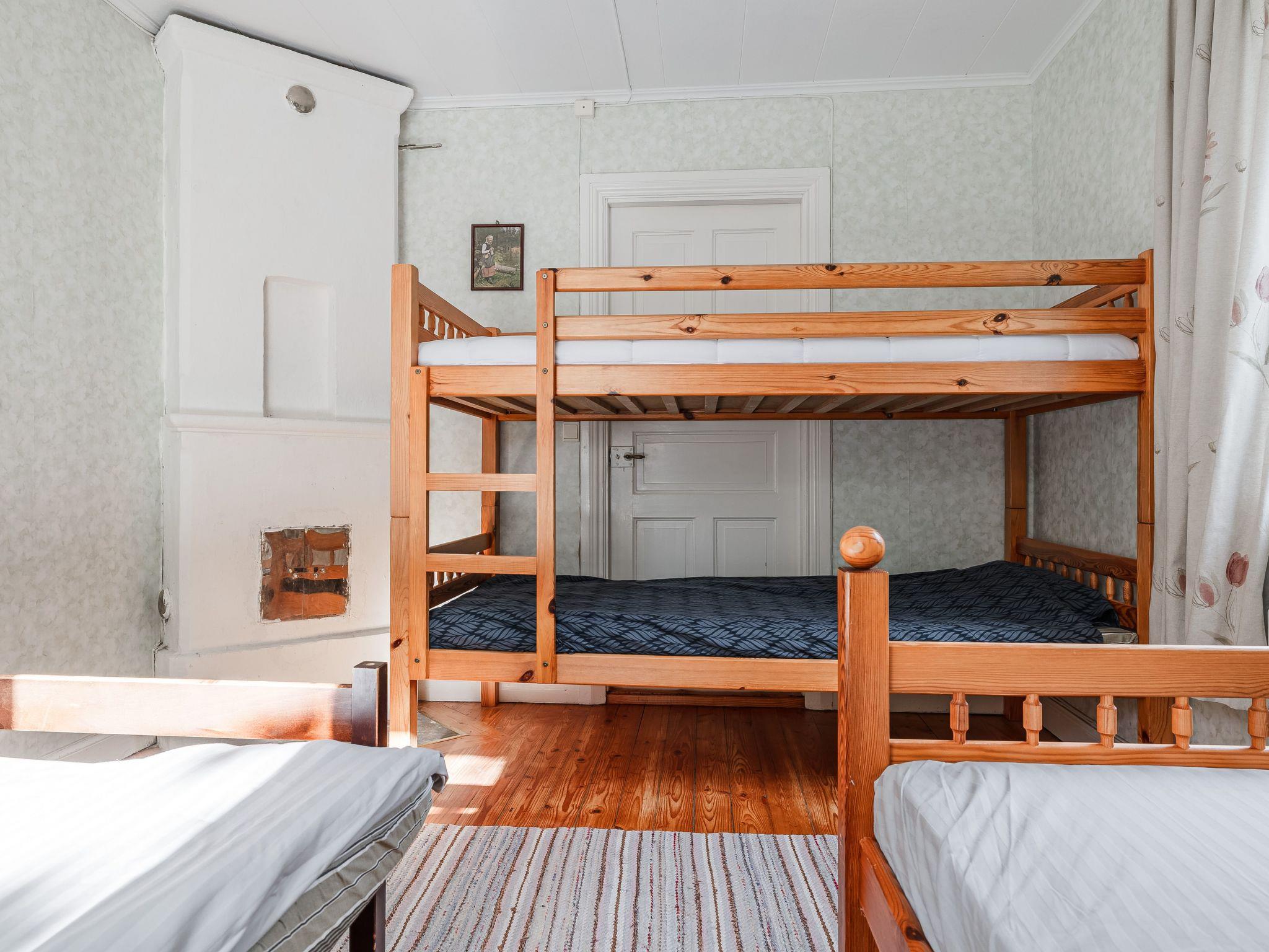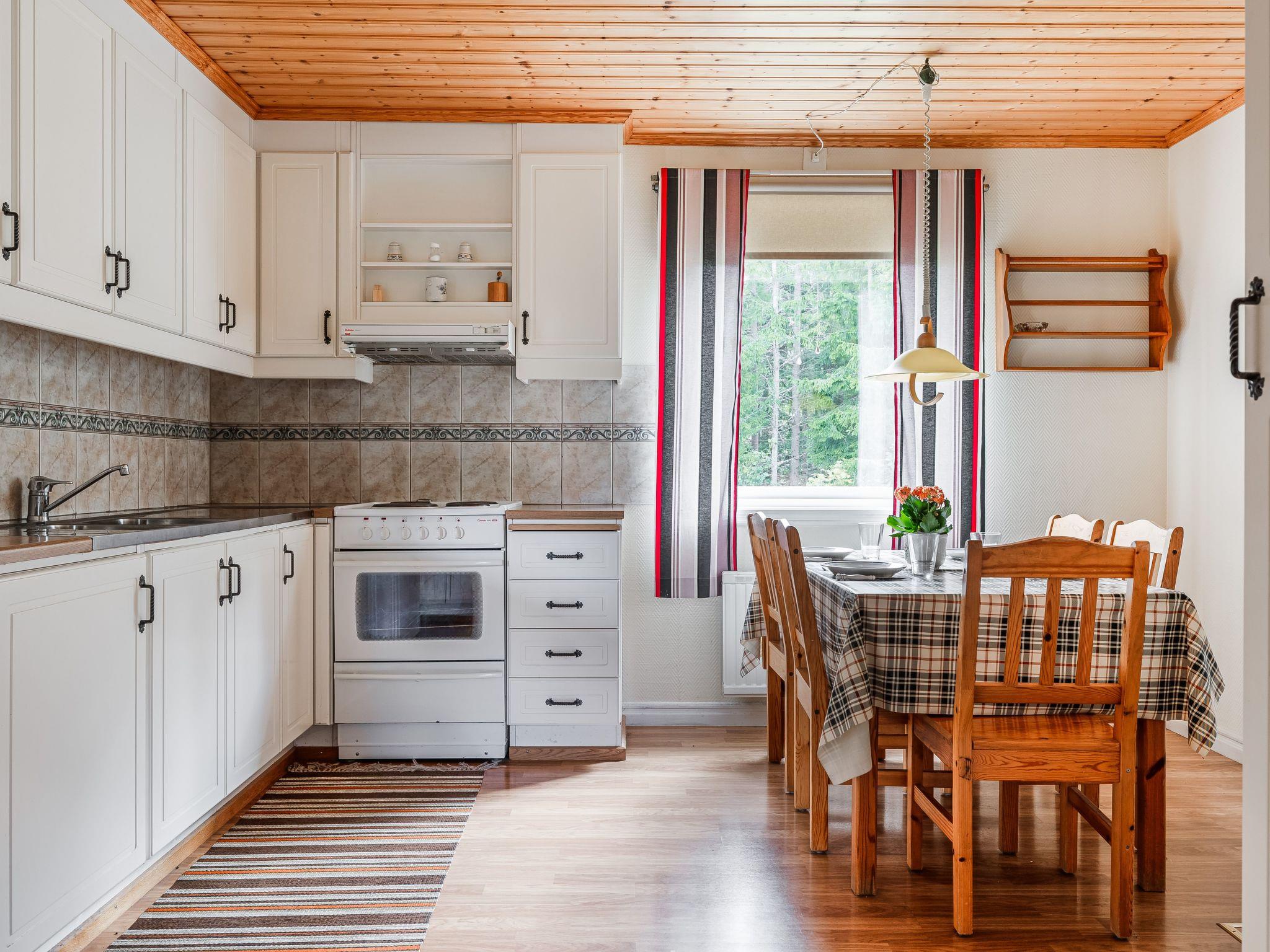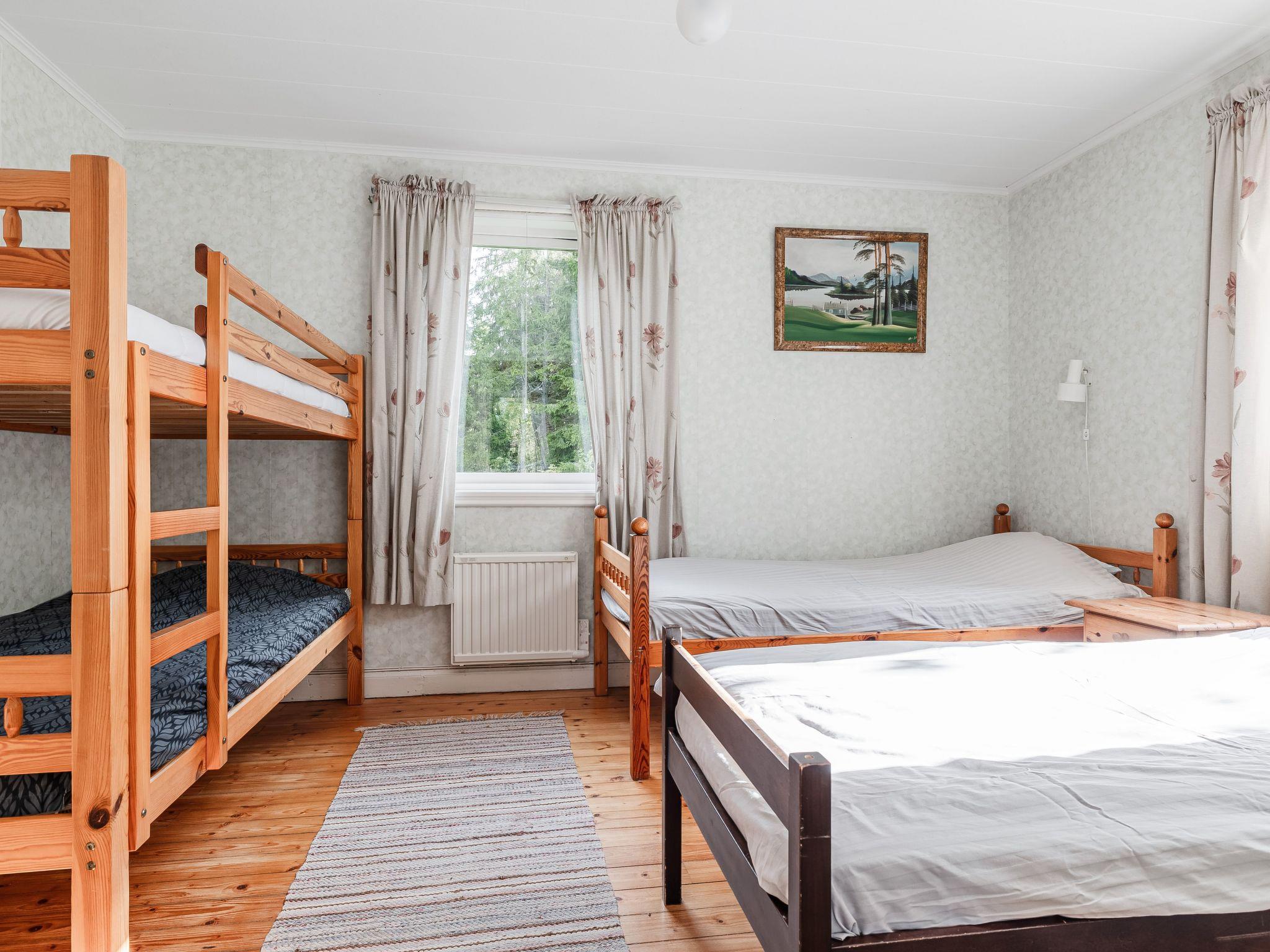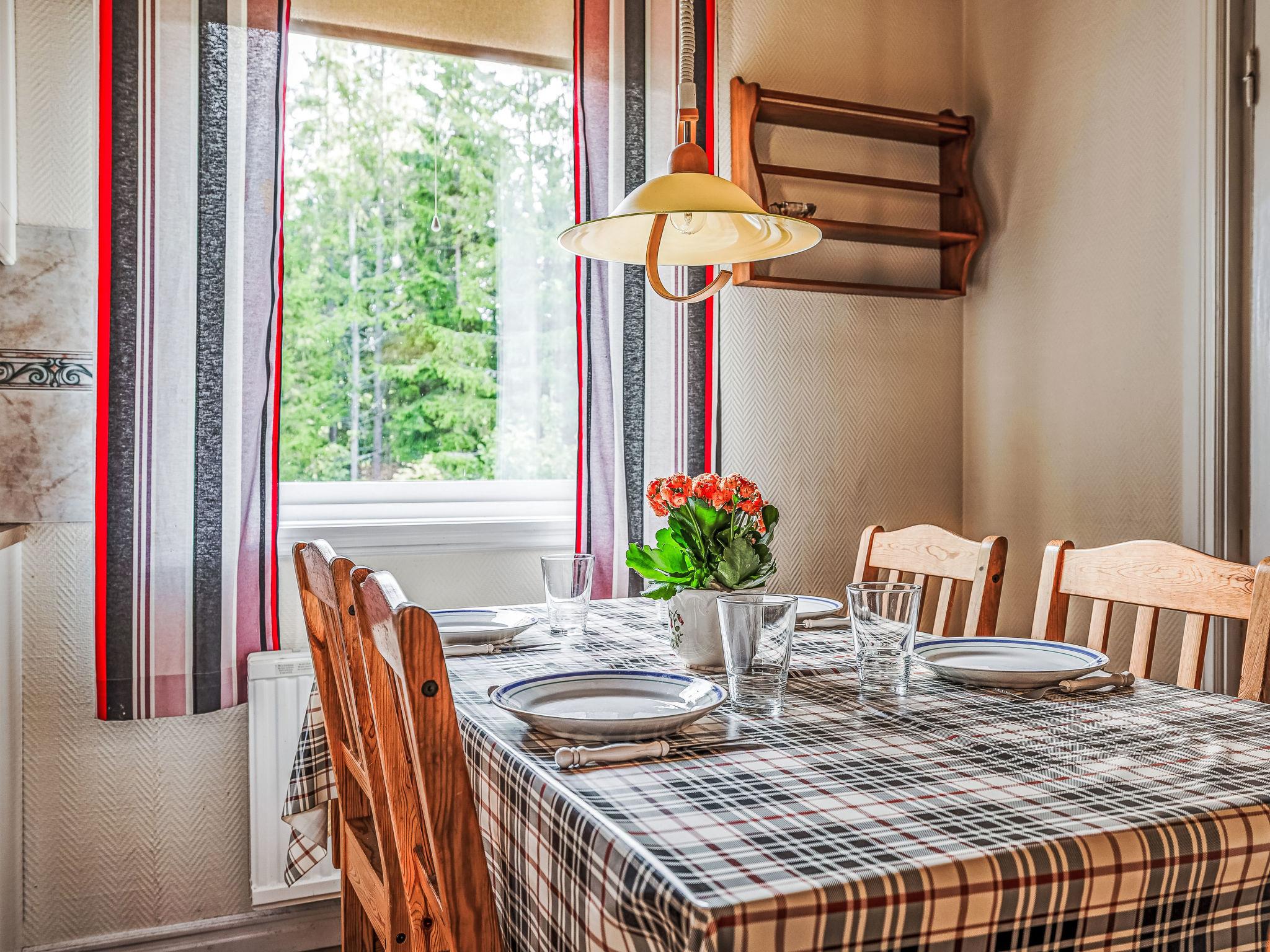 "Mörtefors", 3-room house 90 m2 on 2 levels. Living room with Scandinavian wood stove and TV. 1 room with 2 beds (90 cm, length 200 cm), 1 x 2 bunk beds (80 cm, length 200 cm). Kitchen (oven, 4 ceramic glass hob hotplates, toaster, kettle, microwave, freezer, electric coffee machine) with dining table. Shower/WC. Electric heating. Upper floor: 1 room with 1 double bed (160 cm, length 200 cm). Balcony 5 m2. Barbecue (portable). View of the forest. Facilities: washing machine. Internet (WiFi, free). Please note: non-smoking house. Smoke alarm.