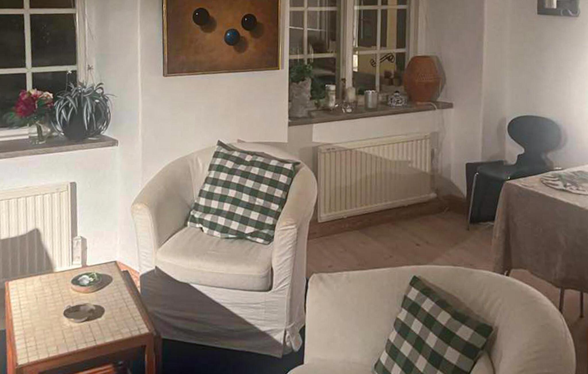 Beliggende i en lille sidegade og omgivet af blomstrende roser tilbyder dette hus en ideel blanding af historie og komfort. Træd ind i opholdsstuen med lyse vægge og hyggelig indretning. Slap af i sofaen eller nyd en god bog i den komfortable lænestol. Gæsterne kan nyde fælles måltider i spiseområdet med udsigt over byens gamle tage. Interiøret kombinerer traditionelle elementer med moderne accenter og lover afslappende aftener efter en dag fuld af oplevelser.