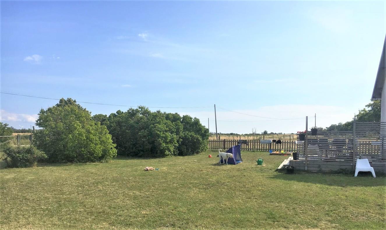 Der er en dejlig baghave med en 25 m2 stor terrasse – helt adskilt fra det andet hus på grunden. Her kan I nyde solen hele dagen. Den store grund på 4.000 m2 er indhegnet og har masser af plads til aktiviteter - et perfekt sted for både legende børn og hunde.