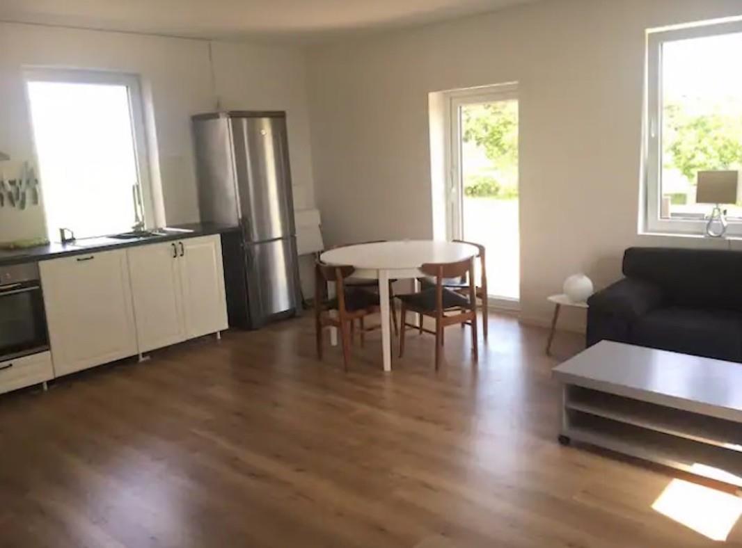 Det åbne køkken ligger i forbindelse med stuen, og her finder I fjernsynet.