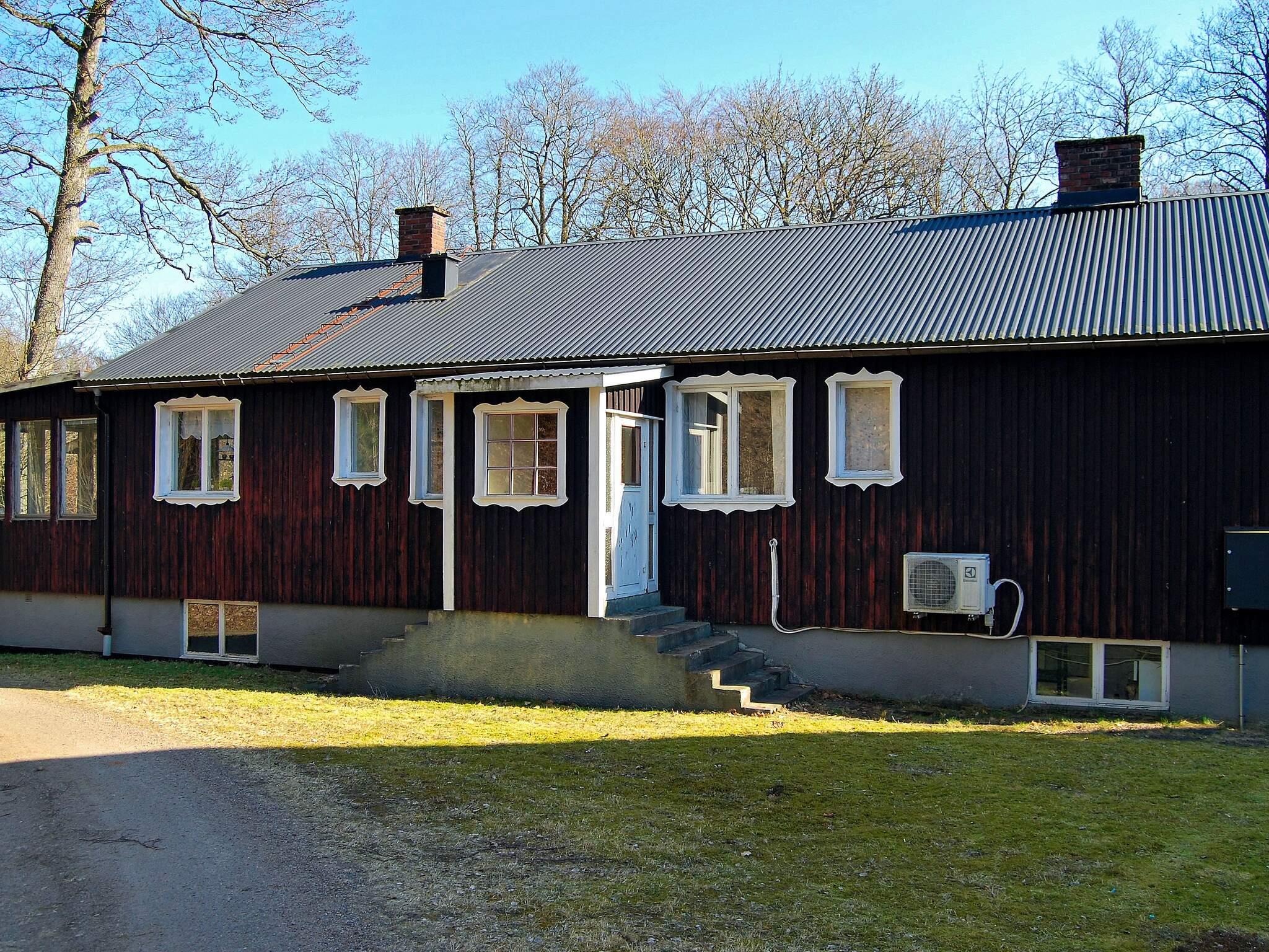 Mitt i de kuperade Göingemarkerna bland småbyar, bokskogar och ängsmarker ligger denna större stuga direkt vid den brusande forsen och gamla möllan. Här bor man sommarhalvåret inbäddad i grönska direkt ovanför forsen, endast med ägarens företagsfastighet (enmansföretag) som närmsta granne i ostörda omgivningar.