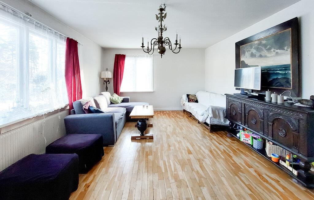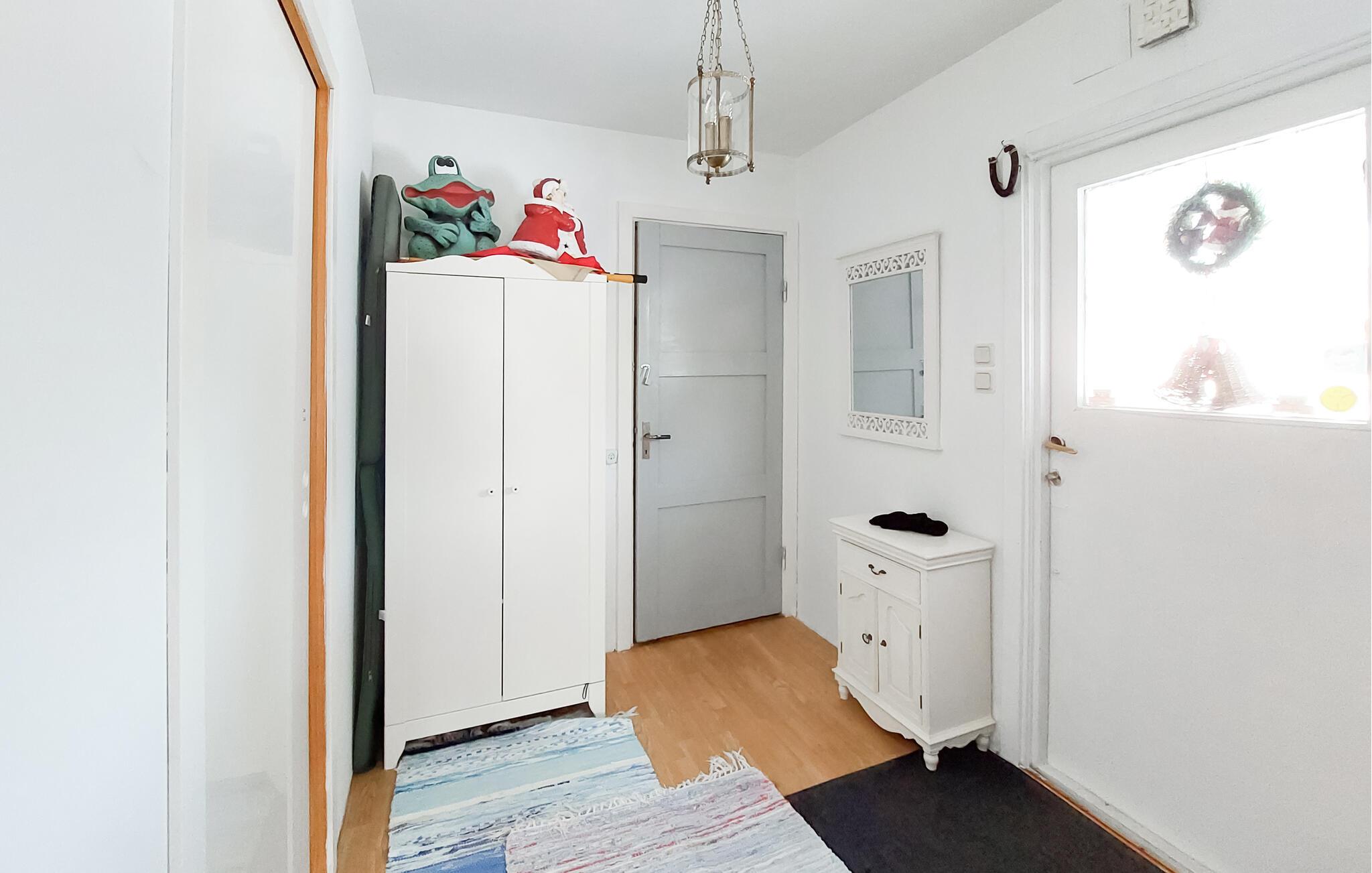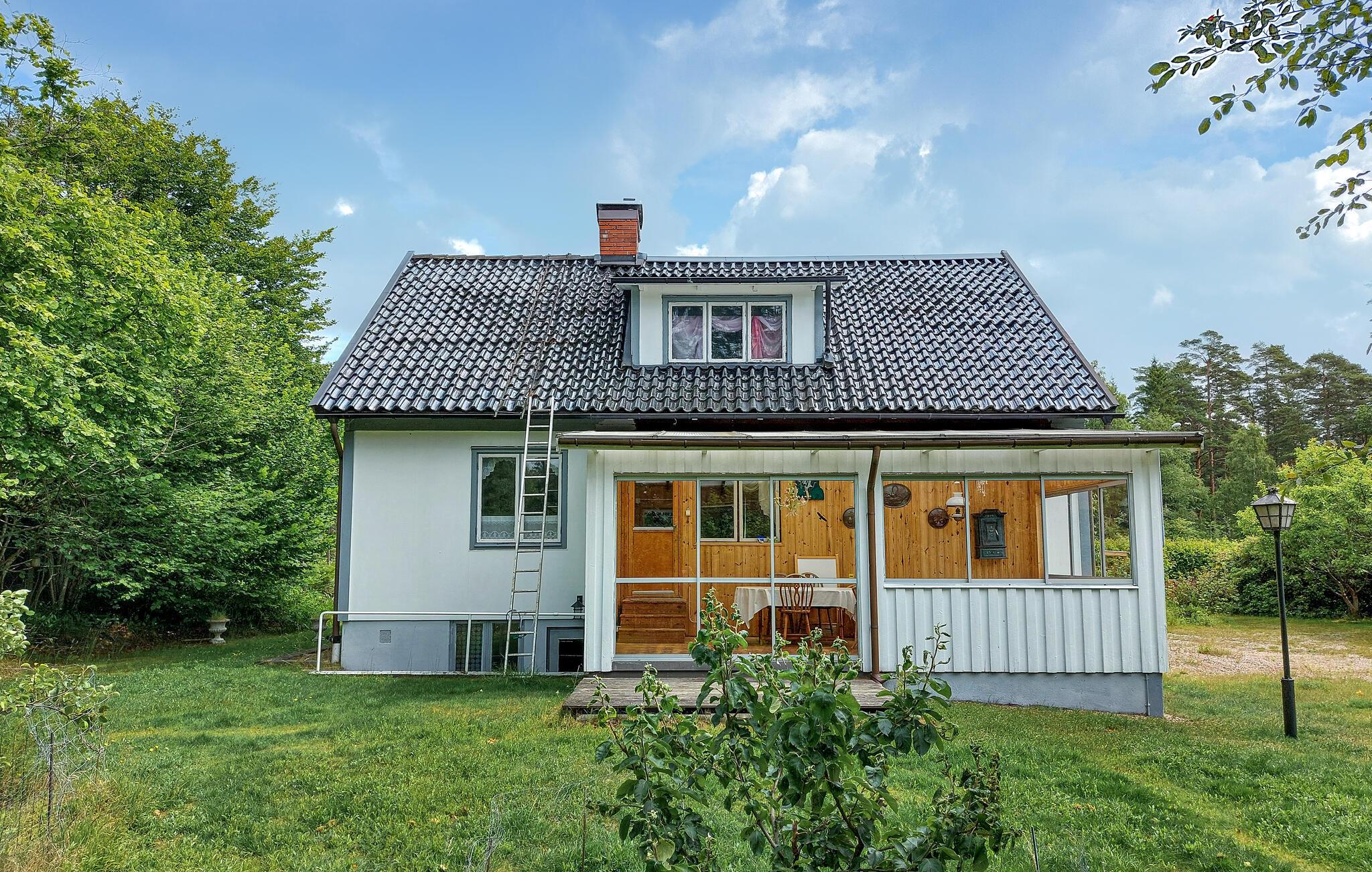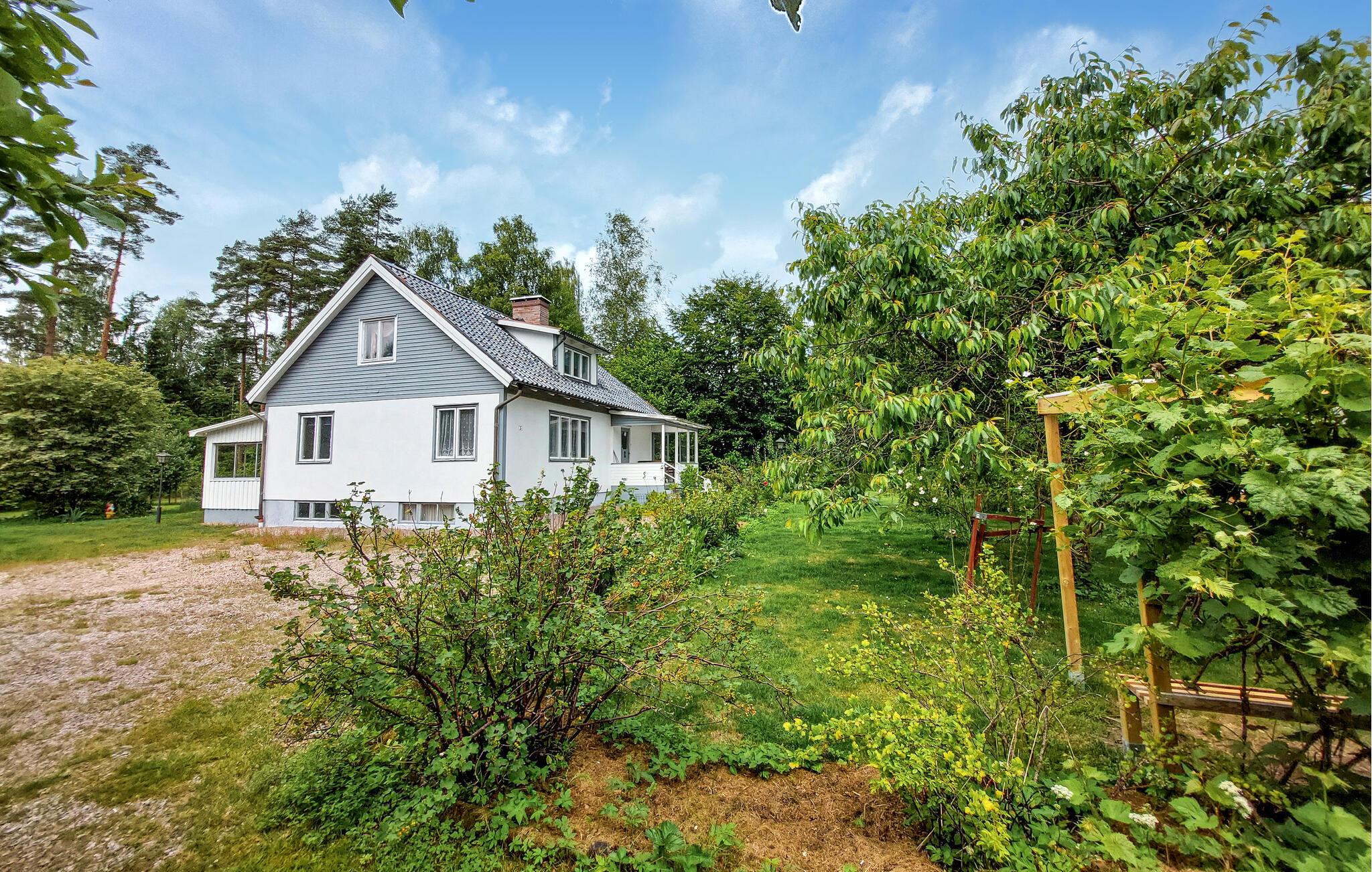 Dette charmerende feriehus i Vittsjö, omgivet af en stor have, byder på en smuk blanding af komfort og natur. Nyd jeres morgentimer i den lyse vinterhave, hvor komfortable siddepladser og et spisebord giver plads til afslappede måltider eller hyggelige læsetimer. Nyd de varme solstråler, der strømmer ind gennem de store vinduer og nyd udsigten til de grønne omgivelser. Den rummelige stue er også et sted at slappe af. Find jer godt til rette i den store sofa og nyd varmen fra pejsen, som skaber en hyggelig atmosfære på kølige aftener. En rustik lysekrone giver også rummet et elegant præg. I kan tilberede regionale specialiteter i det veludstyrede spisekøkken. Nyd jeres måltider i den integrerede spiseplads, som udstråler en charmerende skandinavisk karakter.