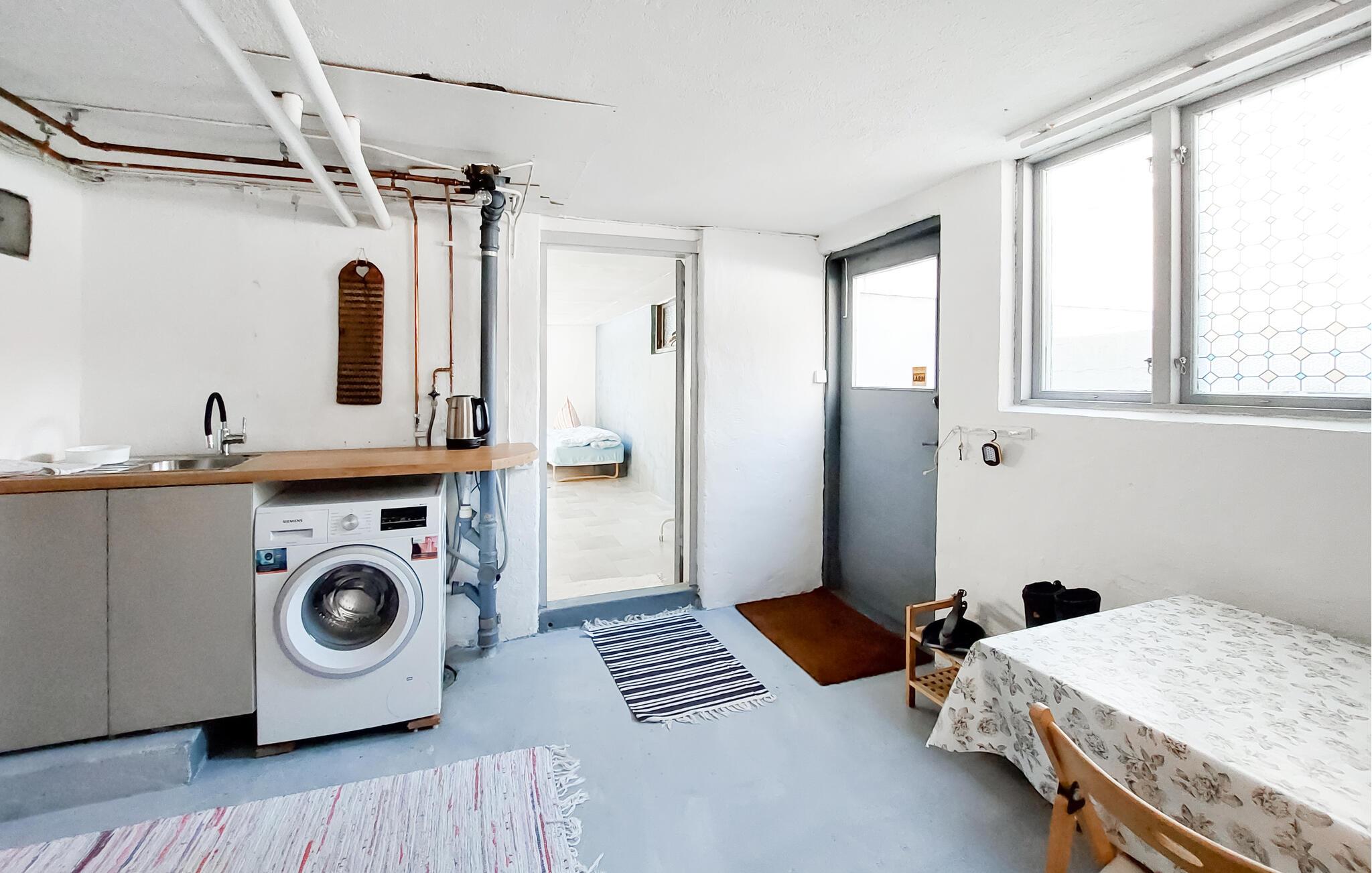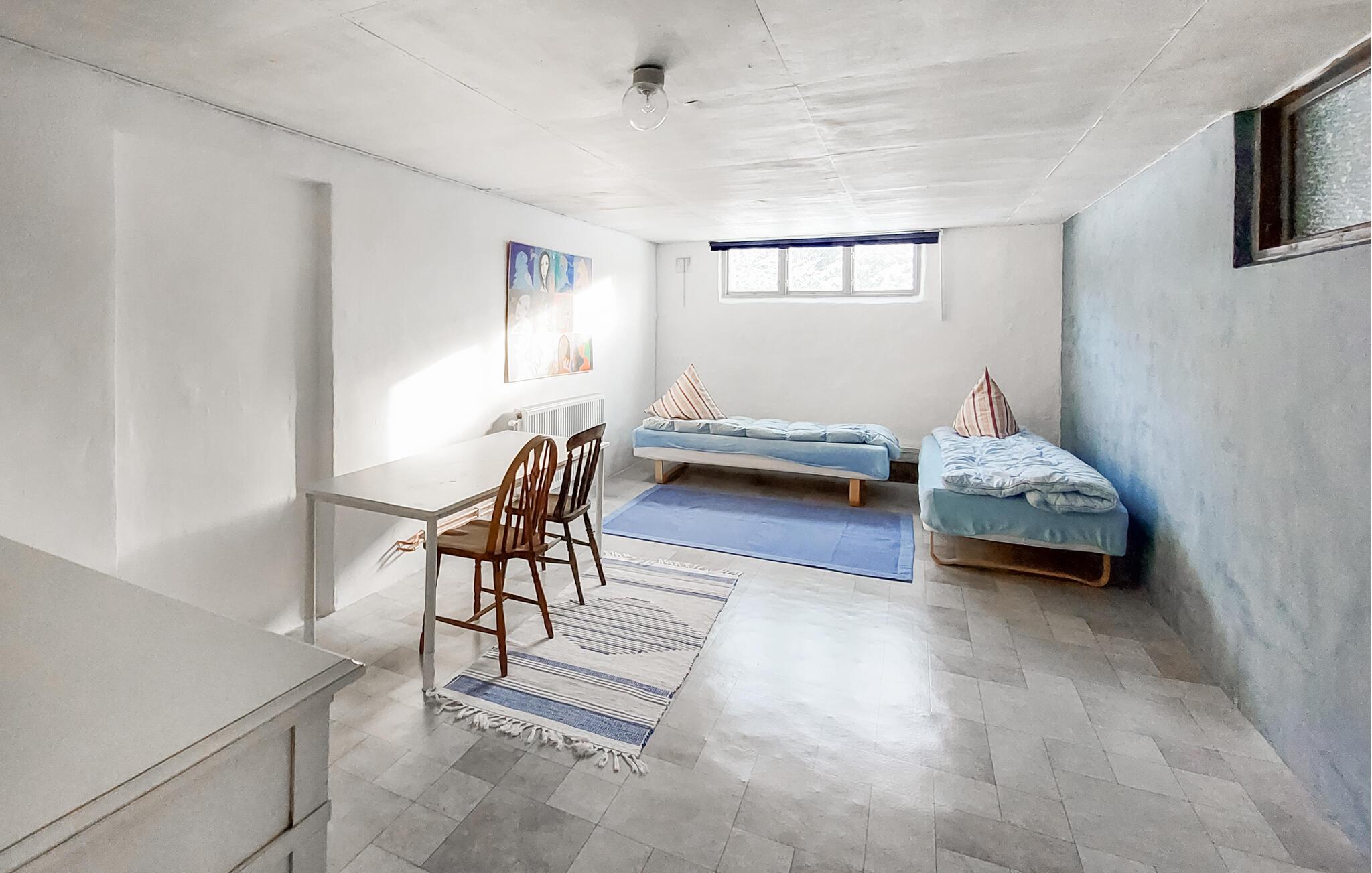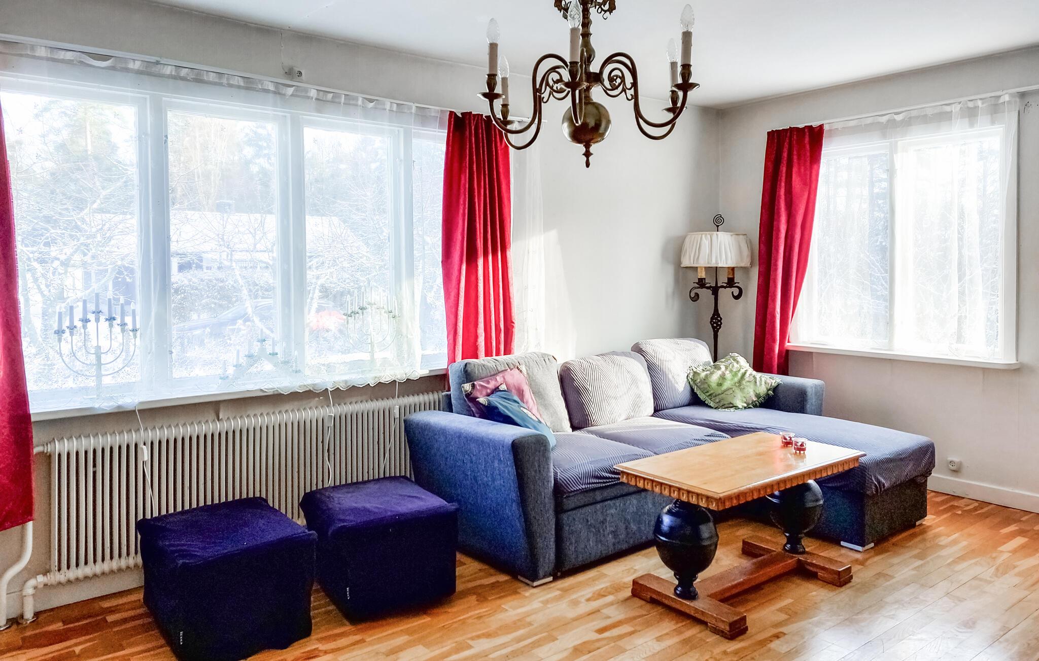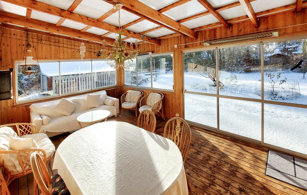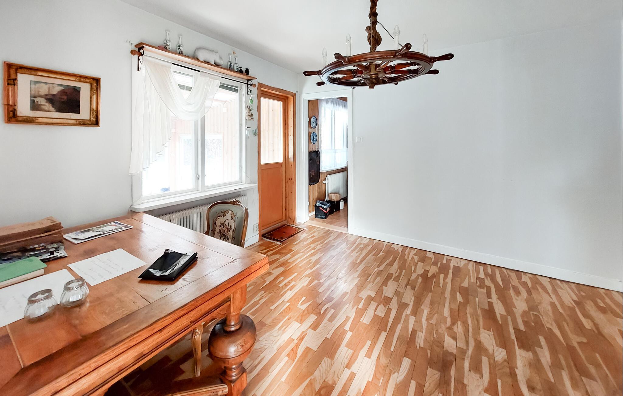 Dette charmerende feriehus i Vittsjö, omgivet af en stor have, byder på en smuk blanding af komfort og natur. Nyd jeres morgentimer i den lyse vinterhave, hvor komfortable siddepladser og et spisebord giver plads til afslappede måltider eller hyggelige læsetimer. Nyd de varme solstråler, der strømmer ind gennem de store vinduer og nyd udsigten til de grønne omgivelser. Den rummelige stue er også et sted at slappe af. Find jer godt til rette i den store sofa og nyd varmen fra pejsen, som skaber en hyggelig atmosfære på kølige aftener. En rustik lysekrone giver også rummet et elegant præg. I kan tilberede regionale specialiteter i det veludstyrede spisekøkken. Nyd jeres måltider i den integrerede spiseplads, som udstråler en charmerende skandinavisk karakter.