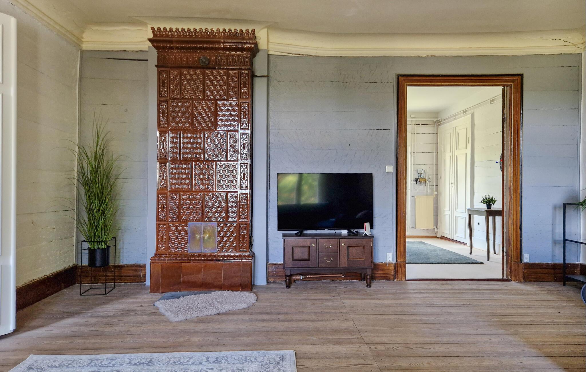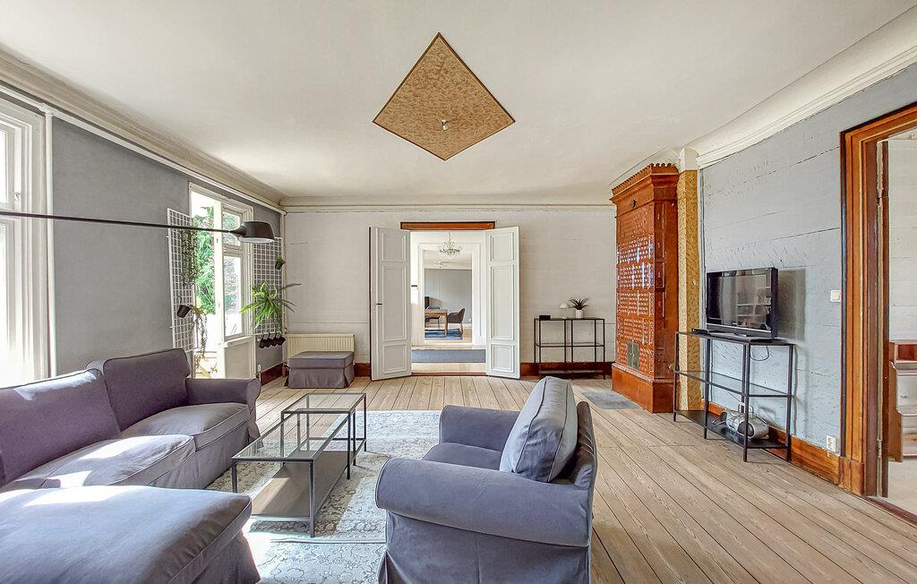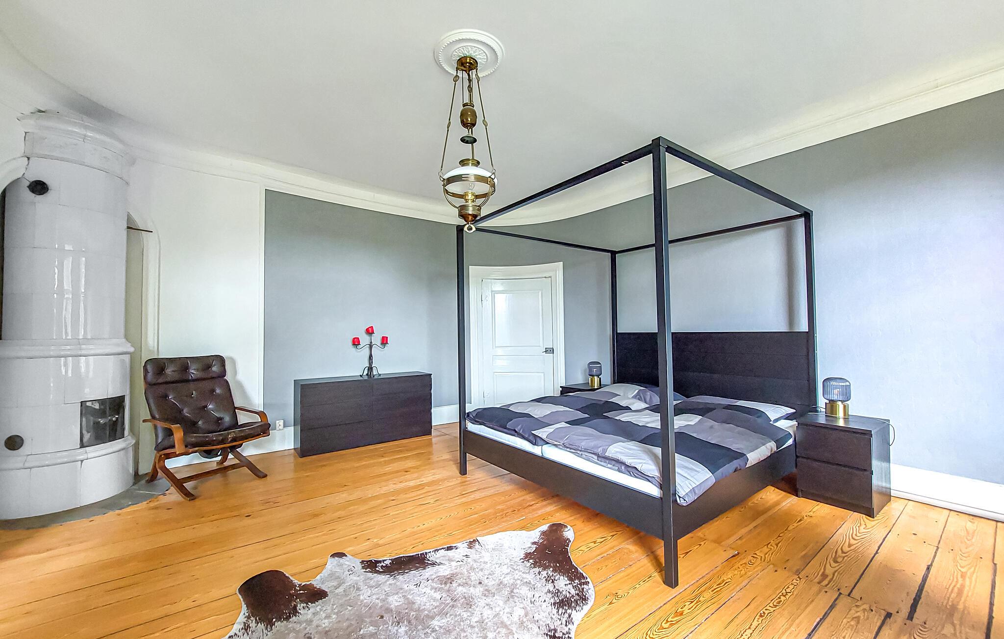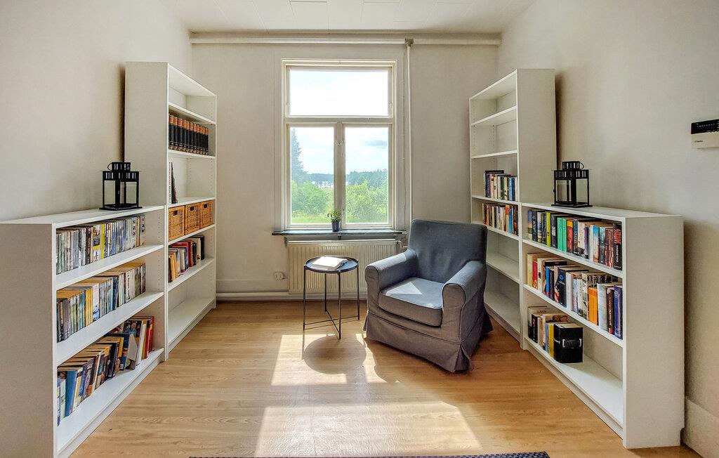 I dette rummelige, gamle herregårdshus kombineres komfort og rustik stil for at skabe en hyggelig atmosfære. Store vinduer lukker varmt naturligt lys ind, mens komfortable sofaer lægger op til at slappe af og snakke. Fordyb jer i en god bog i det lille bibliotek eller lav et lækkert måltid til jer selv og familien i det praktiske køkken.