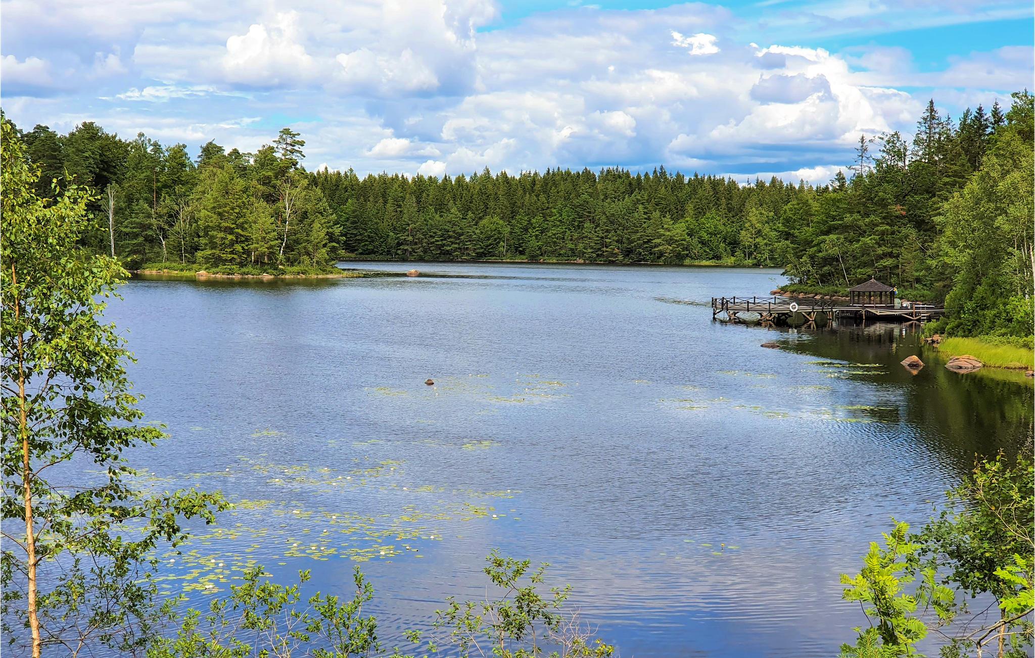 Glæd jer til de grønne omgivelser og den velholdte grund. Køer græsser rundt om huset, så alt er indrettet til en ferie tæt på naturen. Et par hundrede meter adskiller jer fra Gårdsjön, som er ideel til badning og fiskeri.