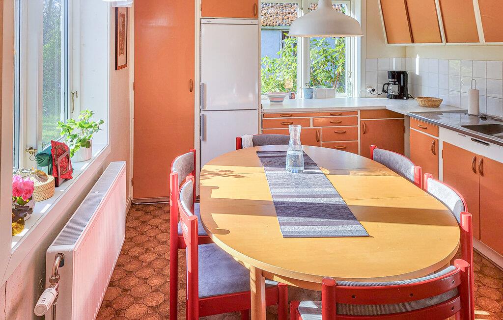 Oplev en idyllisk ferie i dette traditionelle feriehus ved søen Åsnen. Træd ind i et kærligt bevaret anlæg med en hyggelig atmosfære. Brug køkkenet med spiseplads til fælles måltider. Lav mad i fred og ro eller begynd dagene med morgenmad ved det smukke bord med udsigt over haven. I stuen indbyder pejsen til afslappende aftener. Læn jer tilbage i lænestolen, læs en bog eller nyd den stille knitren fra ilden.