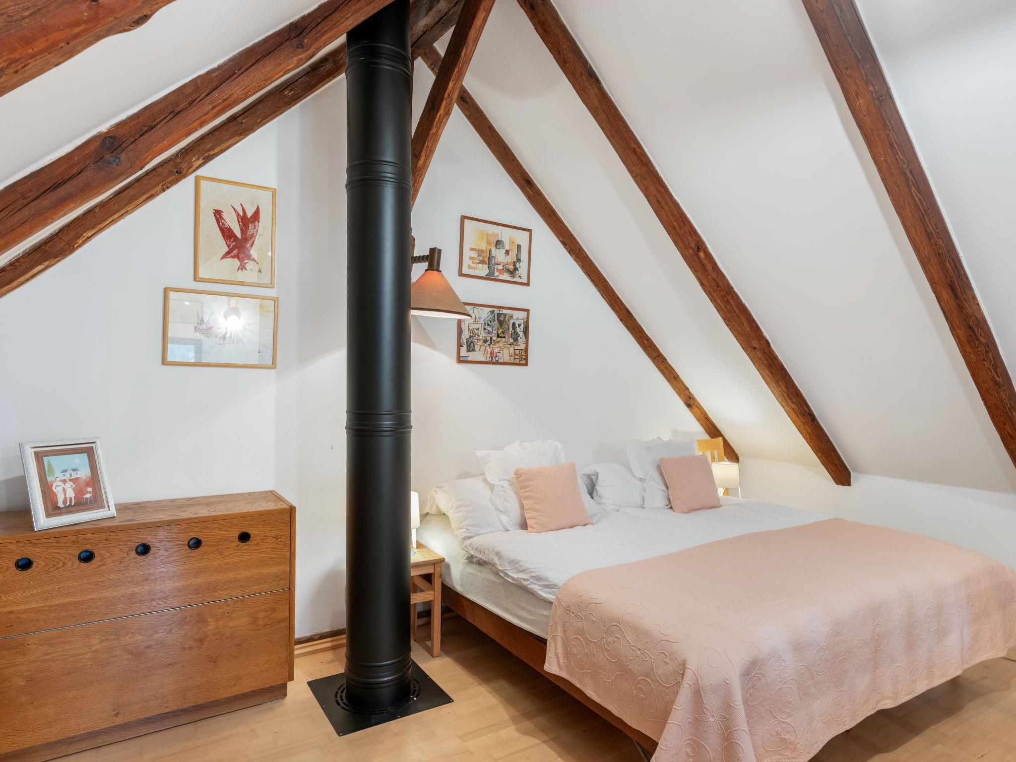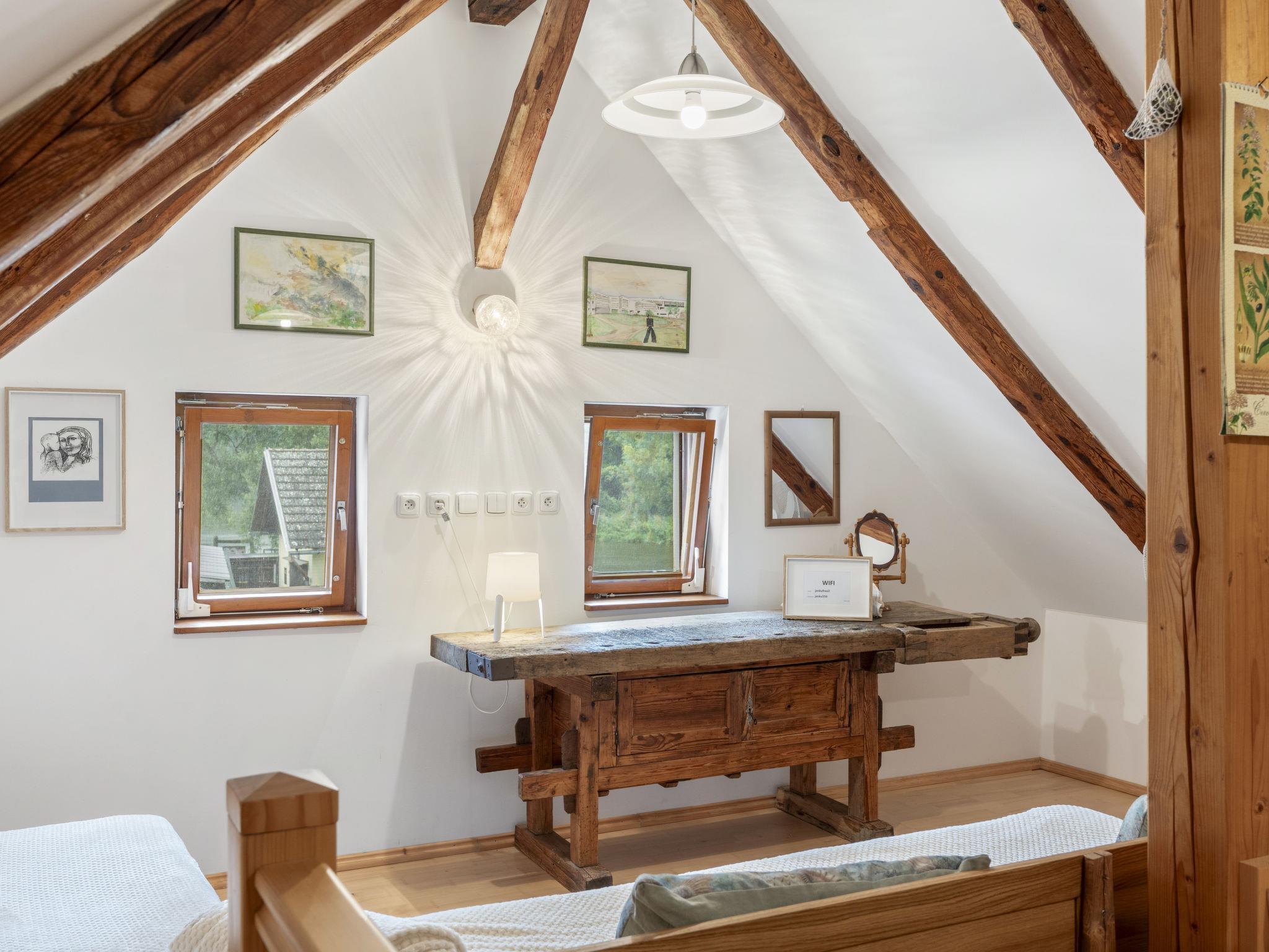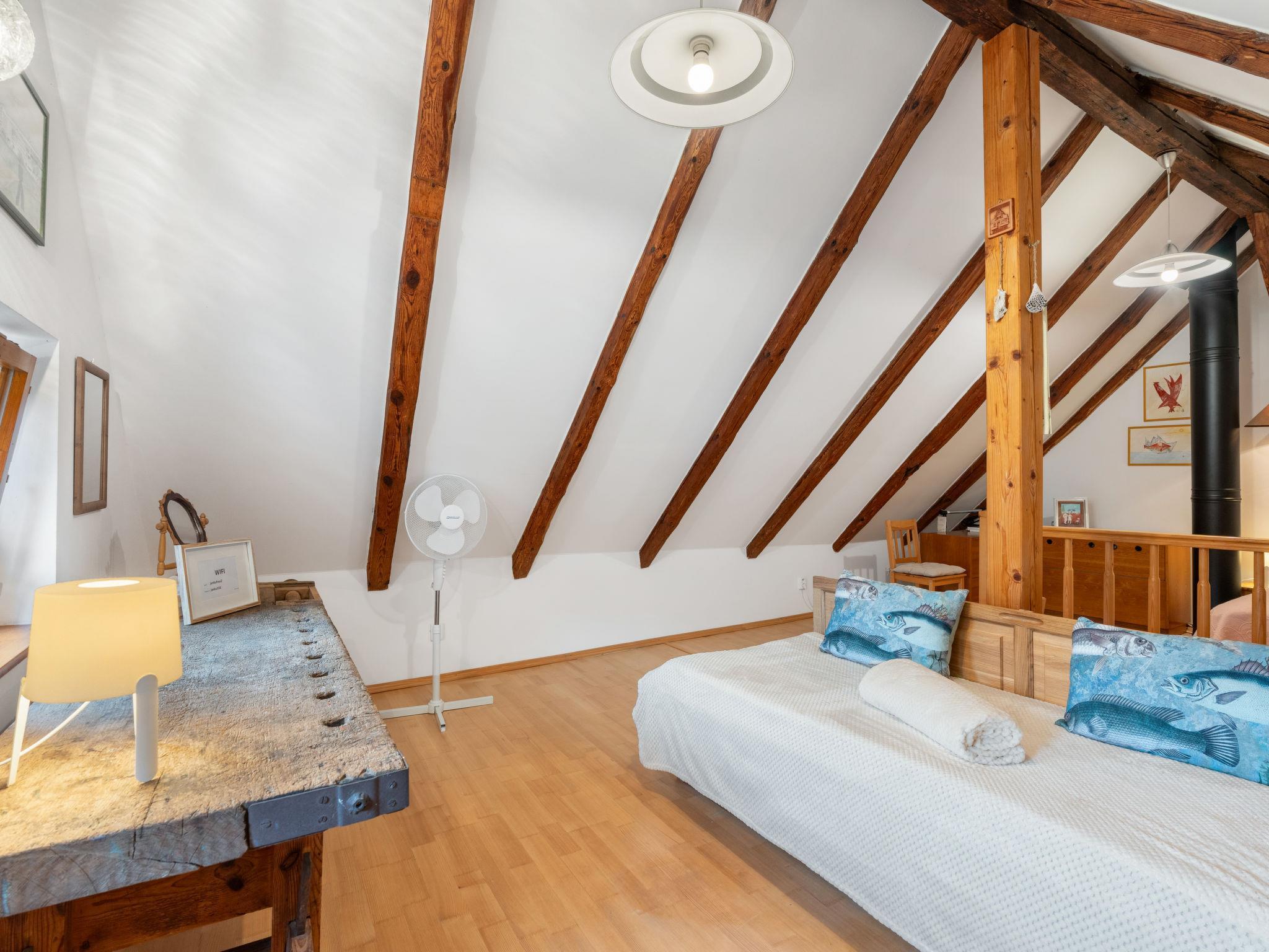 2-room house 60 m2 on 2 levels. Partly with sloping ceilings, very beautiful and cosy furnishings: living/dining room with 1 double sofabed, satellite TV and radio. Small kitchen (2 hot plates, oven, microwave). Shower/WC. Floor heating, boiler (60 litres). Upper floor: (steep stair) with sloping ceilings, 1 room with 2 beds and 1 french bed. Terrace. Facilities: Internet (WiFi, free). Please note: suitable for families. Non-smokers only. Fire extinguisher.