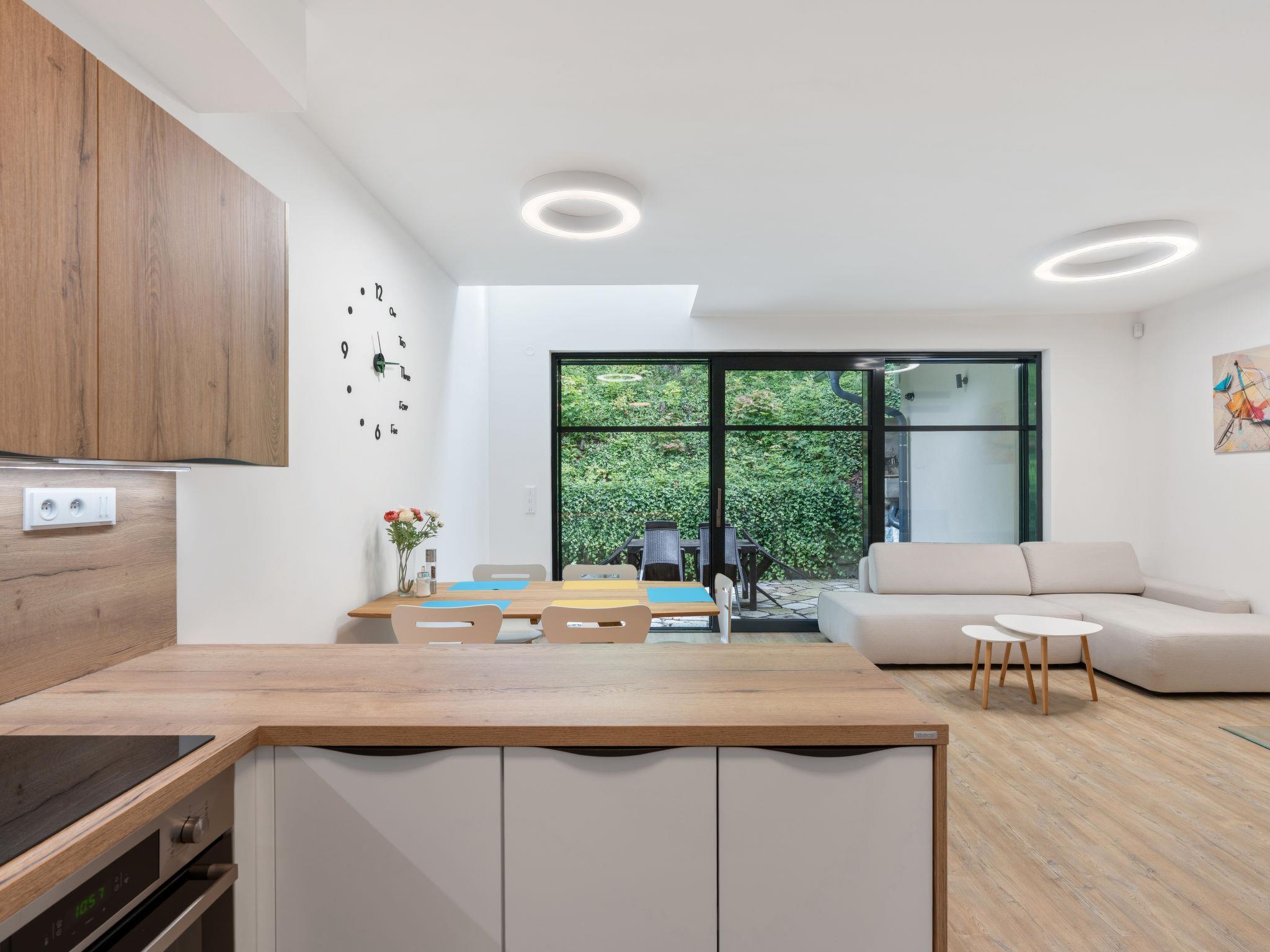 " U Buku 3", 3-room maisonette 100 m2 on 2 levels. Very modern and cosy furnishings: open living/dining room with 1 sofabed and open-hearth fireplace (only for decoration), dining table, TV and electric heating. Exit to the terrace. Kitchenette (oven, dishwasher, 4 ceramic glass hob hotplates, toaster, kettle, microwave, freezer). Sep. WC. Upper floor: (ladder), 1 room with sloping ceilings with 2 beds. 1 room with sloping ceilings with 1 bed and 1 double bed. Shower/WC. Electric heating. Terrace. Terrace furniture, box-room. Facilities: Internet (WiFi, free). Please note: suitable for families. Non-smokers only.