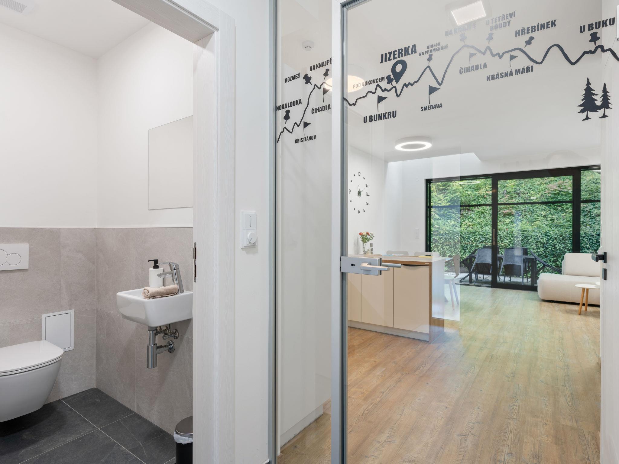 Modern, beautiful chalet, 2 storeys, built in 2024. 4 apartments in the property. 800 m from the skiing area. Private: terrace, garden furniture, barbecue, parking at the house. Shop, grocery 600 m, supermarket 8 km, shopping centre 8 km, restaurant, café 600 m, pub garden 1 km, bus stop "Bedrichov, vodárna" 800 m, railway station "Jablonec nad Nisou" 10 km, grass beach "Jablonec nad Nisou" 8 km, indoor swimming pool 10 km, bathing lake "vodní nádrž Bedrichov" 5 km. Golf course (18 hole) 18 km, tennis 1 km, riding stable 4 km, sports centre 1 km, walking paths from the house 1.5 km, cycle lane 100 m, ski lift, skisport facilities 800 m, slopes 1.5 km, ski rental 1.5 km, ski school 1.5 km, children's ski school 1.5 km, cross country ski track 2 km, children's playground 2 km. Nearby attractions: Discgolf, lanové centrum, bobová dráha 1.9 km, Rozhledna Královka 3 km, Prírodní rezervace Klikvová louka 2 km, Zoo, iQLANDIA, aquacen. Babylon Liberec 10 km, Rozhledna Bramberk 10 km, Jizerka 25 km, Hejnice, Lázne Libverda 35 km. Well-known ski regions can easily be reached: Bedrichov 2km, Severák 2800 m, Josefuv Dul 8 km, Tanvaldský Špicák 13 km, Ješted 20 km, Harrachov 30 km. Hiking paths: Naucná stezka Modré putování, Mravencí, Cerná Nisa, Jizerskohorské buciny (UNESCO) 34 km. Please note: suitable for families, suitable for seniors.