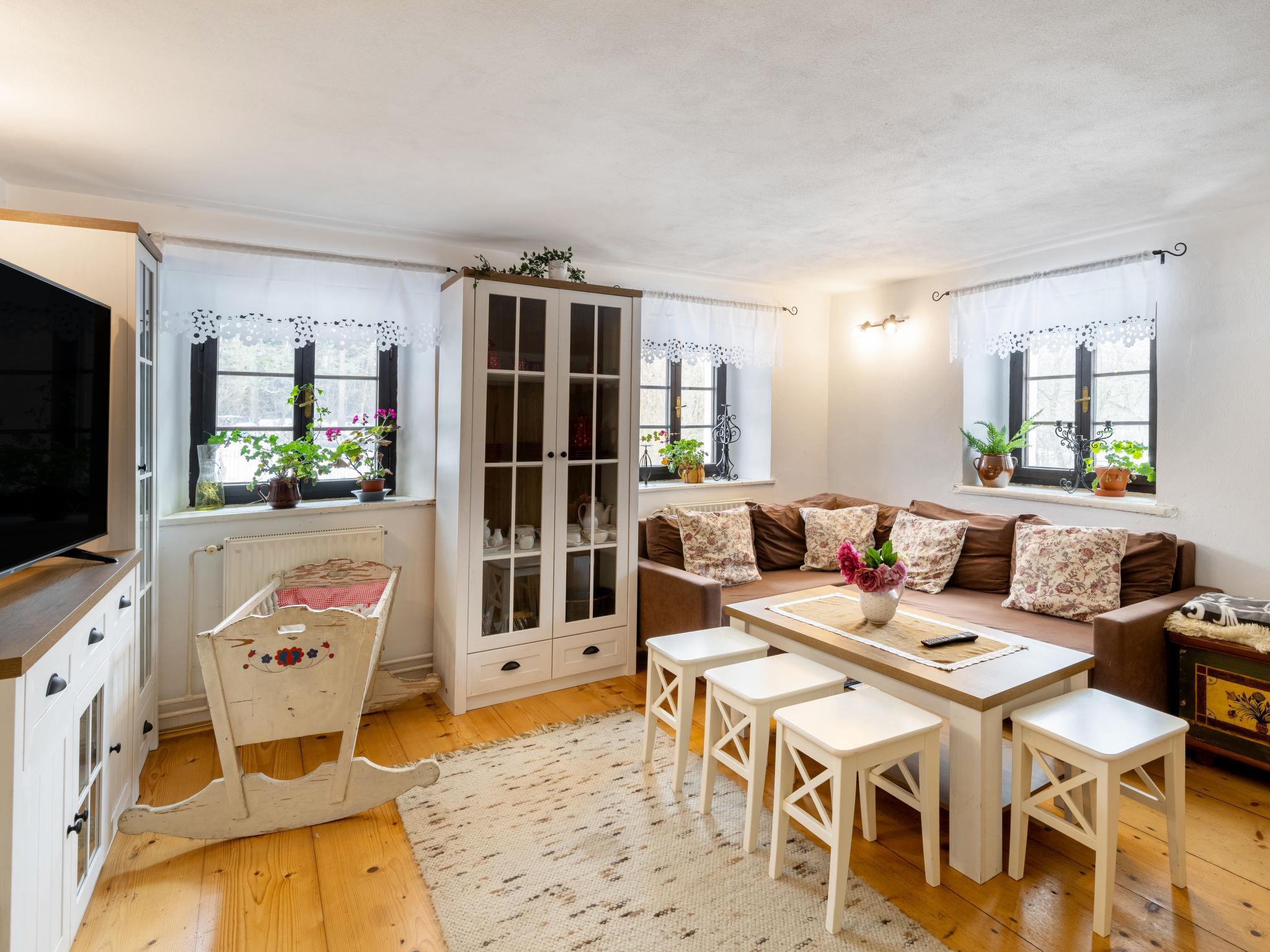 Country house "Benešov nad Cernou", 2 storeys, renovated. Outside the resort, 2 km from the centre of Benešov nad Cernou, in a secluded, quiet, sunny position, along the wooded area. Private: property 2 ha, large garden (fenced) with lawn, swimming pool heated (8 x 4 m, depth 150 cm, seasonal availability: 01.Jun. - 30.Sep.). Patio, arbour, garden furniture, barbecue, fireplace, barbecue house. In the complex: sauna, hot tub (all extra), washing machine. Motor access to the house (500 m via unmade road). In Winter: please take snow chains. Parking on the premises. Shop 2 km, grocery 2 km, restaurant 2 km, bus stop 2 km, railway station "Kaplice". Swimming pool with against current swimming, shed (5 x 5), deck chairs, parasol, swings. Horse riding on request (extra). River Cerna 50 m with small private beach, bathing pond 10 minutes on foot, fishing (extra). Sport fishing (trouts) 1 km. Forets of Zofinsky 8 km, mushrooms picking. 2 outdoor areas with furniture one under the pergola, the other next to the barbecue. The owner can arrange fishing in a private lake or rafting on the Vltava river (on request, extra).