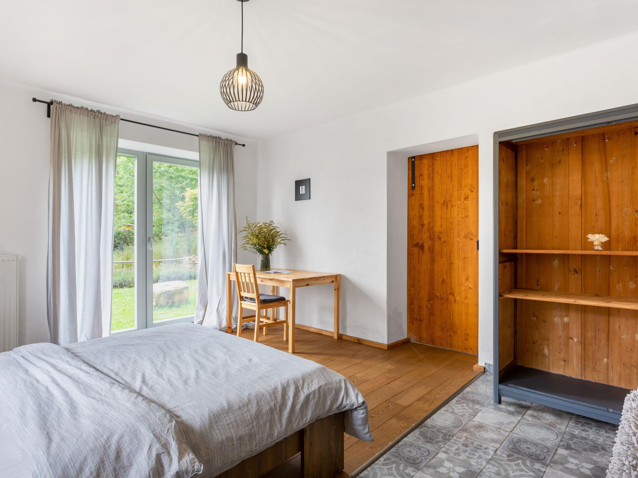 "Brnícko", 4-room house 160 m2. Modern and cosy furnishings: living/dining room with 1 sofabed and radio. Exit to the garden. 3 rooms, each room with 1 french bed (140 cm). Open kitchen (oven, dishwasher, 4 ceramic glass hob hotplates, kettle, freezer, electric coffee machine) with dining table, Scandinavian wood stove. Shower/WC, sep. WC. Wood heating, boiler (120 litres). Terrace 60 m2. Terrace furniture. Beautiful view of the countryside. Facilities: washing machine, dryer, logs (extra). Internet (WiFi, free). Please note: suitable for families. Non-smoking house.