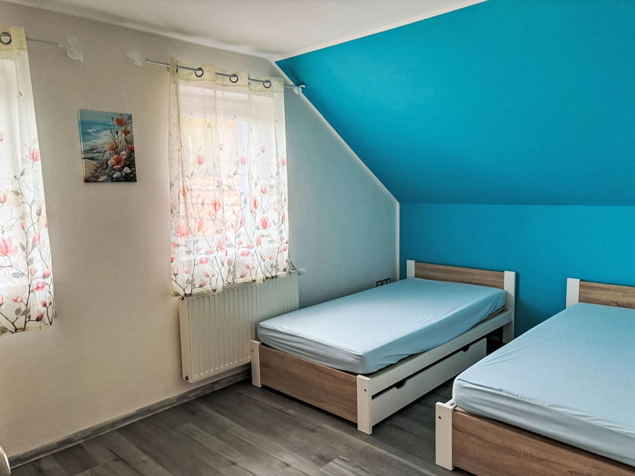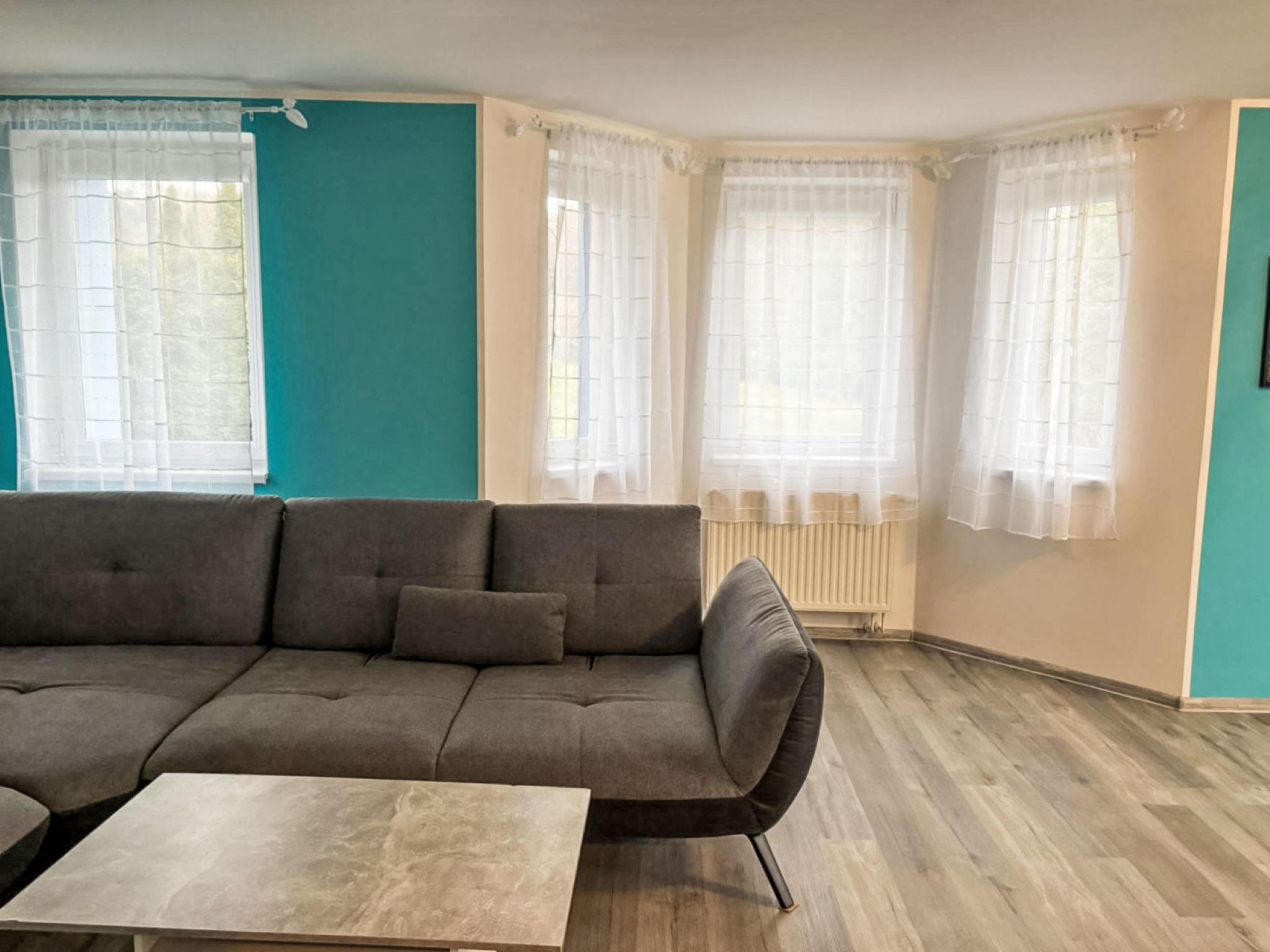 "Hostyn Hills", 4-room house 125 m2 on 2 levels. Living room with Scandinavian wood stove and TV. Exit to the terrace. Kitchen (oven, dishwasher, toaster, kettle, microwave) with dining table. Sep. WC. Upper floor: 1 room with 1 double bed. 1 room with 1 double bed. 1 room with 2 beds. Bath/WC. View of the mountains and the countryside. Facilities: washing machine, dryer. Internet (WiFi, free). Please note: non-smoking house. Maximum 1 small pet/ dog allowed.