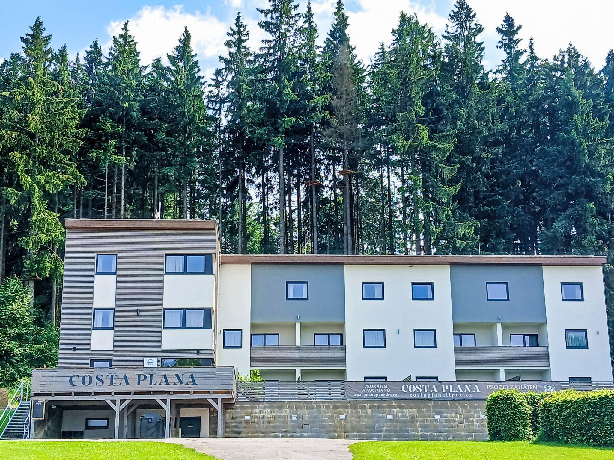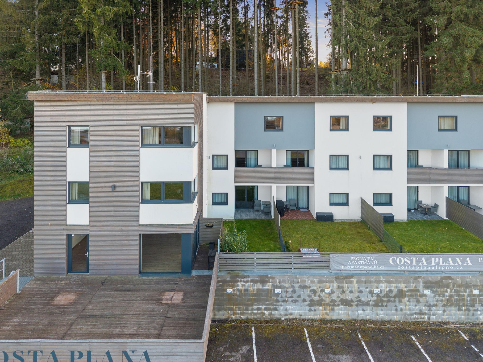 Cerná v Pošumaví 20 km from Ceský Krumlov: Modern apartment block "Costa Plana", 3 storeys, detached, built in 2020. In a sunny position, 10 m from the edge of the forest, 100 m from the lake. Private: small garden 31 m2 (fenced). Terrace (6 m2). In the house: bistro, central heating system. Parking at the house. Grocery 1 km, restaurant, pub garden 300 m, bus stop "Cerná v Pošumaví" 500 m, railway station "Cerná v Pošumaví" 1.5 km, sandy beach "Lipno" 100 m, indoor swimming pool 11 km, bathing lake "Lipno" 100 m. Golf course (18 hole) 27 km, minigolf 150 m, walking paths from the house 10 m, cycle lane 50 m, cable car 19 km, ski school 19 km, cross country ski track 2 km, children's playground 100 m. Nearby attractions: Adventure Park - paintball, lanový park 50 m, Aquapark Frymburk 11 km, Aquaworld Lipno, Bikepark, Marina, Stezka korunami stromu, Lesní hrište Království lesa (Lipno) 19 km, Ceský Krumlov (UNESCO) 22 km, Klášter Zlatá koruna 27 km, Rožmberk 29 km. Well-known ski regions can easily be reached: Frymburk 11 km, Lipno nad Vltavou 19 km, Sternstein 42 km, Hochficht 44 km, Mitterdorf 52 km. Well-known lakes can easily be reached: Lipenské jezero 100 m. Hiking paths: CHKO Šumava, Svatojakubská cesta. Please note: suitable for families.