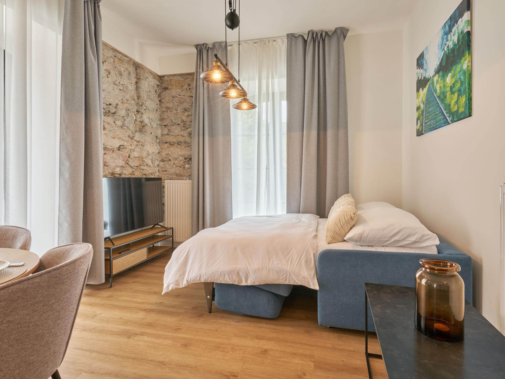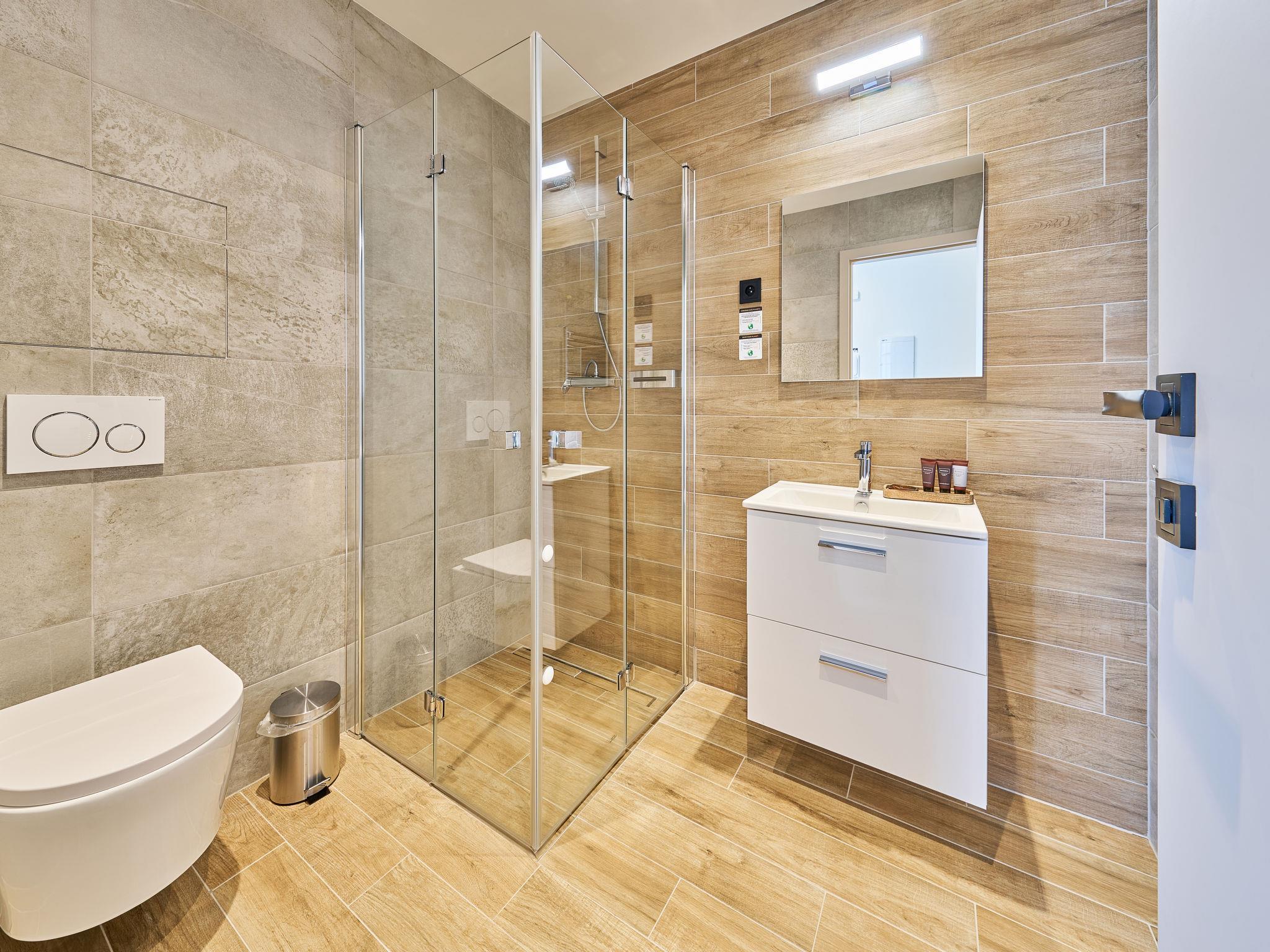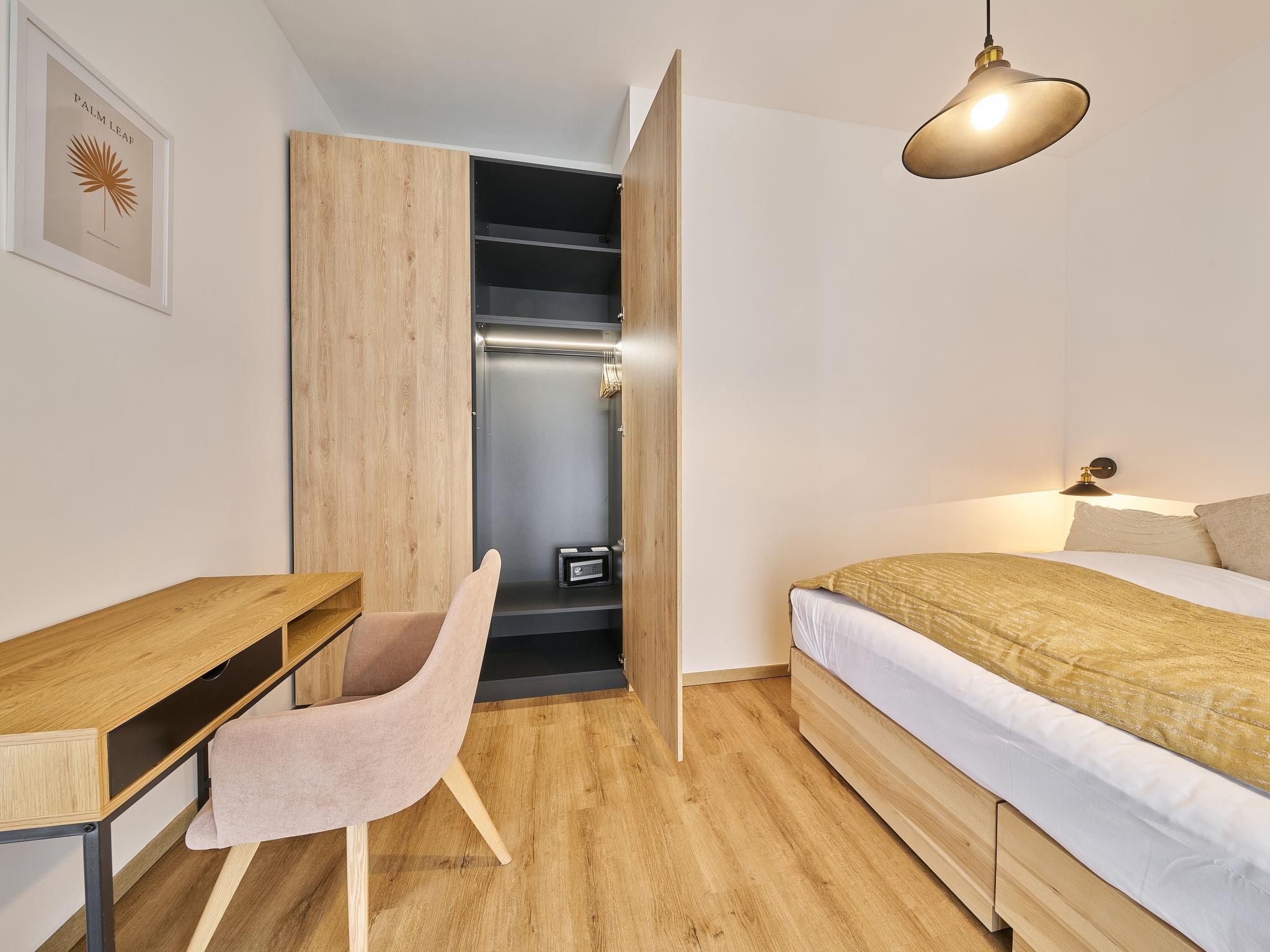 "Luxury Home with large terrace & Netflix", 2-room apartment on the ground floor. Very beautiful and stylish furnishings: living/dining room with 1 double sofabed, dining table and TV. 1 room with 1 double bed. Kitchenette (dishwasher, 4 ceramic glass hob hotplates, toaster, kettle, microwave, freezer, electric coffee machine). Shower/WC. Large terrace 35 m2. Terrace furniture, box-room. Facilities: safe, iron, children's high chair, baby cot, hair dryer. Internet (WiFi, free). Parking at the house. Suitable for families.