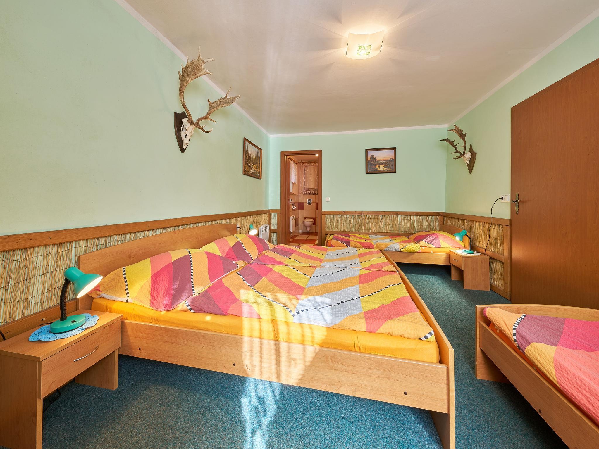 Chlívce 8 km from Hronov: Cosy country house "Chlívce u Hronova", 2 storeys, detached. Outside the resort, in a quiet, elevated position. For shared use: property 1'000 m2, swimming pool round (4,60 m diameter, seasonal availability: 01.Jul. - 31.Aug.). Arbour, garden furniture, barbecue, fireplace, barbecue house, children's playground, parking at the house. Shop 3.5 km, shopping centre 8 km, restaurant 250 m, bus stop "Chlívce" 500 m, railway station "Hronov, Cervený Kostelec" 8 km, outdoor swimming pool 9 km, indoor swimming pool 35 km, natural swimming pond 4 km. Ski lift, slopes 200 m, cross country ski track 10 m. Nearby attractions: Muzeum Aloise Jiráska/Hronov 8 km, Adršpašsko-teplické skály 17 km, Broumovské steny, Náchod 17 km, Ratiborice a Babiccino údolí 20 km, Broumov 28 km, Relaxpark Pec pod Snežkou 50 km. Well-known ski regions can easily be reached: Radvanice 10 km, Petrikovice 16 km, Mladé Buky 34 km, Janské Lázne 40 km. Well-known lakes can easily be reached: vodní nádrž Rozkoš 25 m. Children's house in the garden. It is possible to arrange meals in a private club, which is at a distance of 250 m (on request). This cottage can be rented as a whole house or separately as 4 fully equipped apartments in the low season.