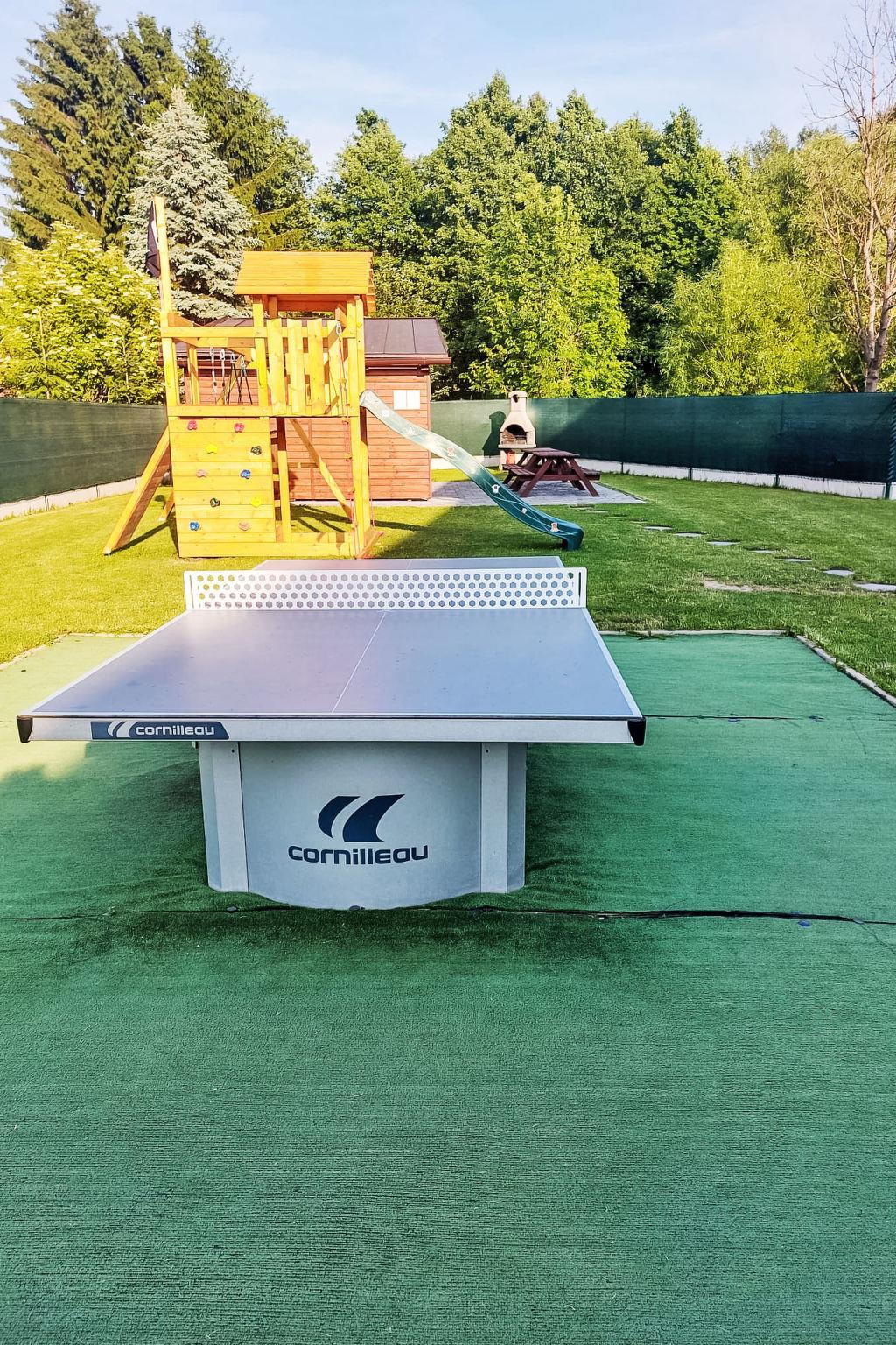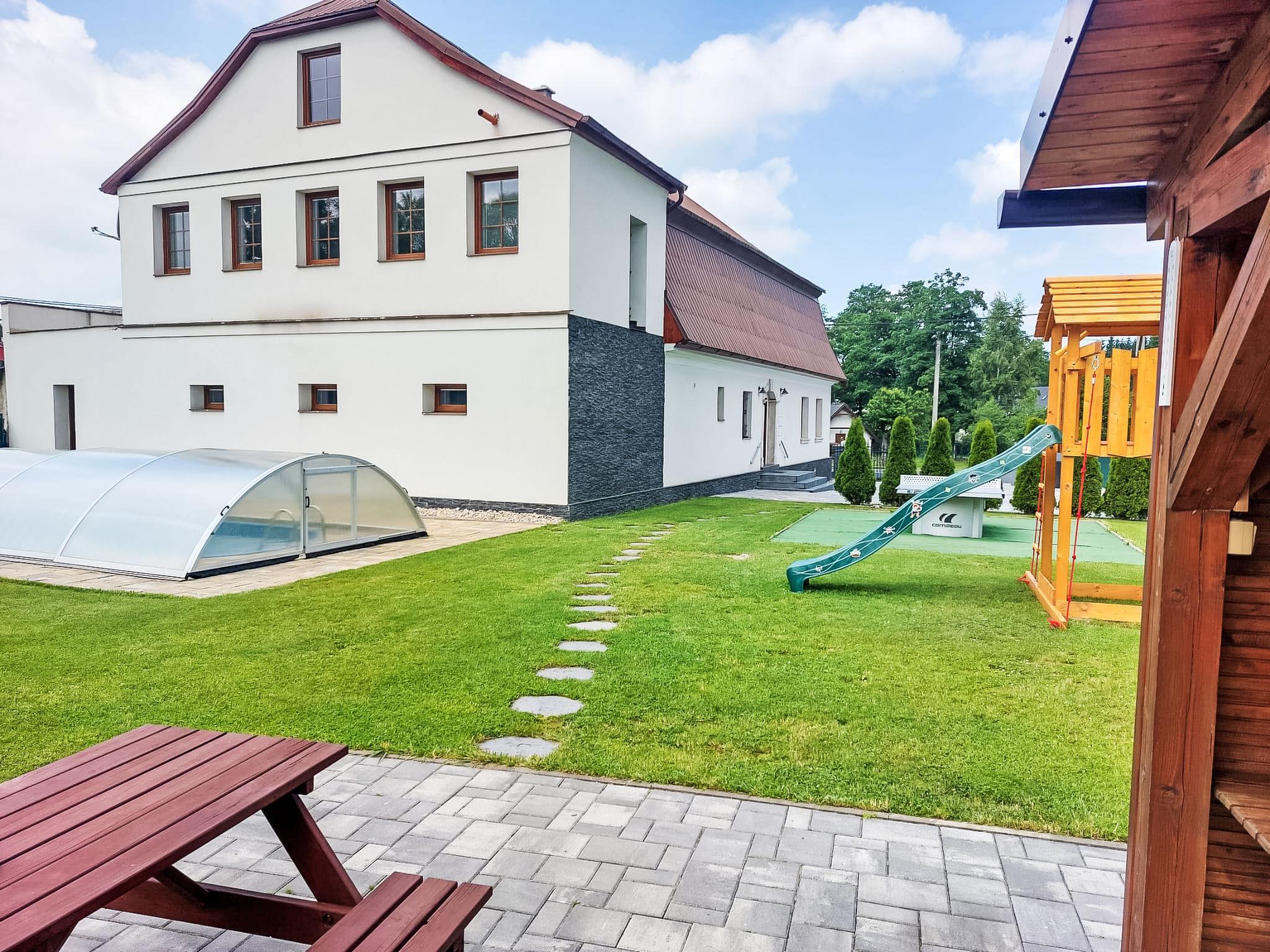 Modern, beautiful country house "Pool & Wellness Estate", 610 m a.s.l., detached, renovated in 2019. 300 m from the centre of Olešnice v Orlických horách, 16 km from the centre of Dobruška, Nové Mesto nad Metují, 22 km from the centre of Náchod, in a central position, 20 km from the lake. Private: property 800 m2, garden (fenced), swimming pool (7 x 3 m, depth 120 cm, seasonal availability: 02.May. - 26.Sep.). Pergola, garden furniture, barbecue. In the house: sauna, hot tub, table tennis, trampoline. Parking (for 6 cars) on the premises. Shop 500 m, supermarket 16 km, bus stop "Olešnice v Orlických horách" 400 m, railway station "Dobruška" 16 km, grass beach 20 km, outdoor swimming pool 16 km, indoor swimming pool 16 km, bathing lake "Broumar" 20 km. Walking paths from the house 50 m, cycle lane, ski lift 850 m, chair lift 850 m, slopes, ski rental 850 m, ski school, cross country ski track 500 m. Nearby attractions: Nové Mesto nad Metují 16 km, Náchod 22 km, Teplice nad Metují, Adršpach 40 km, Hradec Králové 50 km. Well-known ski regions can easily be reached: Olešnice v Orlických horách 850 m, Deštné v Orlických horách 10 km. Well-known lakes can easily be reached: Broumar 20 km, Rozkoš 29 km.
