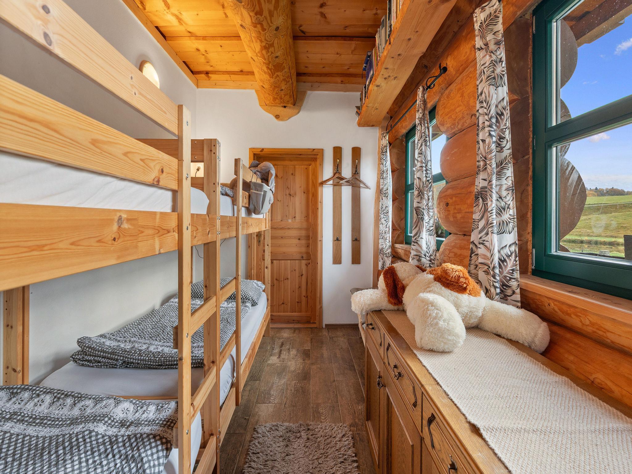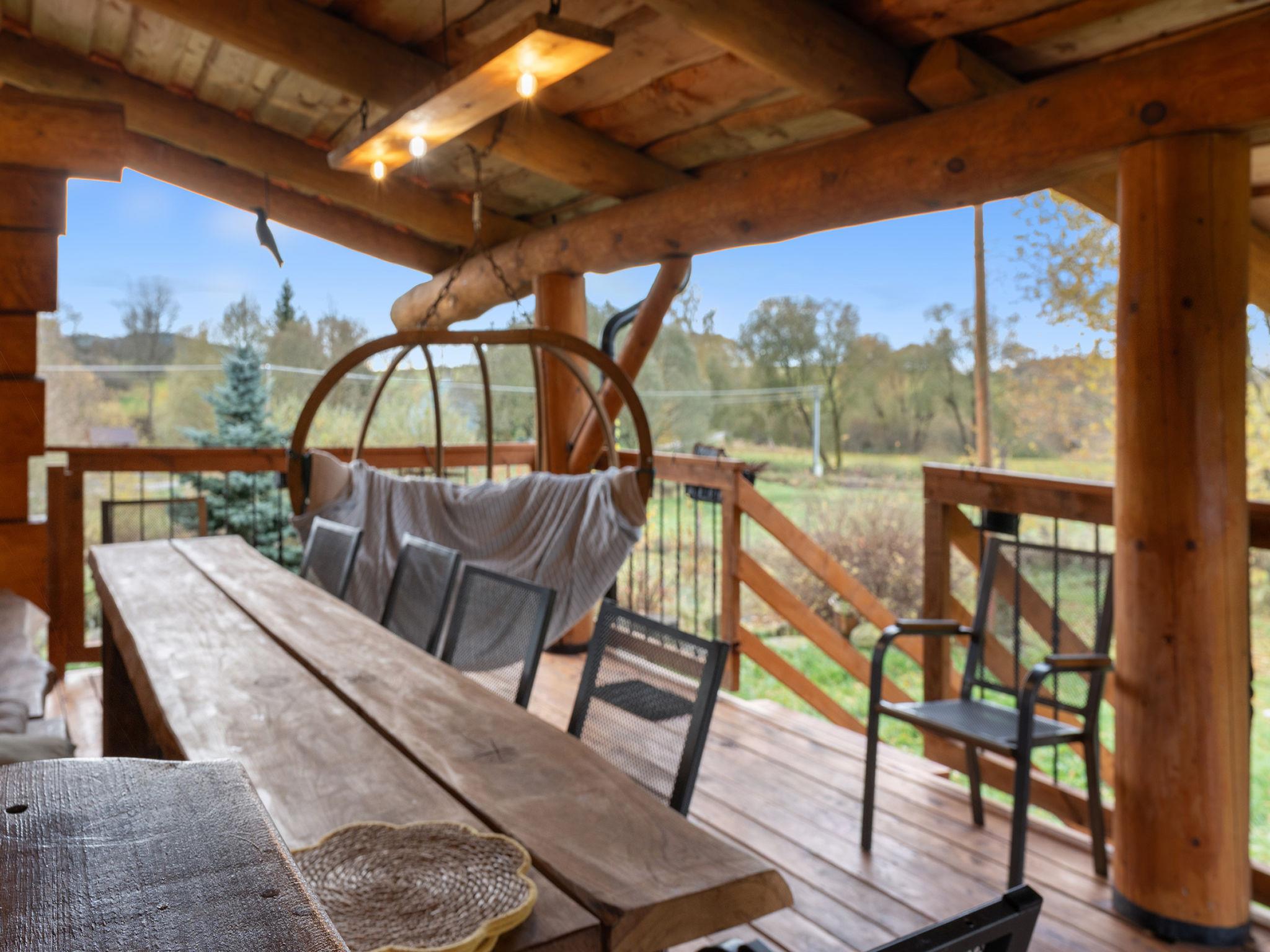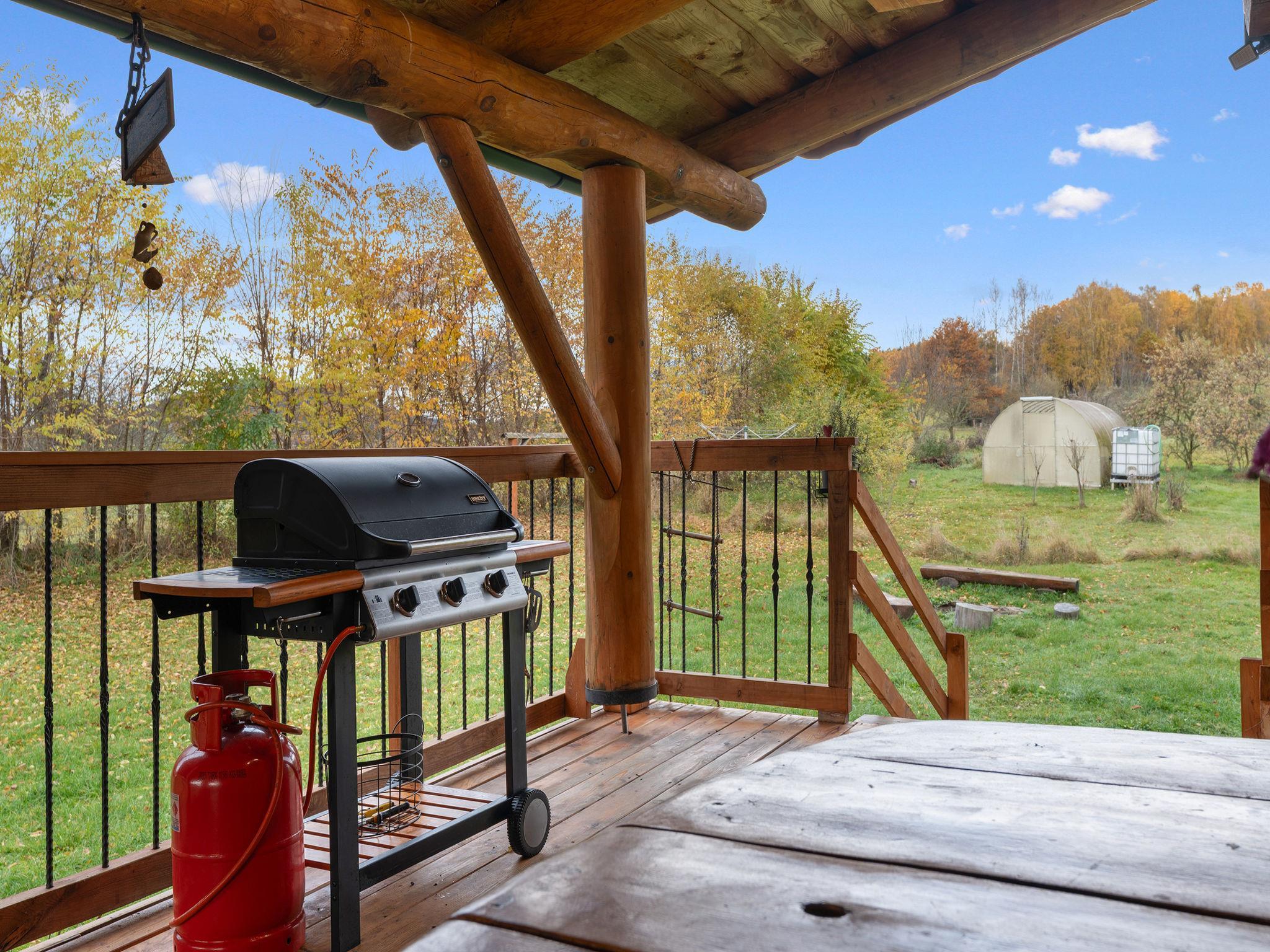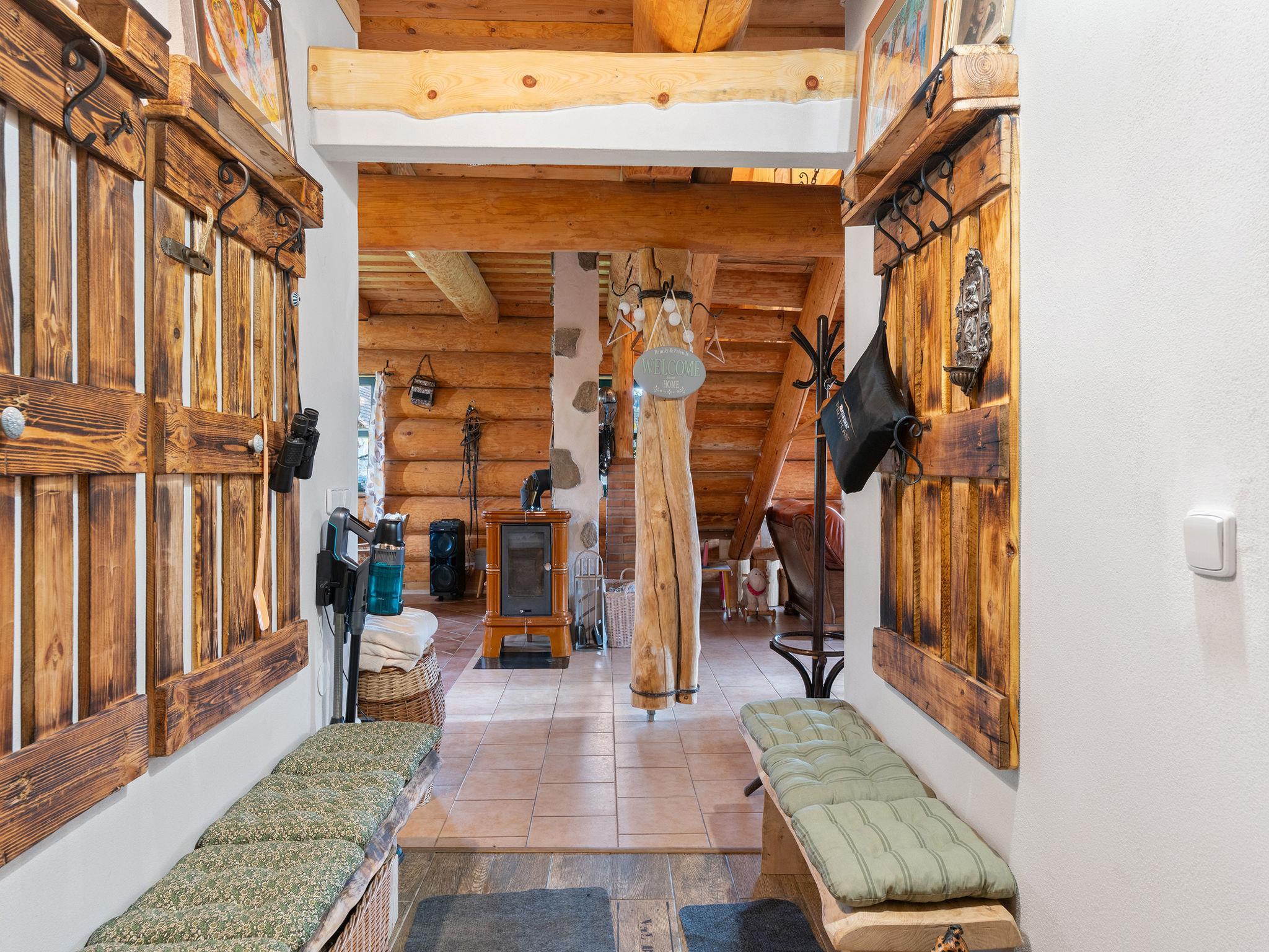 Beautiful, comfortable timber house "Srub Pohodár". In a quiet position. Private: property (fenced), large garden. Tennis, badminton, patio, terrace, garden furniture, barbecue (swing, sandbox), parking (for 4 cars) at the house. Grocery 2 km, restaurant 3 km, café 3 km, bus stop "Benešov nad Cernou, Dluhošte" 920 m, railway station "Kaplice" 13 km. Nearby attractions: Benešov nad Cernou 4.5 km, Kaplice 8 km, Ceský Krumlov 30 km. Well-known ski regions can easily be reached: Kozí Plán 17 km. Well-known lakes can easily be reached: Kanclérský rybnik 2 km. Hiking paths: Vysoký kámen 1 km, Rozhledna Hradište 5 km, Prales Hojná Voda 18 km.