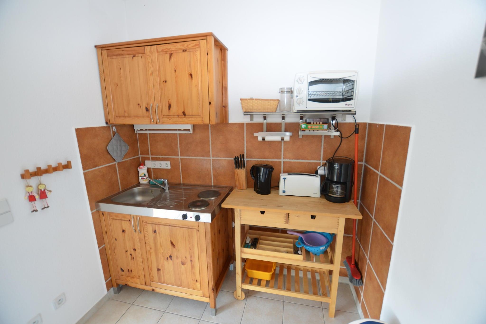 Stueetage: (Indgang , Stue(dobbeltsovesofa, Fjernsyn(parabol), spisebord(4 personer), pejs, sofahjørne), åbent køkken(kogeplade(Komfur med to kogeplader, elektrisk), elkedel, kaffemaskine, mikrobølgeovn, køle-fryseskab), soveværelse(dobbeltseng), badeværelse(bruser, håndvask, toilet)) varme(elektrisk, central), terrasse(privat, 8 m2), havemøbler(4 personer), parkering, Parasol