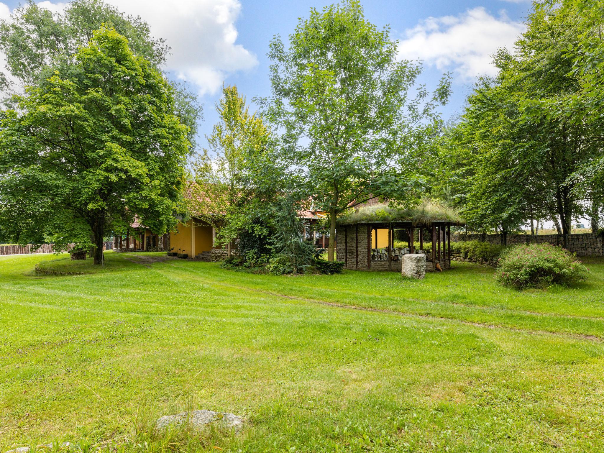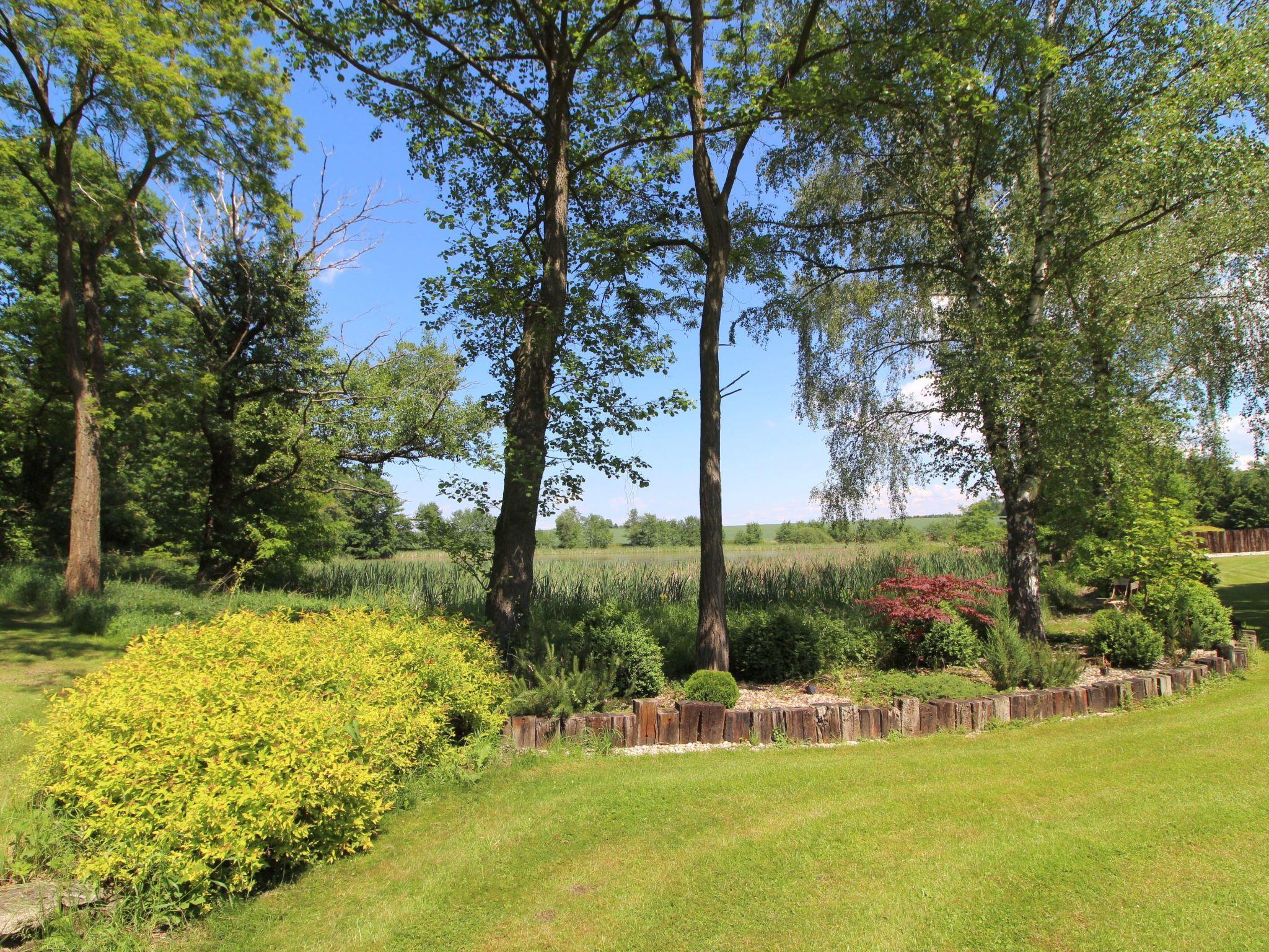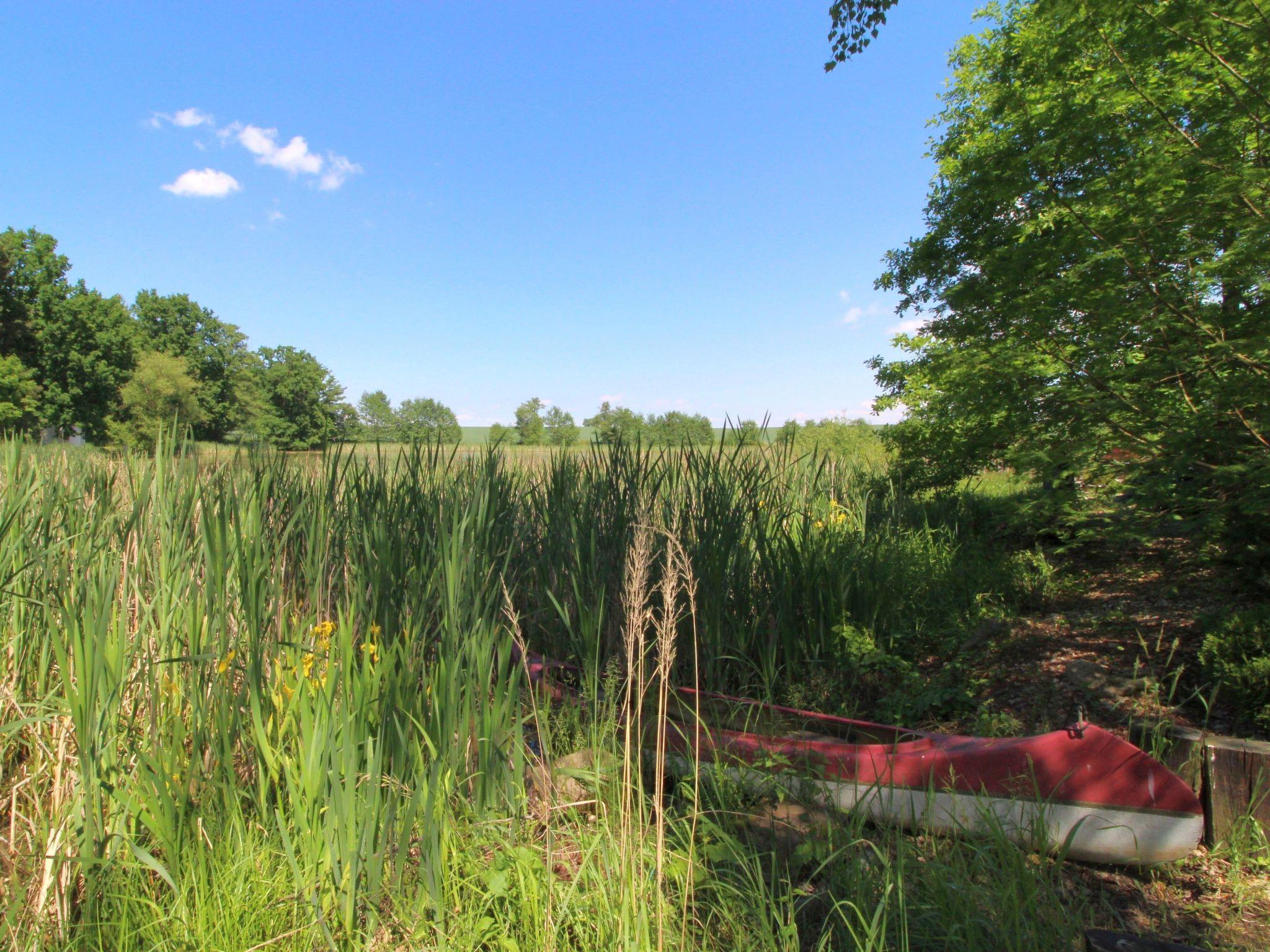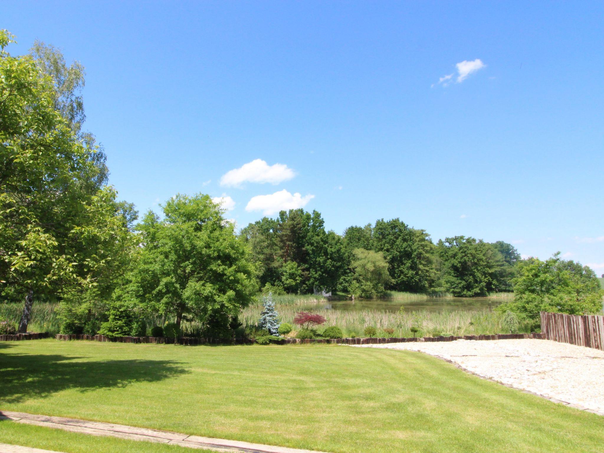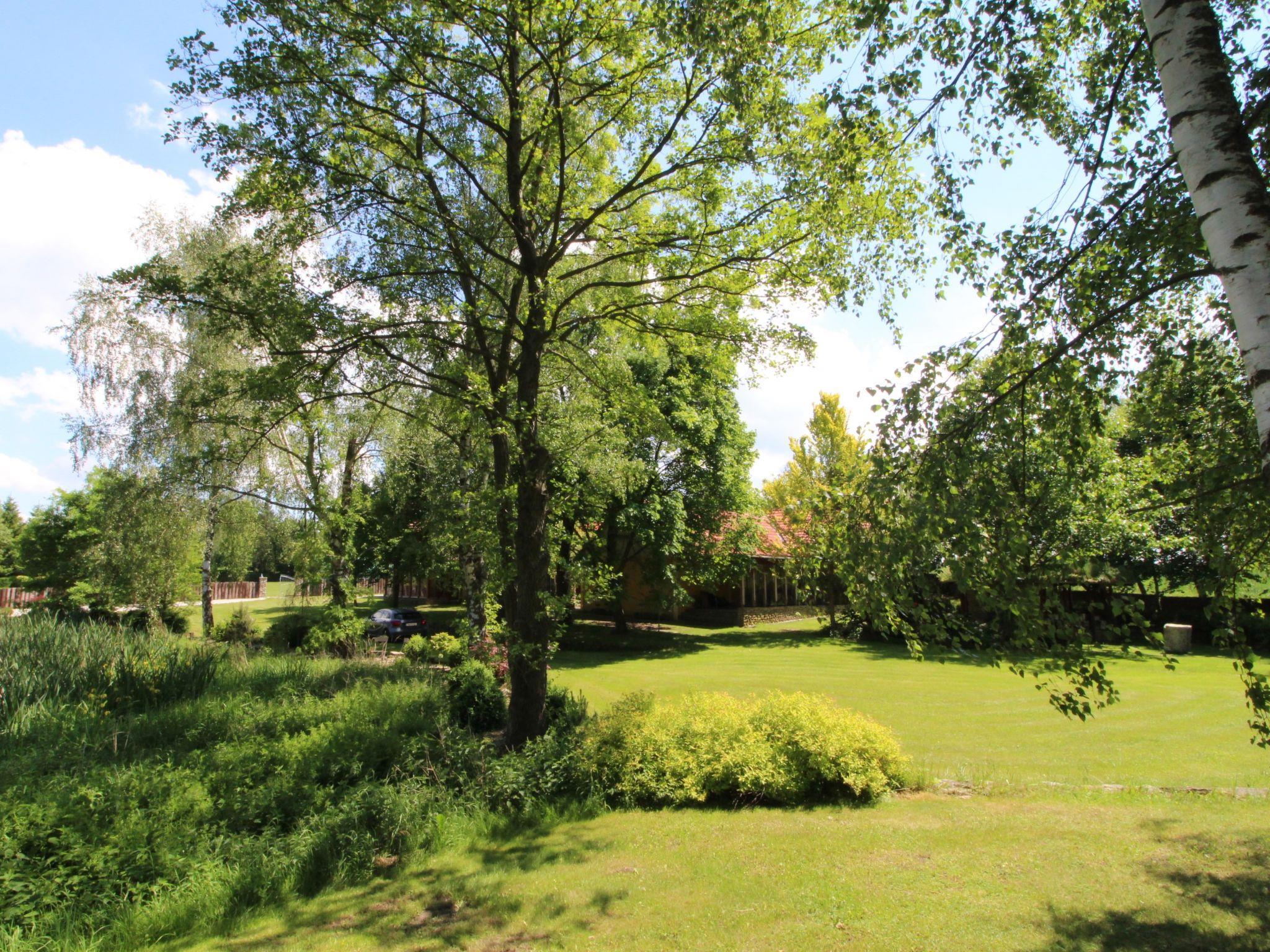 Bzí 3 km from Dolní Bukovsko: In a beautiful location by the pond, house "Bzí", 2 storeys, detached, built in 1872, renovated in 2005. Outside the resort, in a quiet, sunny position, in the countryside. Private: property 3'000 m2, garden, indoor pool heated (8 x 4 m, depth 150 cm, seasonal availability: 01.Jun. - 30.Sep.). Arbour, terrace, garden furniture, barbecue. In the house: WiFi, central heating system. Available: canoe. Parking (for 4 cars) on the premises. Grocery 5 km, restaurant 5 km, bus stop "Žimutice, Sobetice" 700 m. Nearby attractions: CHKO Trebonsko 10 km, Týn nad Vltavou 12 km, Veselí nad Lužnicí 15 km, Sobeslav 20 km, Zámek Hluboká nad Vltavou 22 km, Ceské Budejovice 25 km.