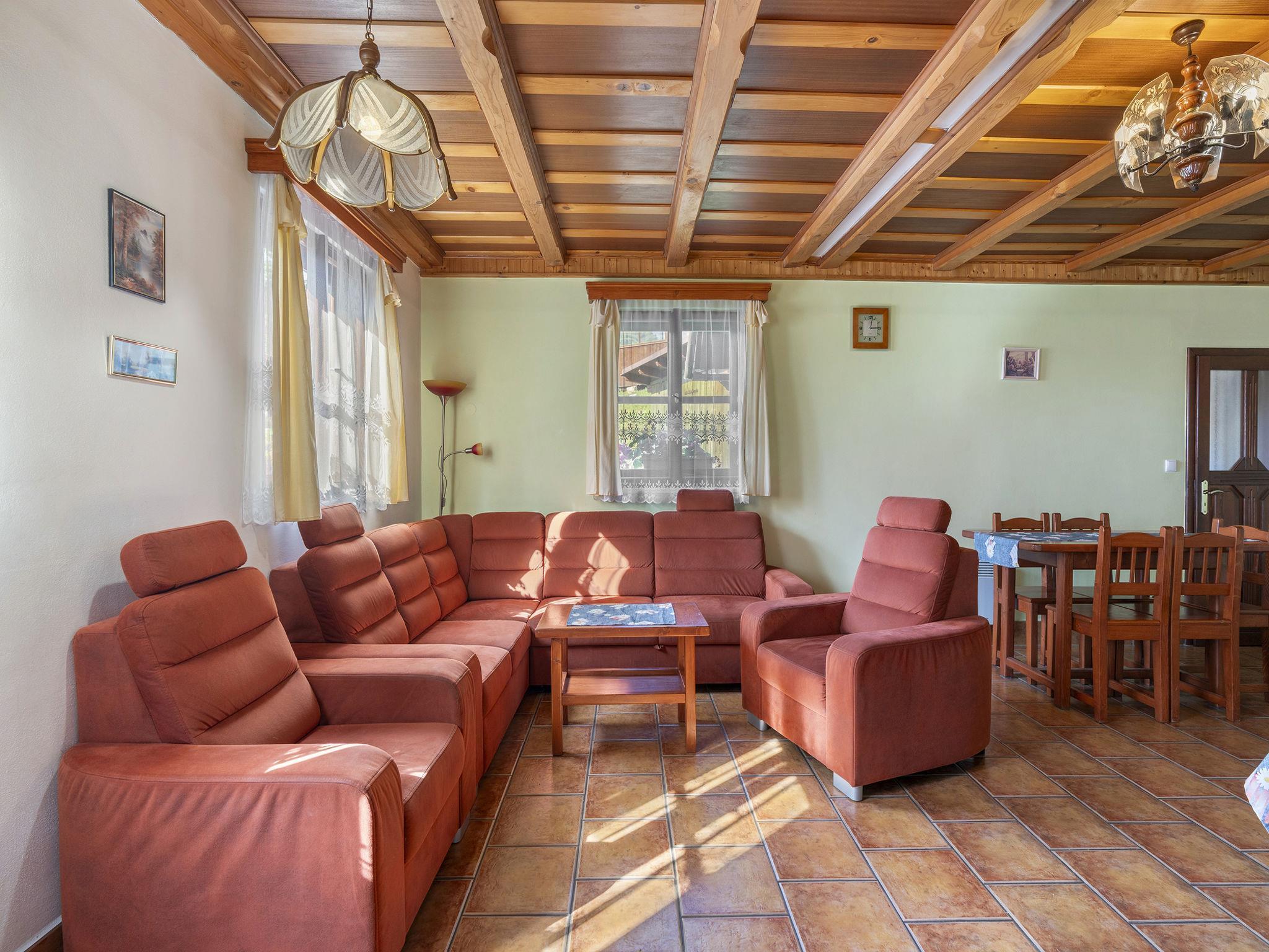 "Loukov u Semil", 4-room house 144 m2 on 2 levels. Living room with 1 sofabed, Scandinavian wood stove and satellite TV. Open kitchen (oven, dishwasher, 4 ceramic glass hob hotplates, toaster, kettle, microwave, electric coffee machine) with dining table. Bath/shower, bidet, sep. WC. Upper floor: 1 room with 1 bed and 1 double bed. 1 room with 1 bed and 1 double bed. 1 room with 2 beds. Sep. WC. Electric heating, wood heating. 2 terraces. Terrace furniture. Beautiful view of the countryside. Facilities: logs (free). Internet (WiFi, free). Please note: suitable for families. Non-smoking house. Maximum 2 pets/ dogs allowed. Smoke alarm, fire extinguisher.