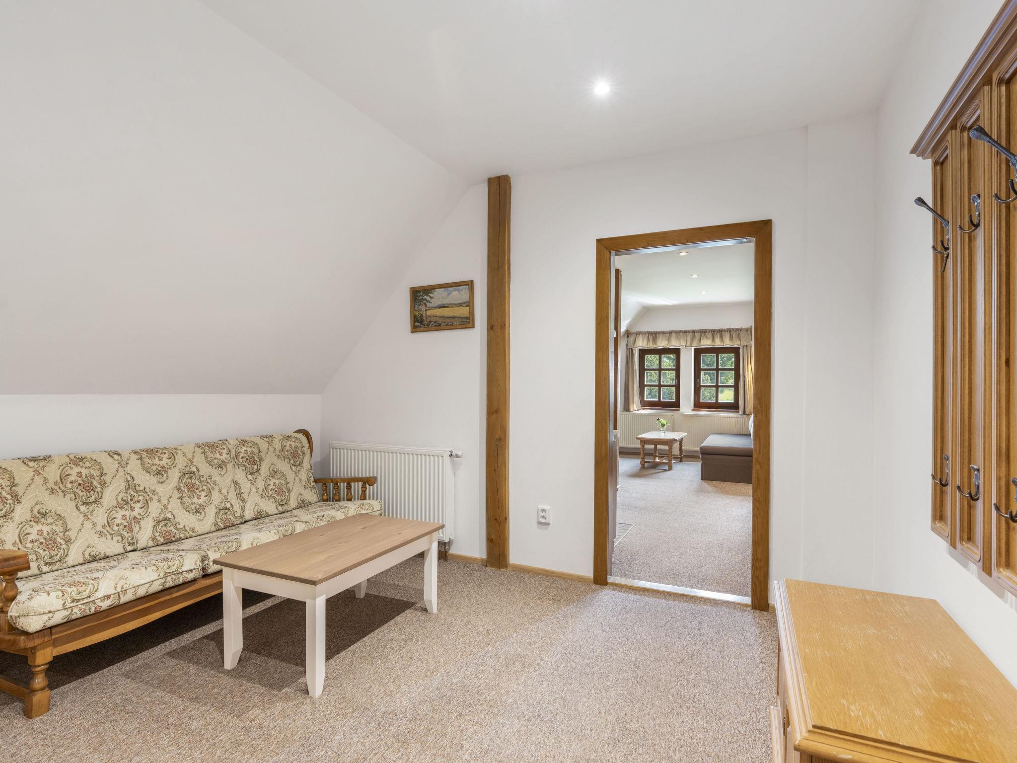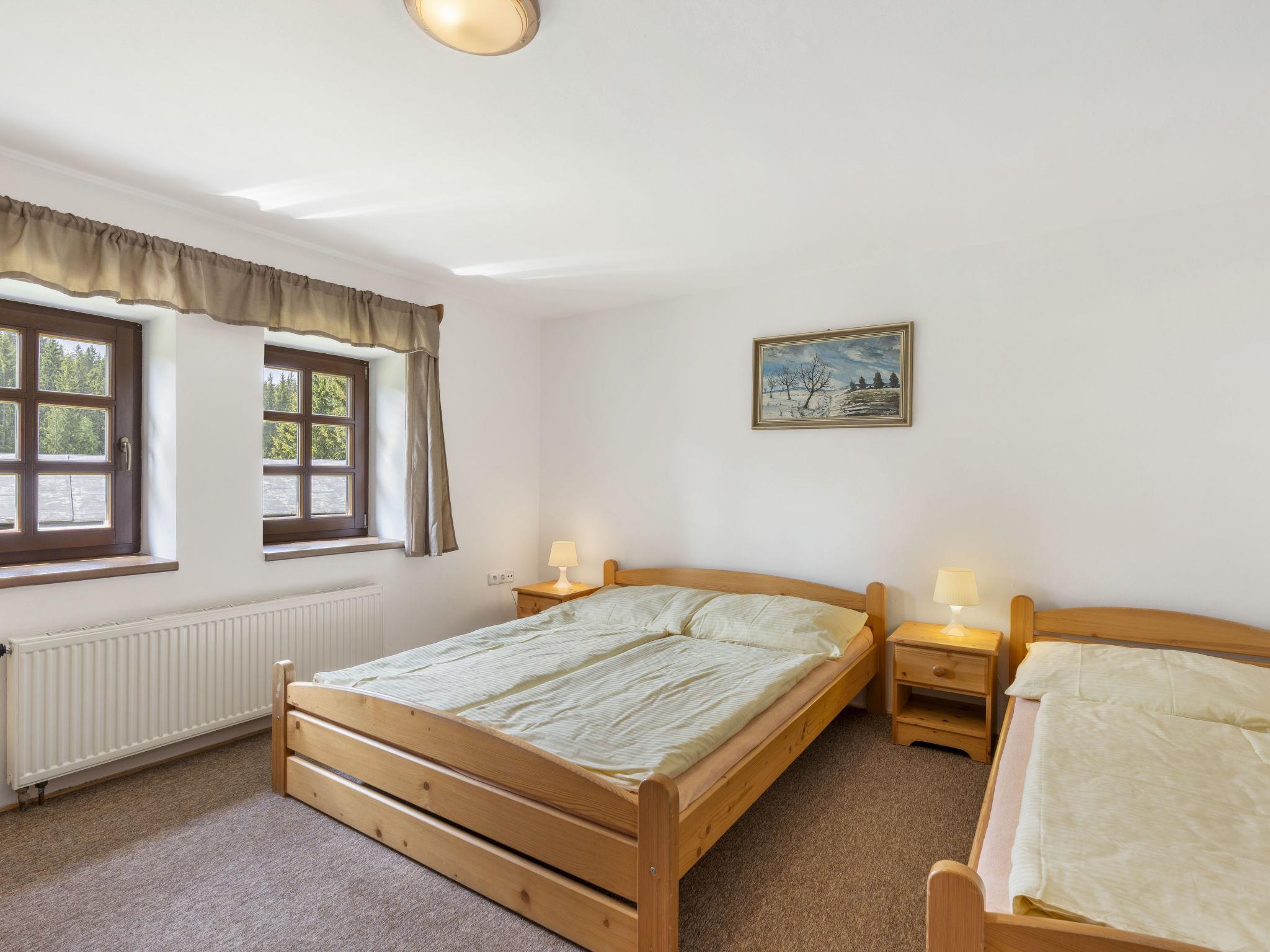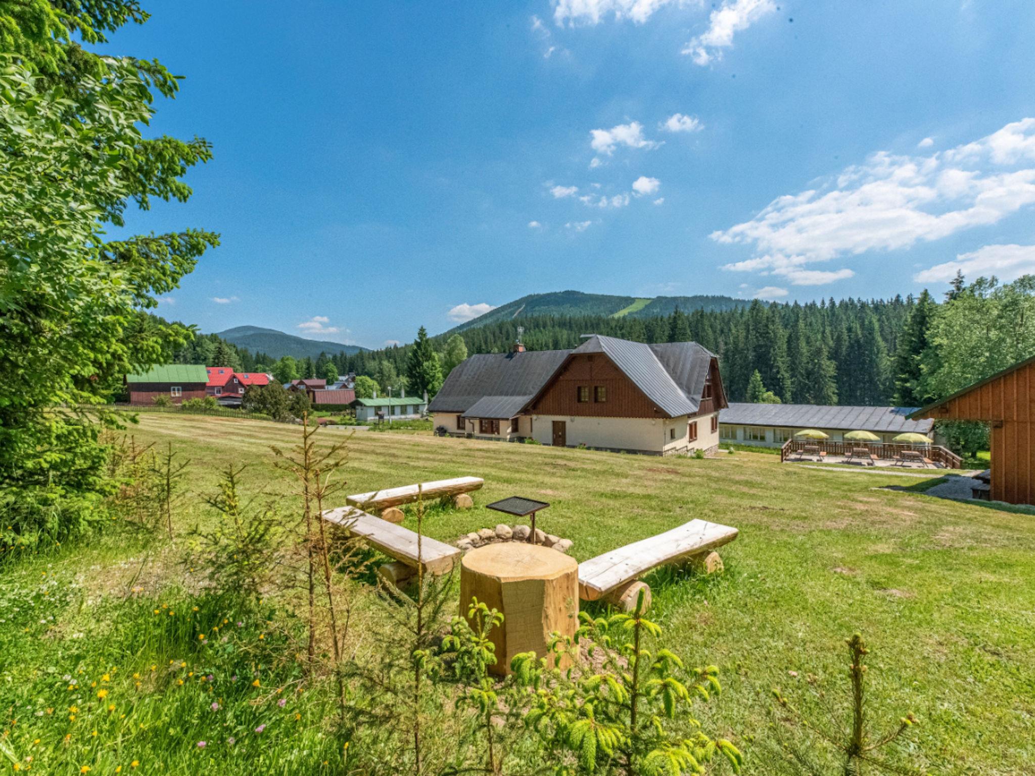 Very beautiful chalet "Anenské údolí", 2 storeys, detached. In a quiet, sunny position, 100 m from the edge of the forest, 800 m from the skiing area, 150 m from the stream, in a cul-de-sac. Private: large garden (not fenced) with lawn. Table tennis, patio, terrace, garden furniture, barbecue, fireplace, children's playground (slide, swing, sandbox). In the complex: WiFi, trampoline, storage room for bicycles, storage room for skis, central heating system. Parking at the house. Supermarket 1 km, restaurant 700 m, café, bicycle rental 1 km, bus stop "Harrachov centrum" 1 km, railway station "Harrachov" 3 km, outdoor swimming pool 1.6 km, indoor swimming pool 1.7 km. Golf course (9 hole) 3 km, tennis 2 km, indoor tennis centre 2 km, minigolf 1.5 km, walking paths from the house 10 m, cycle lane 1 km, chair lift 800 m, slopes, ski rental 800 m, ski school, children's ski school, cross country ski track 600 m, children's playground 600 m. Nearby attractions: bobová dráha 500 m, Muzeum skla, Hornické muzeum, Šindelka 2 km, Mumlava vodopád 3 km, Skokanské mustky 1 km, Jilemnice, Jablonec nad Nisou 25 km, Liberec - zoo, aquapark, Ješted 40 km. Well-known ski regions can easily be reached: Harrachov 800 m, Príchovice 9 km, Paseky na Jizerou, Rokytnice nad Jizerou 15 km. Well-known lakes can easily be reached: Vodní nádrž Souš 12 km. Hiking paths: Anenské údolí, Harrachova cesta, Krakonošova cesta, Certova hora, Bežecký lyžarský areál Jakuszyce 5 km. Please note: baby equipment on request. The property consists of 5 apartments. Each apartment has a living room.