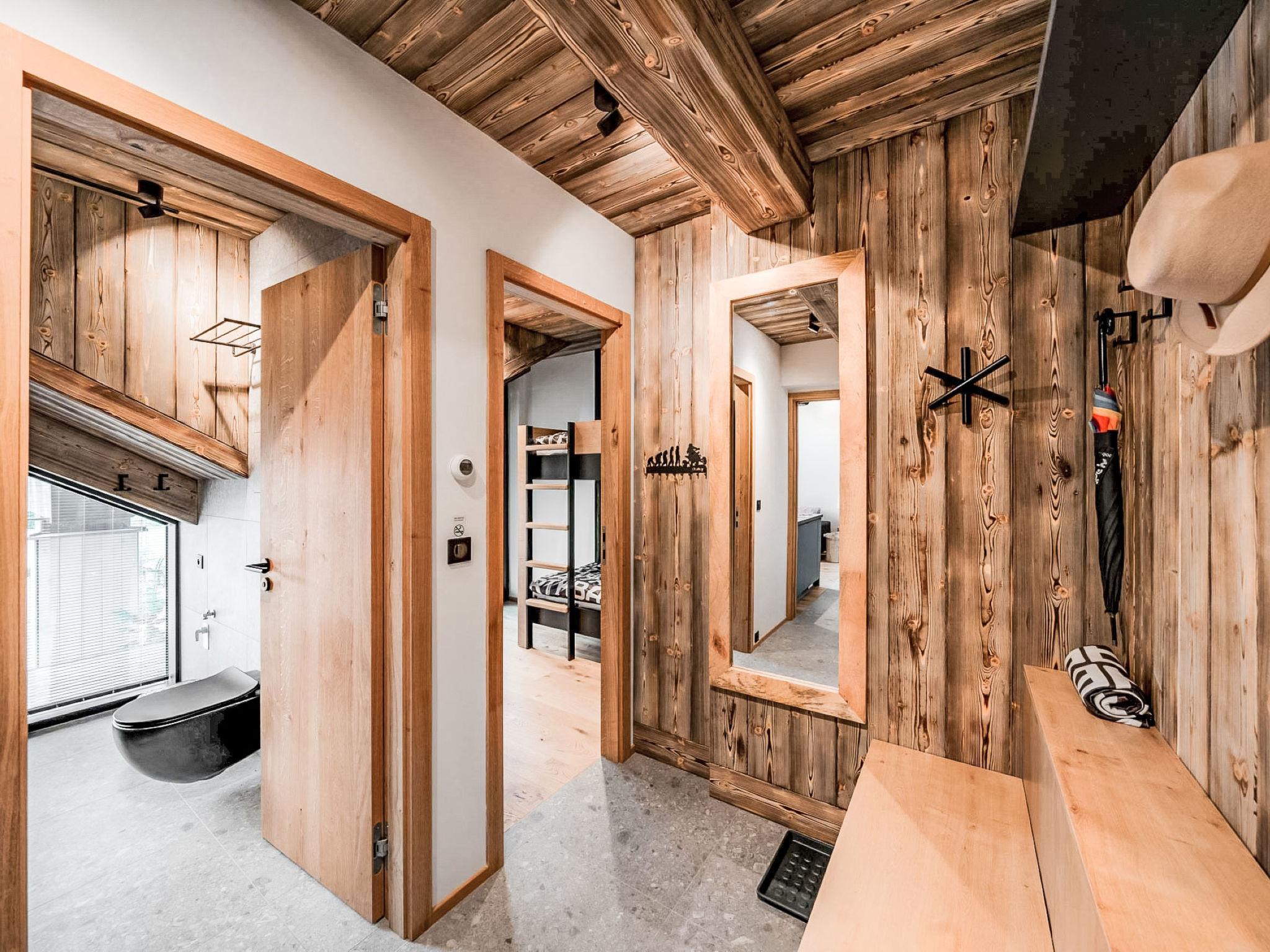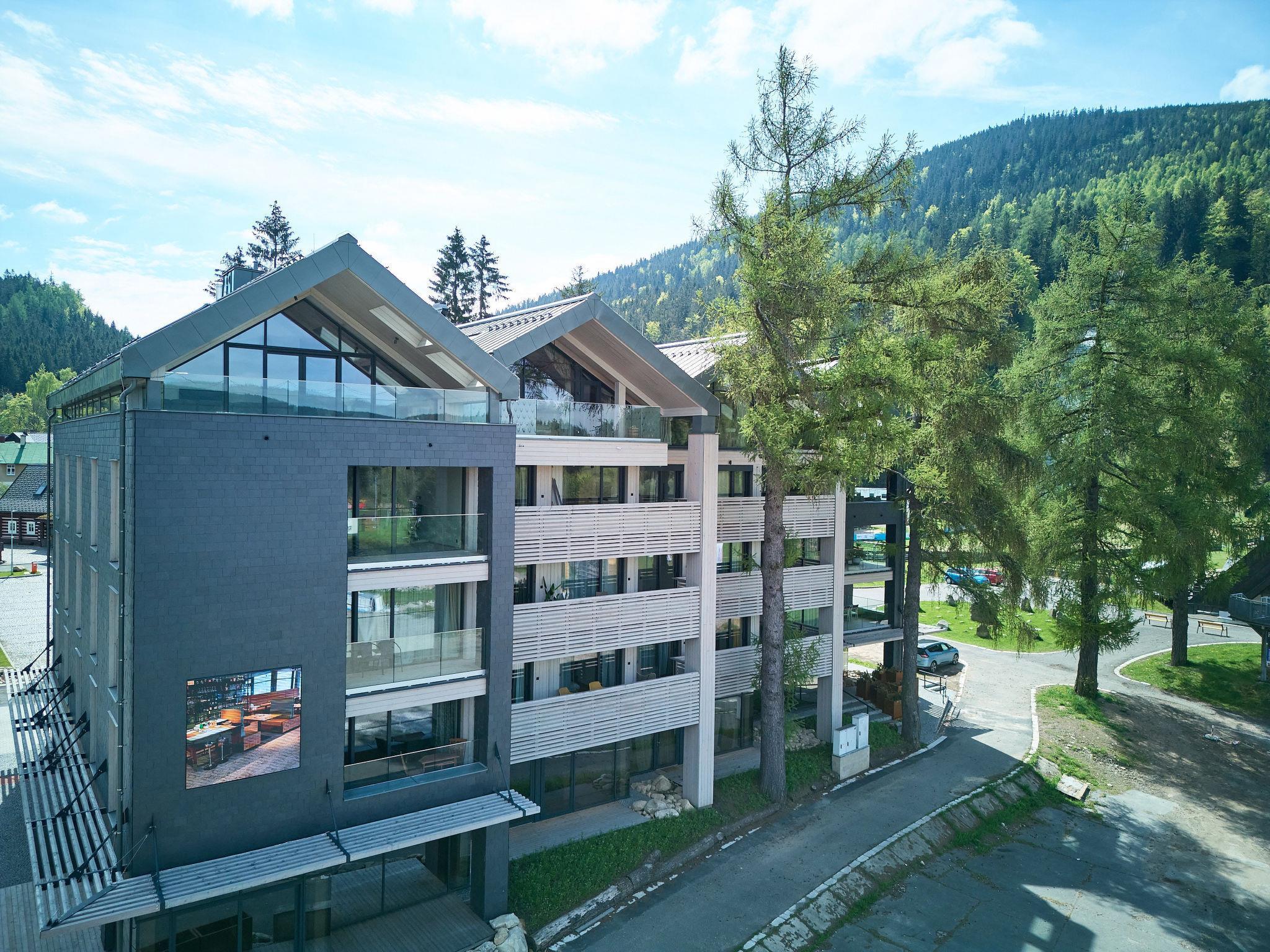 "Corso", 3-room apartment on 4th floor. Very comfortable and beautiful furnishings: large living/dining room with panoramic window with 1 sofabed, open-hearth fireplace, TV and electric heating. Exit to the terrace. 1 room with 1 x 1 bunk beds. 1 room with 1 double bed. Exit to the terrace. Open kitchen (oven, dishwasher, 4 ceramic glass hob hotplates, toaster, kettle, microwave, freezer, electric coffee machine) with dining table. Shower/WC. Terrace furniture, box-room. Very beautiful view of the mountains, the ski run and the forest. Facilities: sauna, hair dryer. Internet (WiFi, free). Garage. E-charging station. Please note: non-smokers only.