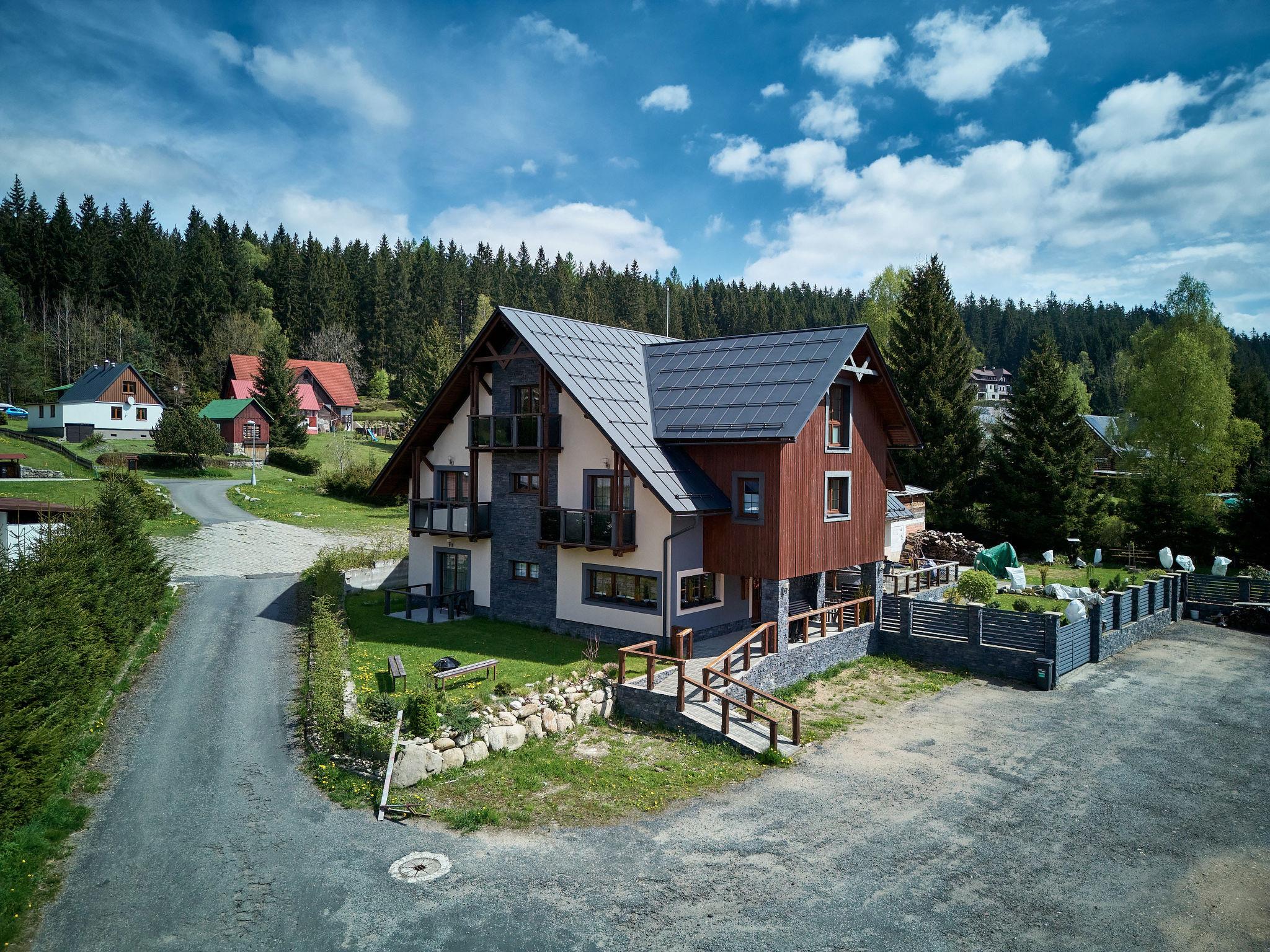 Very beautiful, cosy apartment house "Anenské údolí", 3 storeys, built in 2023. 6 apartments in the property. In a quiet, sunny position, 100 m from the edge of the forest, 800 m from the skiing area, 150 m from the stream, in a cul-de-sac. Private: terrace, garden furniture, barbecue, fireplace. In the house: lounge, WiFi, central heating system. Parking (for 6 cars) at the house. Supermarket 1 km, restaurant, café 700 m, bicycle rental 1 km, bus stop "Harrachov centrum" 1 km, railway station "Harrachov" 3 km, outdoor swimming pool 1.6 km, indoor swimming pool 1.7 km. Golf course (9 hole) 3 km, tennis 2 km, indoor tennis centre 2 km, minigolf 1.5 km, walking paths from the house 10 m, cycle lane 1 km, chair lift, slopes, ski rental, ski school, children's ski school 800 m, cross country ski track, children's playground 600 m. Nearby attractions: bobová dráha 500 m, Muzeum skla, Hornické muzeum, Šindelka 2 km, Mumlava vodopád 3 km, Skokanské mustky 1 km, Jilemnice, Jablonec nad Nisou 25 km, Liberec - zoo, aquapark, Ješted 40 km. Well-known ski regions can easily be reached: Harrachov 800 m, Príchovice 9 km, Paseky na Jizerou, Rokytnice nad Jizerou 15 km. Well-known lakes can easily be reached: Vodní nádrž Souš 12 km. Hiking paths: Anenské údolí, Harrachova cesta, Krakonošova cesta, Certova hora, Bežecký lyžarský areál Jakuszyce 5 km. The property consists of 6 apartments.