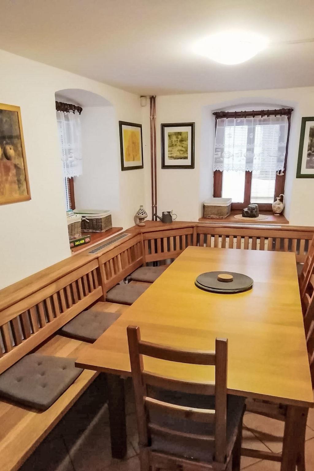 Cosy country house "Lipno Garden and Relax", 2 storeys, detached. In a secluded, quiet position. Private: table tennis, terrace, garden furniture, fireplace (slide, swing, sandbox). In the house: storage room for bicycles. Parking (for 4 cars) at the house. Supermarket 1 km, bus stop "Horice na Šumave" 600 m, railway station "Horice na Šumave" 300 m. Nearby attractions: Ceský Krumlov 14 km. Well-known ski regions can easily be reached: Ski areál Lipno 14 km, Ski areál Kozí Plán 18 km. Well-known lakes can easily be reached: Olšina 7 km, Lipno 8 km. Hiking paths: Krížová cesta Horice na Šumave 2 km.