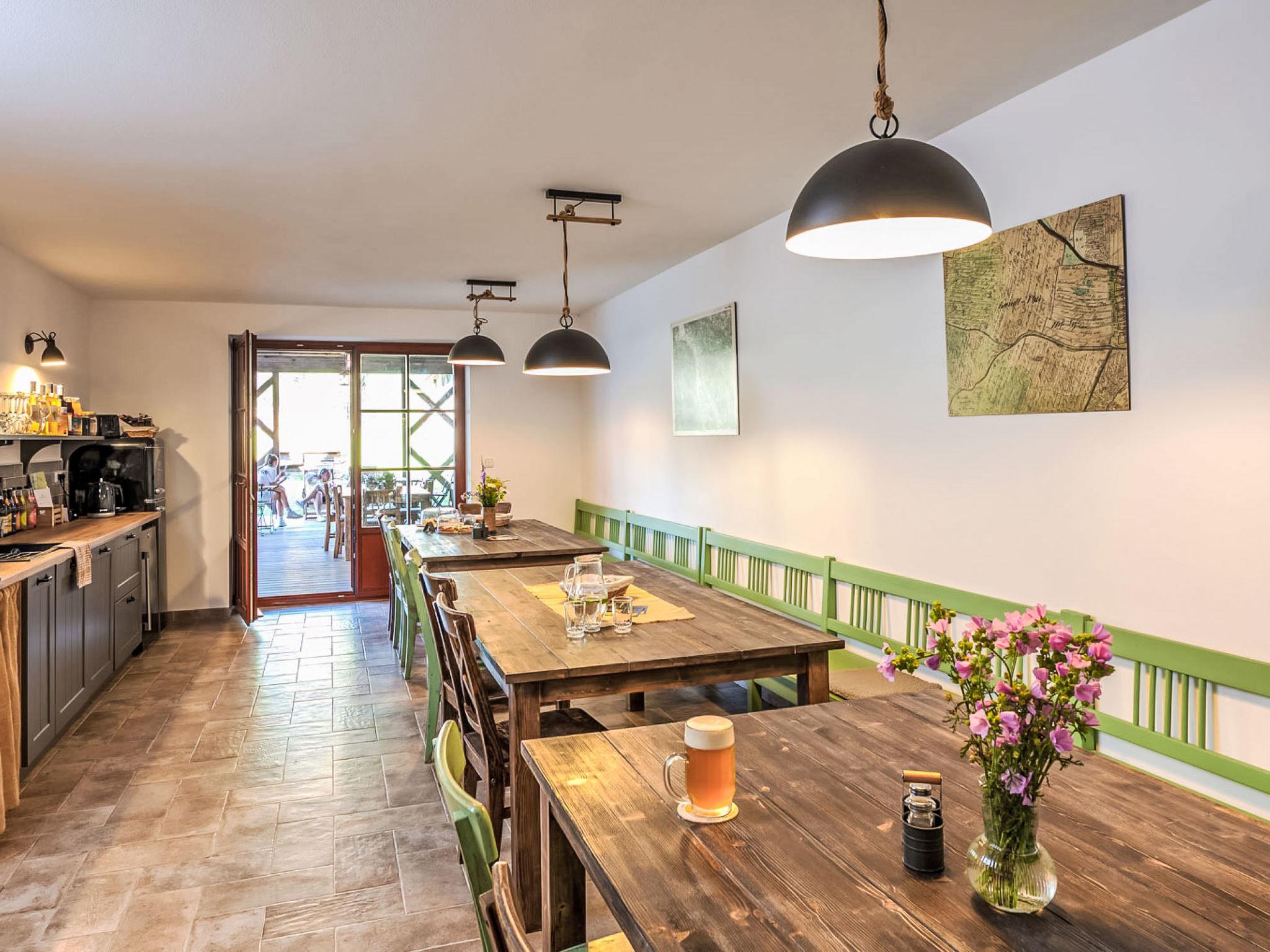 Pernek 4 km from Horní Planá: Very beautiful residence, 3 storeys, detached, renovated in 2024. 8 apartments in the property. 500 m from the edge of the forest, 1.8 km from the lake, 500 m from the stream, in the countryside. For shared use: property, natural pond. Terrace, fireplace. In the complex: lounge, sauna (extra). Storage room for bicycles, storage room for skis, central heating system. Parking on the premises. Supermarket 4 km, restaurant 4 km, bicycle rental 4 km, bus stop "Horní Planá, Pernek" 150 m, indoor swimming pool 22 km, bathing lake "Lipno" 1.8 km. Marina 29 km, minigolf 27 km, walking paths from the house 10 m, cycle lane 100 m, cross country ski track 5 km. Nearby attractions: Mini zoo 1 km, Plešné jezero 14 km, Frymburk aquapark 22 km, Lipno bikepark, aquaworld, bobová dráha, lanový park, Stezka korunami stromu, Království lesa 29 km, Ceský Krumlov (UNESCO) 32 km, Klášter Zlatá koruna, Rožmberk 39 km. Well-known ski regions can easily be reached: Frymburk 23 km, Lipno nad Vltavou 29 km, Hochficht 33 km, Sternstein 53 km, Mitterdorf 41 km. Well-known lakes can easily be reached: vodní nádrž Lipno 1.8 km. Hiking paths: Národní park Šumava, CHKO Šumava. Please note: suitable for families. Suitable for events. The sauna is combined (infrared and finnish), capacity: 4 guests.