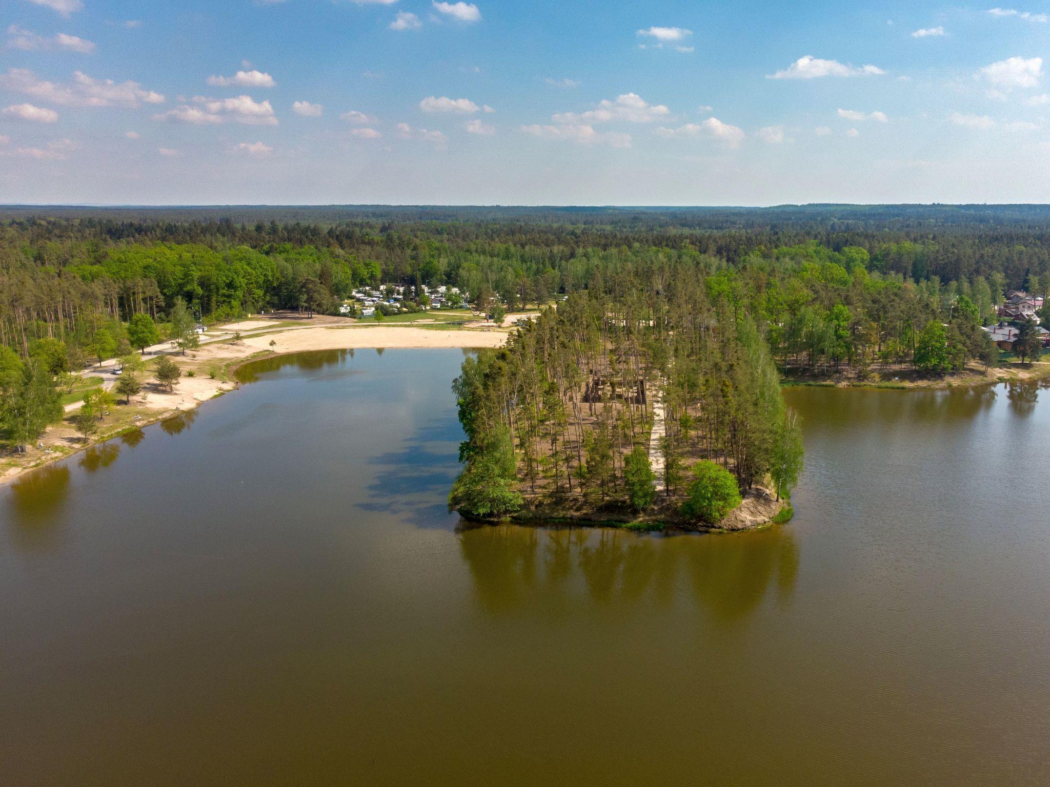 Child friendly holiday village "Kemp Stríbrný rybník". 25 houses in the resort. In the district of Malšova Lhota, 5 km from the centre of Hradec Králové, along the wooded area, on the lake. For shared use: property. Table tennis, boccia (extra), beach volleyball, arbour, barbecue, fireplace, children's playground, bathing jetty. In the complex: reception, restaurant, bar, bistro, playroom, washing machine (for shared use, extra), bicycle rental. Parking (extra) on the premises. Bus stop "Stríbrný rybník" 700 m, railway station "Blešno" 5 km, sandy beach, bathing lake 50 m. Sports harbour, minigolf, sports centre, walking paths from the house, cycle lane, fishing possibilities 50 m. Nearby attractions: Adventure park Firmsport, letní kino, tutistický vlácek do lesa, Stezka siluet, Rytírské hradište 3 km, Park Na Vetvi 3 km, Obory se zverí 4.2 km, Obrí akvárium, Botanická zahrada 4.7 km. Hiking paths: Pohádková, Vodnická stezka 6 km, Planetárium, planetární stezka 8.4 km, Zoopark Stežery, Rozhledna Milír 15 km. Please note: entertainment in the season. Suitable for families. Fishing [permit required]. The photograph shows a typical example.