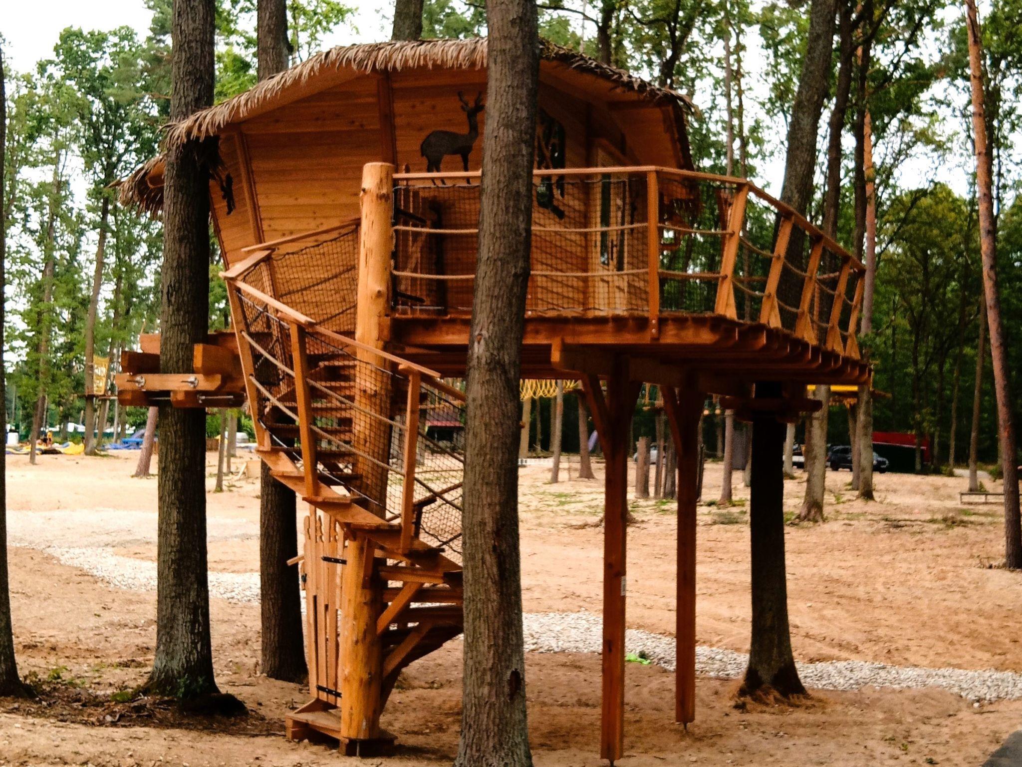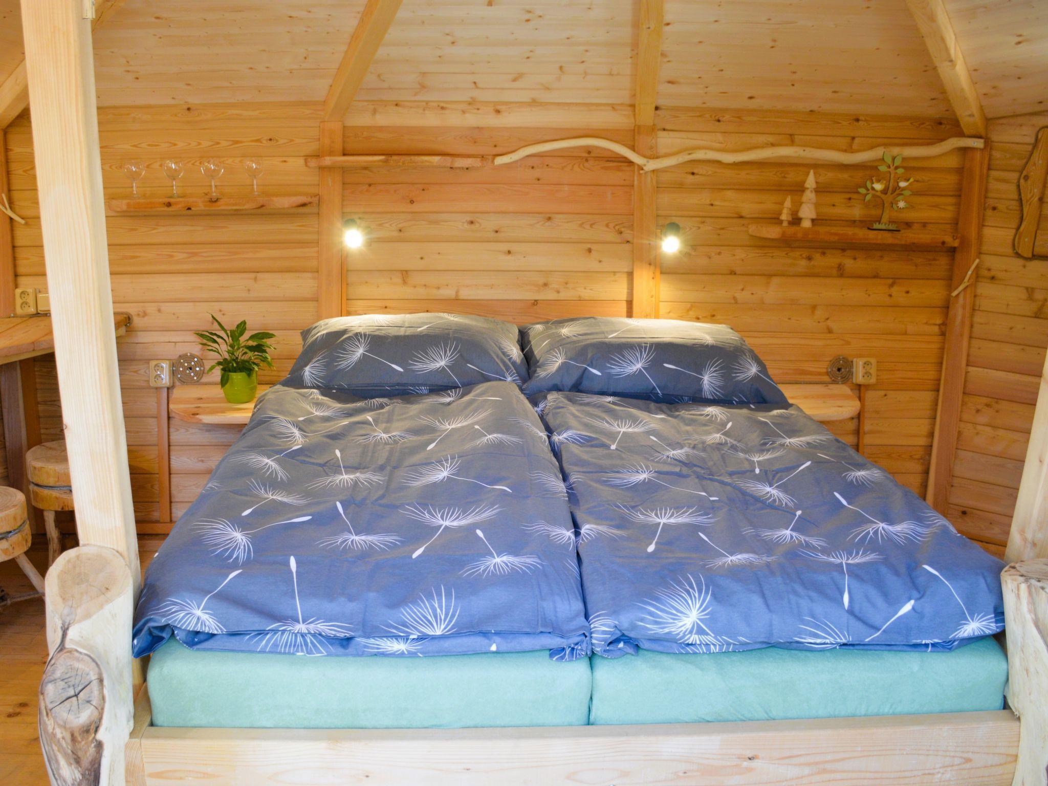 "Treehouse 1", 1-room cottage. Cosy furnishings: living/sleeping room with 1 x 2 bunk beds, 1 double bed. Small kitchenette). Very beautiful view of the forest. Facilities: Internet (WiFi, free). Please note: fridge without freezer, non-smoking house. There is NO WATER IN THE HOUSE - a tap with drinking water is located nearby. Toilet nearby. Shower for a fee.