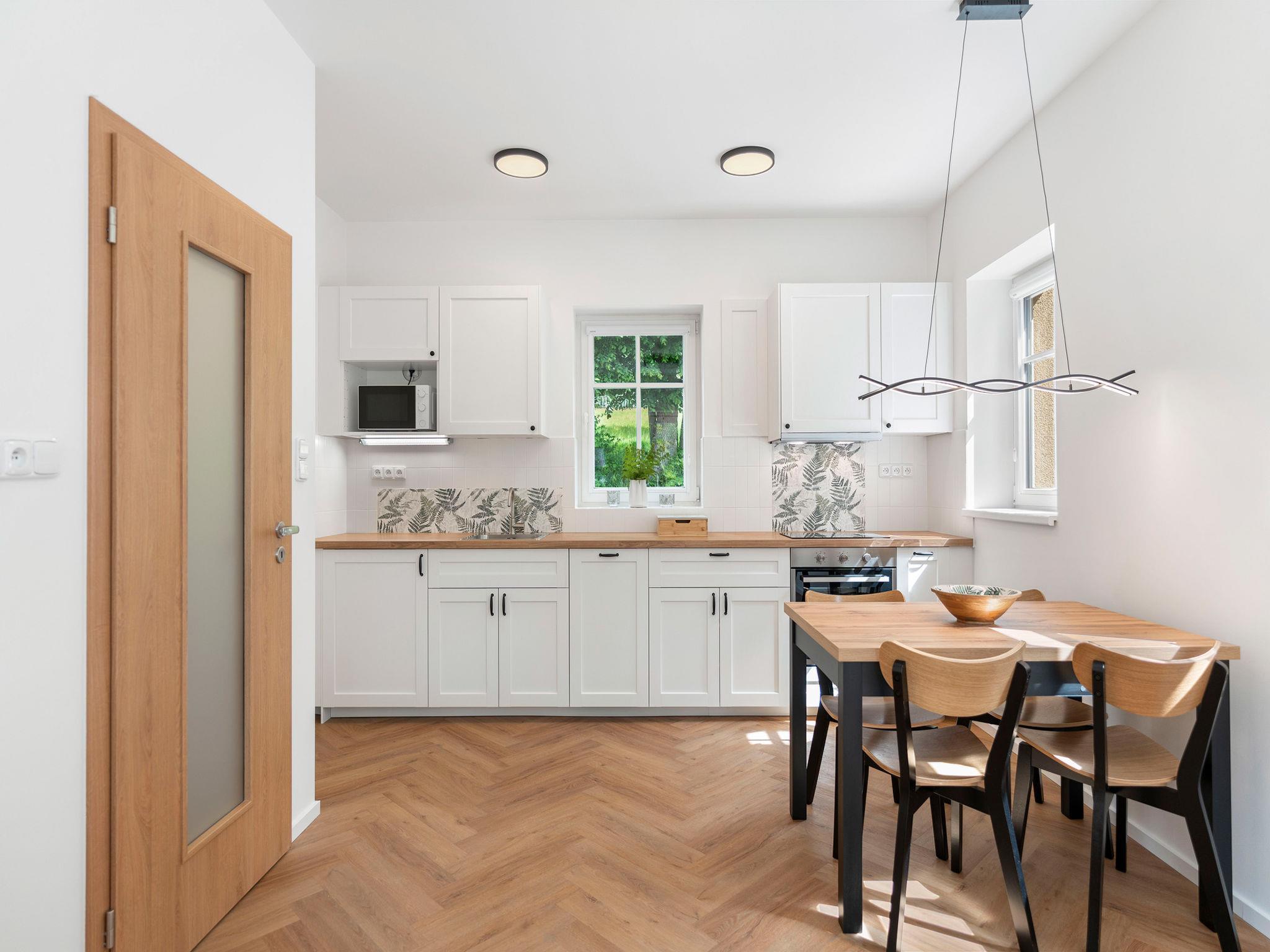 Mezná: Child friendly, modern, cosy residence "V kapradí", 3 storeys, built in 2025, surrounded by trees. 4 apartments in the property. In a quiet, sunny, elevated position, 600 m from the river, in the countryside. For shared use: property 1'000 m2. Patio, garden furniture, barbecue, children's playground (slide, sandbox). In the house: WiFi, central heating system, burglar alarm system. Storeroom available. Parking (for 6 cars) at the house, public parking 200 m on the road. Shop 2 km, grocery 2 km, supermarket 5 km, restaurant 400 m, bicycle rental 5 km, bus stop "Hrensko, Mezná" 500 m, thermal baths "Bad Schandau" 18 km. Golf course (9 hole) 6 km, cross country ski track 6 km. Nearby attractions: Soutesky Hrensko 1,8 km, Pravcická Brána 2 km, Skalní hrad Šaunštejn 5 km, Dolský Mlýn 7 km, Jetrichovické vyhlídky 10 km, Skalní hrad Falkenštejn 10 km, Bad Schandau (D) 16 km, Adrenalin park Jedlová 27 km.