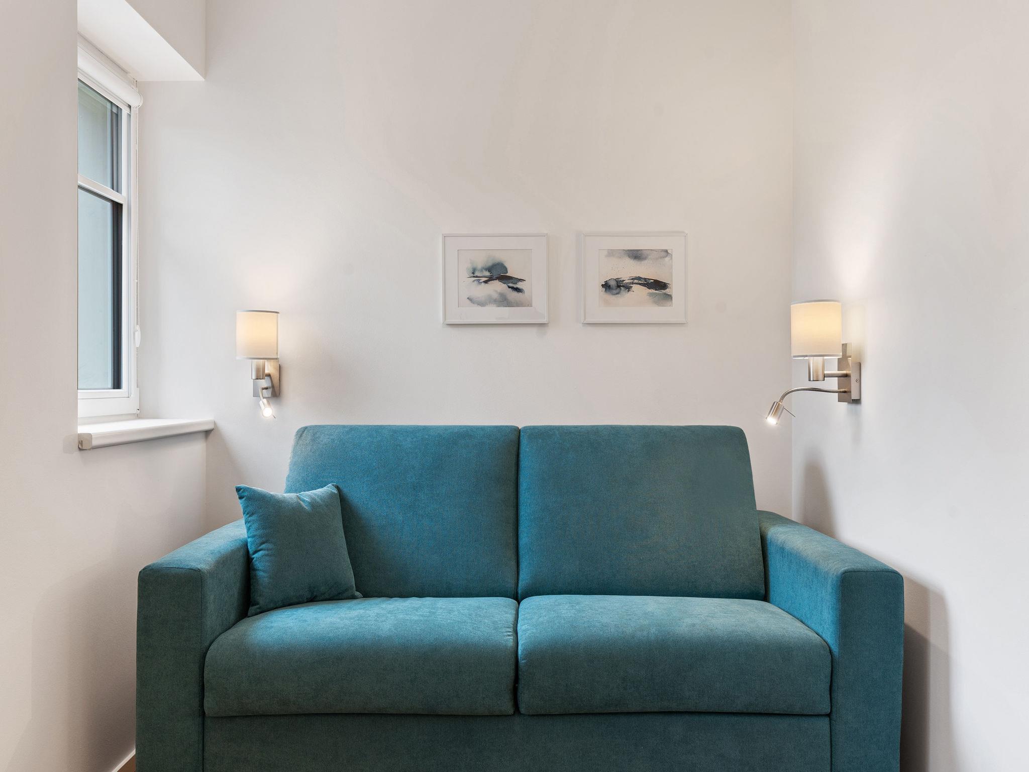 3-room Loft on 2 levels on 1st floor. Very beautiful furnishings: living/sleeping room with 1 double sofabed (140 cm), TV. 1 room with 1 double bed (160 cm). Kitchenette (oven, dishwasher, 4 ceramic glass hob hotplates, kettle, microwave, electric coffee machine) with dining nook. Shower/WC, sep. WC. Upper floor: gallery with 2 beds and 1 double bed. Beautiful view of the garden and the forest. Facilities: hair dryer. Internet (WiFi, free). Parking. Suitable for families. Maximum 2 pets/ dogs allowed. Instead of an enclosed bedroom, some sleeping areas are located in an open-plan area (gallery, alcove, etc.).