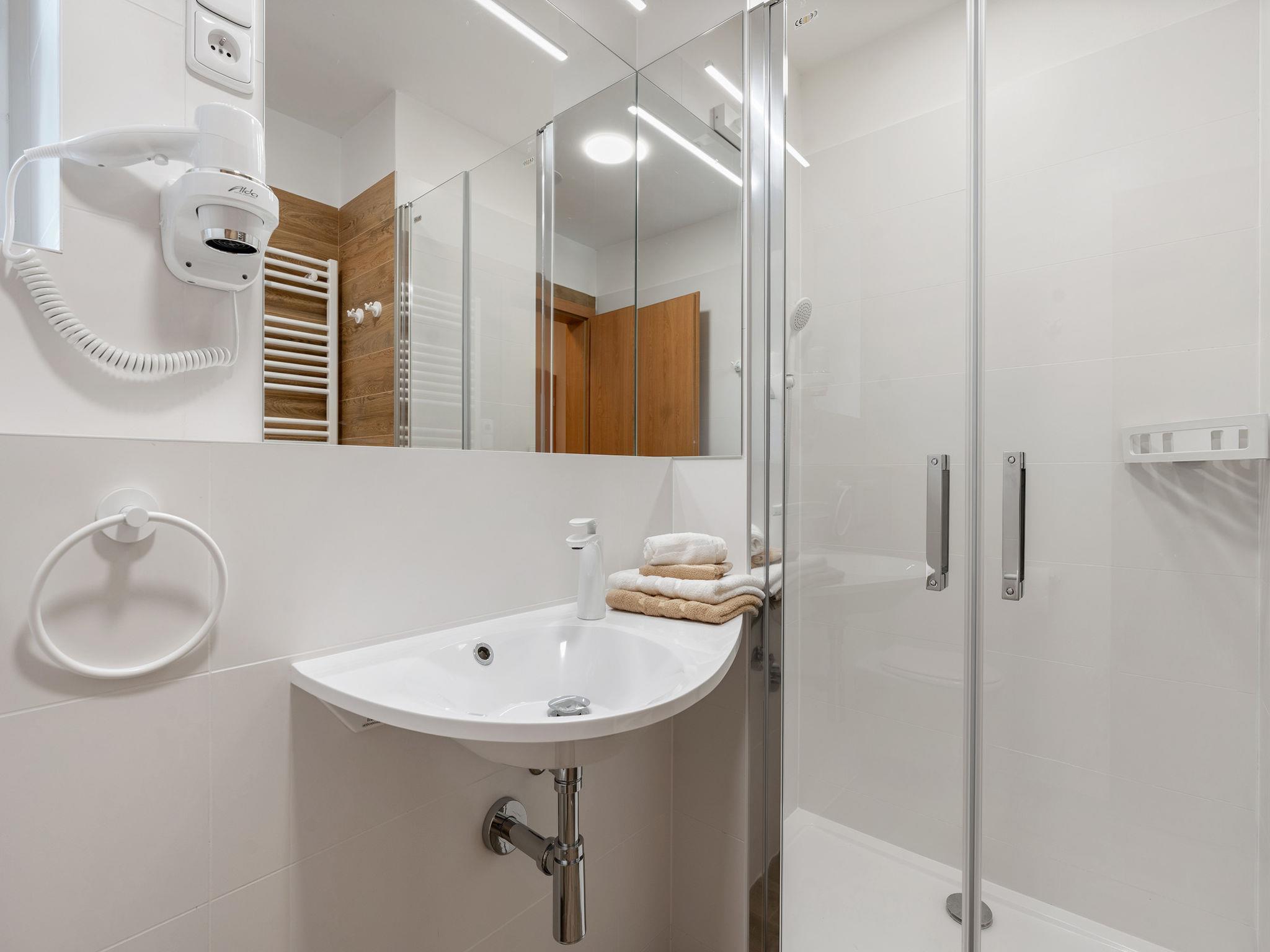 Mezná: Child friendly, modern, cosy residence "V kapradí", 3 storeys, built in 2025, surrounded by trees. 4 apartments in the property. In a quiet, sunny, elevated position, 600 m from the river, in the countryside. For shared use: property 1'000 m2. Patio, garden furniture, barbecue, children's playground (slide, sandbox). In the house: WiFi, central heating system, burglar alarm system. Storeroom available. Parking (for 6 cars) at the house, public parking 200 m on the road. Shop 2 km, grocery 2 km, supermarket 5 km, restaurant 400 m, bicycle rental 5 km, bus stop "Hrensko, Mezná" 500 m, thermal baths "Bad Schandau" 18 km. Golf course (9 hole) 6 km, cross country ski track 6 km. Nearby attractions: Soutesky Hrensko 1,8 km, Pravcická Brána 2 km, Skalní hrad Šaunštejn 5 km, Dolský Mlýn 7 km, Jetrichovické vyhlídky 10 km, Skalní hrad Falkenštejn 10 km, Bad Schandau (D) 16 km, Adrenalin park Jedlová 27 km.