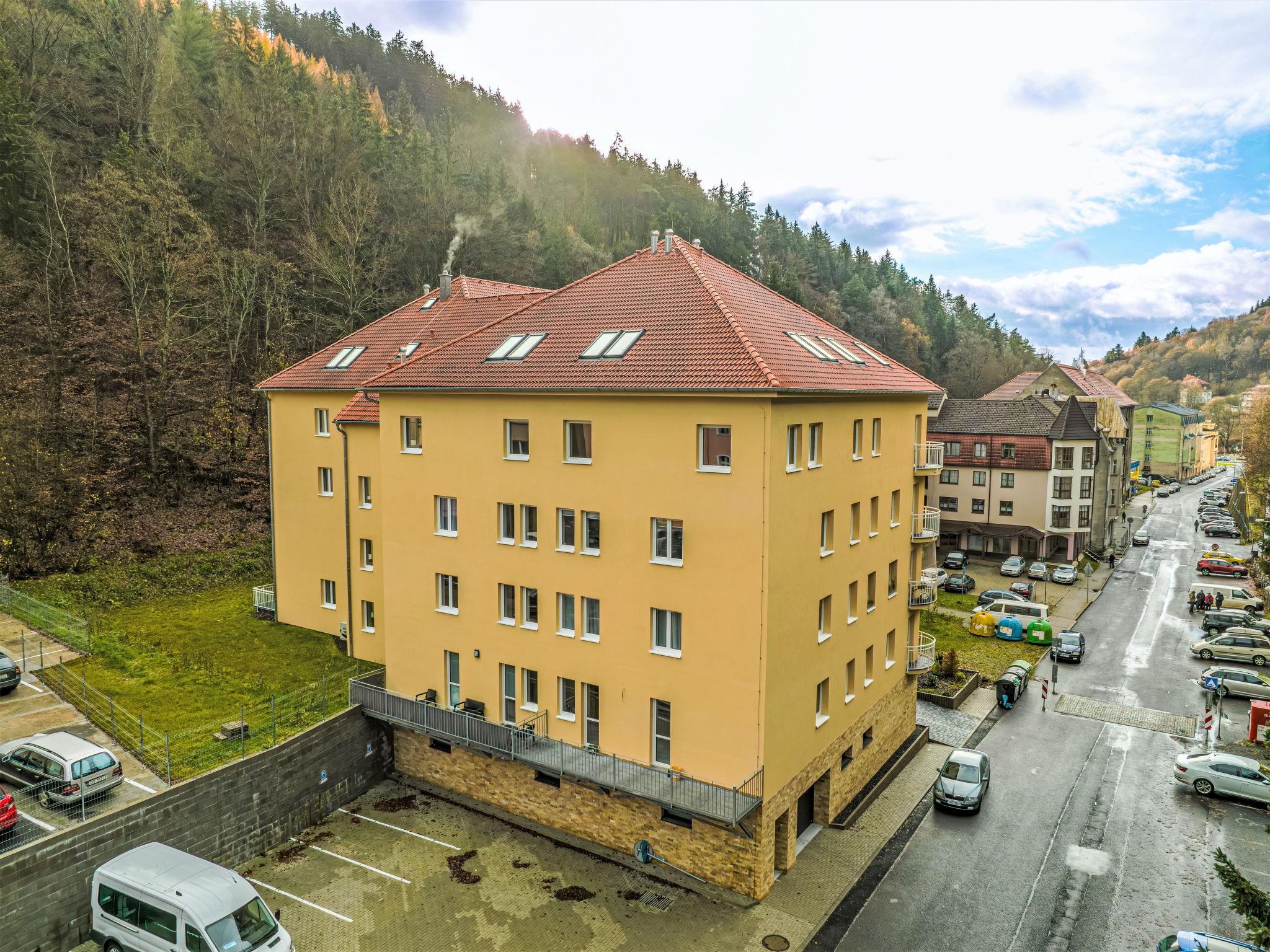 Modern apartment block, 4 storeys, built in 2023. In the centre of Jáchymov, 2.5 km from the skiing area. In the house: lift, central heating system. Breakfast on request (extra). Storeroom available. Parking at the house. Grocery 100 m, supermarket 150 m, shopping centre 6 km, restaurant 100 m, pub garden, bus stop "Jáchymov" 150 m, outdoor swimming pool 15 km, indoor swimming pool 150 m. Walking paths from the house 10 m, cycle lane, chair lift 2.5 km, slopes 2.5 km, ski rental 2.5 km, ski bus stop 30 m, ski school 2.5 km, cross country ski track 5 km, ice rink 6 km, children's playground 500 m. Nearby attractions: Aqua Centre Agricola 500 m, Spa&Wellness Centre 500 m, Boží Dar 8 km, Karlovy Vary 20 km, Oberwiesetnhal 13 km, Annaberg-Buchholz 33 m. Well-known ski regions can easily be reached: Klínovec 2.5 km, Plešivec 13 km, Fichtelberg 11 km. Hiking paths: Krušnohorská magistrála, Ježíškova cesta. Please note: baby equipment on request (extra). Smoking is prohibited in all areas of the building and, with the exception of the ground floor, the use of ski boots is also prohibited.