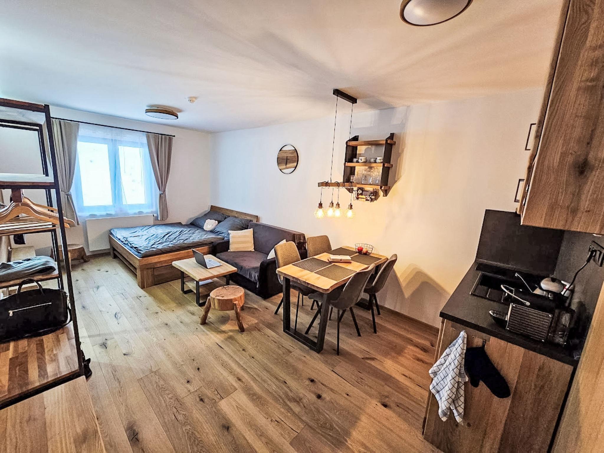 "Ski&Bike Siréna", 1-room studio. Spacious: living/sleeping room with 1 sofabed, 1 double bed and TV. Kitchenette (oven, dishwasher, 4 ceramic glass hob hotplates, toaster, kettle, microwave, freezer, electric coffee machine) with dining table. Shower/WC. View of the countryside. Facilities: Internet (WiFi, free). Parking at the house. Please note: suitable for families. Non-smokers only.