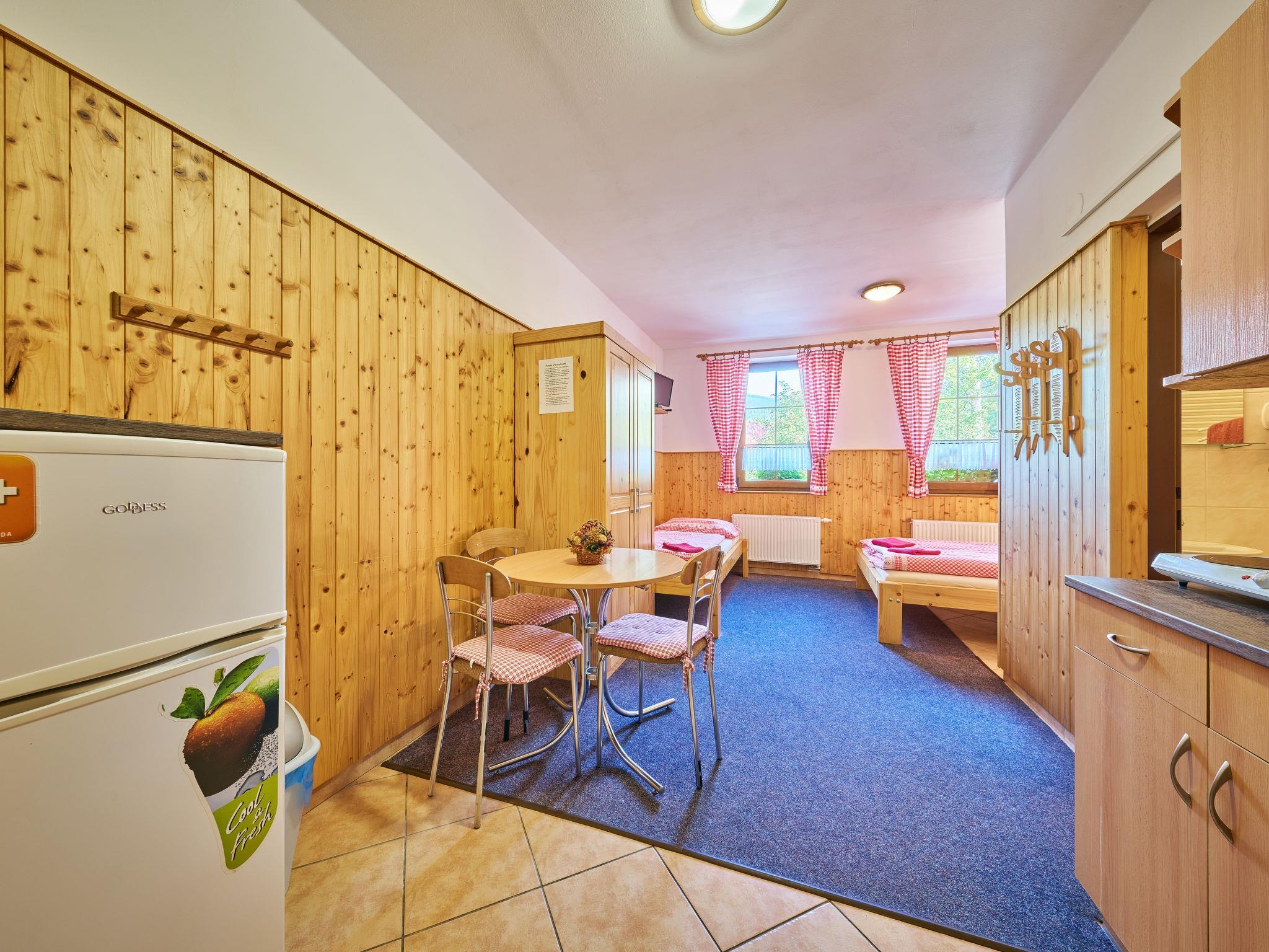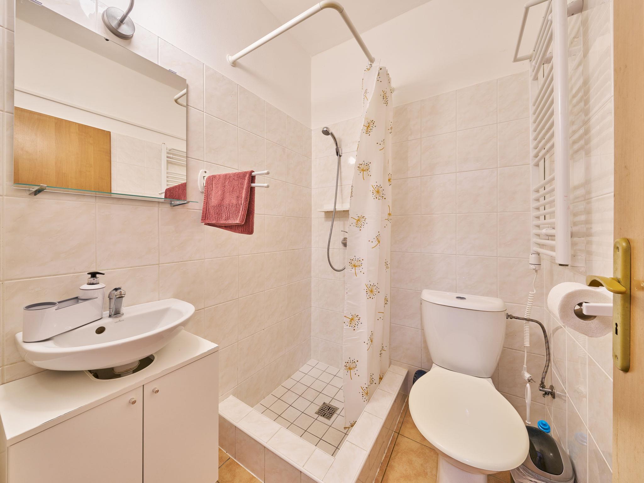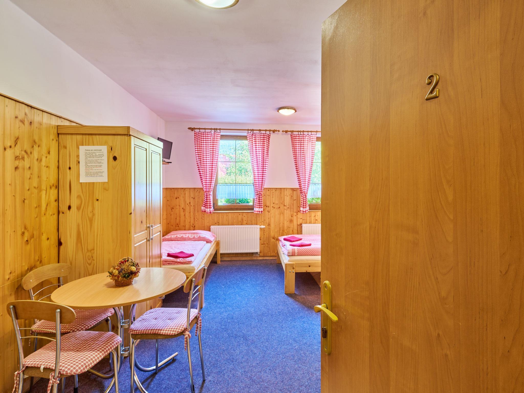 "U Švýcarského dvora II", 1-room apartment 27 m2, on the ground floor. Practical and cosy furnishings: 1 room with 1 bed, 1 double bed, dining table and satellite TV. Kitchenette (2 hot plates, kettle, microwave). Shower/WC. Heating. View of the garden. Facilities: Internet (WiFi, free). Please note: non-smokers only. Smoke alarm, fire extinguisher.