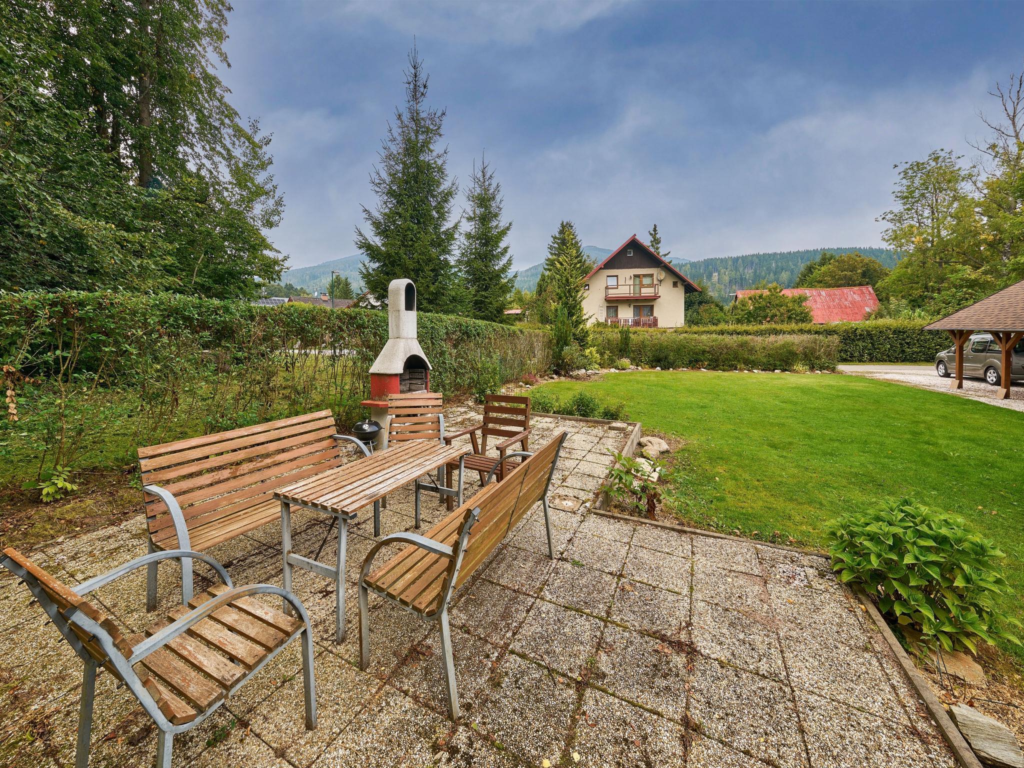 Cosy, comfortable cottage "U Švýcarského dvora", detached, built in 2006. 4 apartments in the property. In the resort 800 m from the centre of Janské Lázne, in a quiet position, 200 m from the skiing area. For shared use: well-kept garden with lawn. Patio, pergola, garden furniture, barbecue, children's playground (swing). In the house: WiFi, central heating system. Parking (for 4 cars) at the house. Grocery 1.2 km, supermarket 2 km, restaurant 1 km, café 1 km, bus stop "Janské Lázne, Lesní dum" 700 m, railway station "Svoboda nad Úpou" 2.8 km, outdoor swimming pool 1 km, indoor swimming pool 1 km, thermal baths "Janské Lázne" 1 km. Golf course (18 hole) 8 km, tennis 800 m, minigolf 2.5 km, riding stable 2 km, walking paths from the house 20 m, cycle lane 700 m, ski lift 900 m, gondola lift 1.7 km, slopes 200 m, ski rental 600 m, ski bus stop 50 m, ski school, sled run 800 m, cross country ski track 2.5 km, children's playground 200 m. Nearby attractions: Aquacentrum, Janské Lázne Spa 1 km, Stezka korunami stromu Janské Lázne 3 km, RelaxPark Pec, lanovka Snežka 15 km, zámek Vrchlabí, Aquacentrum Vrchlabí 18 km, Špindleruv Mlýn, Zoo Safari Dvur Králové 33 km, Adršpašské skály 42 km. Well-known ski regions can easily be reached: Janské Lázne - Koštálka 1.5 km, Cerná hora - Pec 1900 m, Mladé Buky 7 km, Horní Malá Úpa 20 km, Špindleruv Mlýn 34 km. Well-known lakes can easily be reached: Dolce Trutnov 18 km. Hiking paths: krkonošské naucné stezky. Please note: suitable for families. Owner lives in separate semi-detached house.