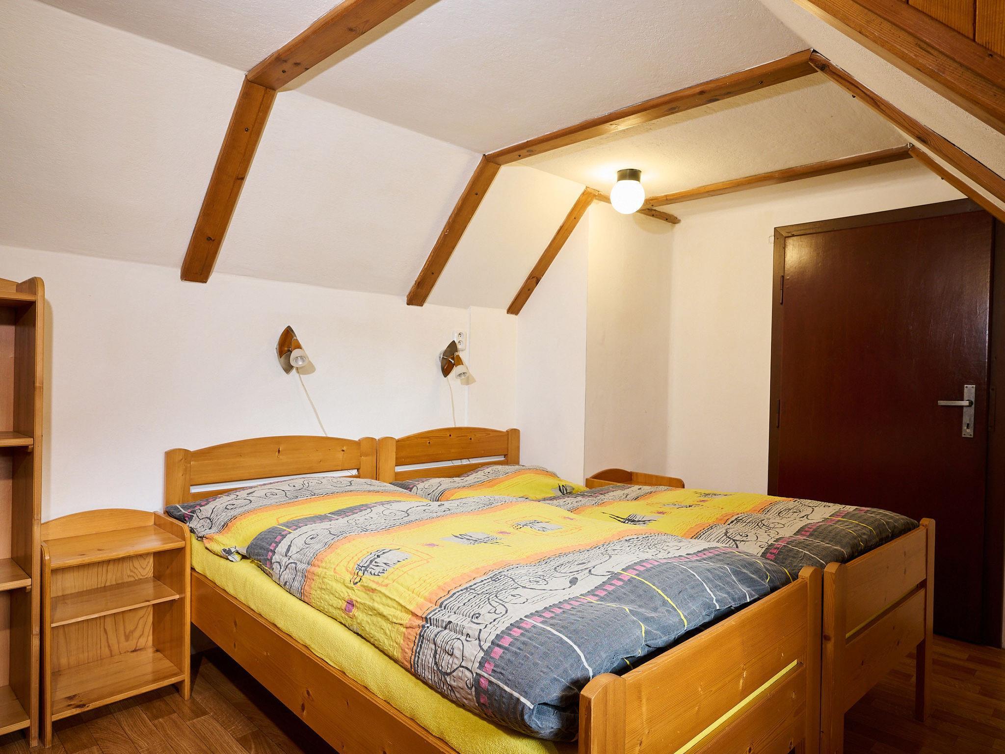 4-room house on 2 levels. Object suitable for 4 adults + 4 children. Large living/dining room with Scandinavian wood stove, dining table and TV. 1 room with 1 double bed. Kitchenette (oven, dishwasher, 4 ceramic glass hob hotplates, kettle, microwave, electric coffee machine). Bathroom, shower/WC, sep. WC, Sauna. Heating. Upper floor: 1 room with 1 double bed. 1 room with sloping ceilings with 4 sleeping facilities. View of the countryside. Facilities: washing machine, sauna. Internet (WiFi, free). Please note: suitable for families. Non-smoking house. 1 pet/ dog allowed.