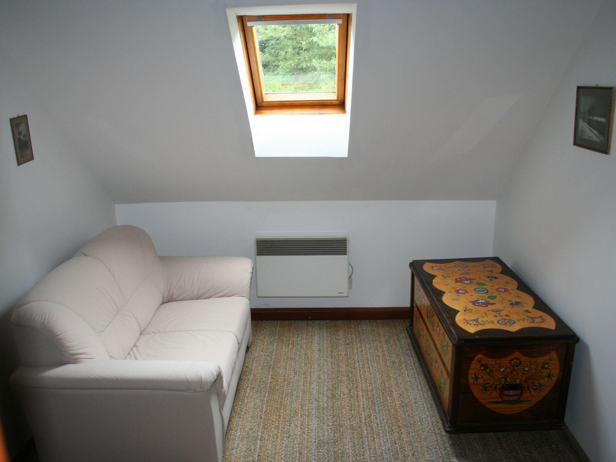 On the ground floor there is a spacious living/dining room with flatscreen TV, sofa and wood-burning stove. The open-plan kitchen is equipped with a gas hob with electric oven, microwave and coffee machine. There are also two separate bedrooms, each for two people, a bathroom with shower and WC and a separate WC. In the attic there are two bedrooms for two and three persons. There is electric heating throughout the house.